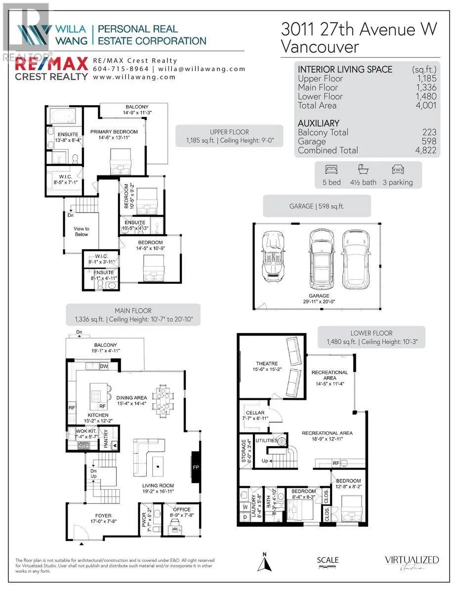 Discover this breathtaking, custom-designed luxury home located in the prestigious MacKenzie Heights neighborhood. Enjoy rare 180-degree views of the city and mountain view from every upstairs bedroom (3 ensuite bdrms). This bright, corner-lot residence features an impressive foyer with soaring ceilings, an open-concept layout, and floor-to-ceiling European-style windows and doors. Inside, you'll find elegant Italian marble, cherry wood flooring, a glass-railed staircase illuminated by a modern crystal chandelier, and a gourmet kitchen equipped with Miele appliances. Beautifully landscaped and ideally situated near UBC, St. George´s, York House, Prince of Wales Secondary, and Lord Kitchener Elementary, this is a rare opportunity-don't miss out! https://www.youtube.com/watch?v=ArzSZ2qlZbc (id:27476)