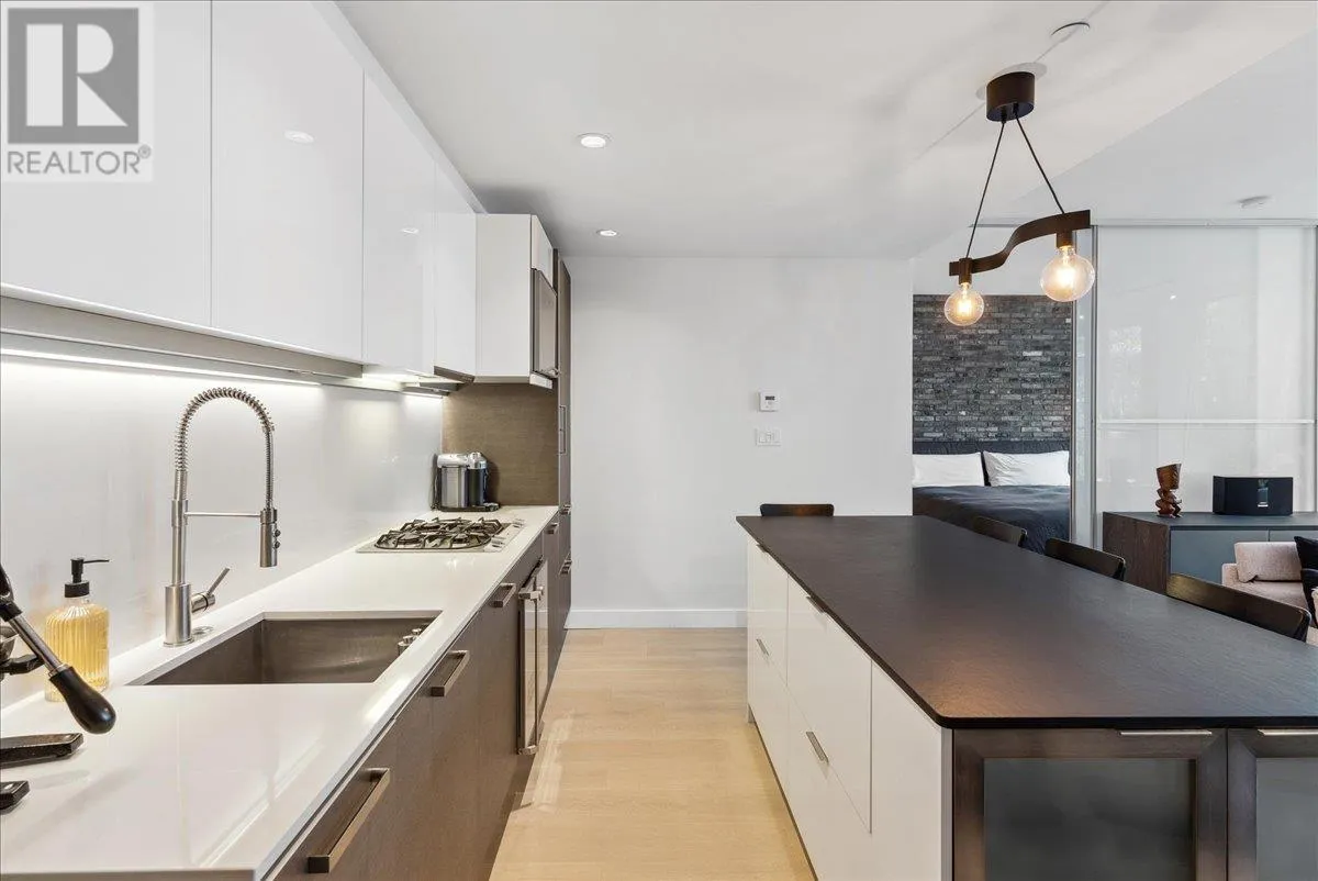 Welcome to luxury living in Coal Harbour. This beautifully updated immaculate 1 bed, 1 bath home includes a flex space separate from the main living, ideal for an office or extra storage. With tens of thousands in upgrades, the 890 sq.ft. unit features custom made exposed brick walls, tailored closet inserts and a new bespoke kitchen island, designed and installed exclusively for this unit. This open-concept design, floor-to-ceiling windows, and over-height ceilings create the perfect space for entertaining. High-end Gaggenau appliances, a Sub-Zero fridge, spa-inspired marble bathroom, and in-suite SS laundry add a touch of elegance. Enjoy top-tier amenities: concierge, A/C, social room, gym, indoor pool, sauna, steam room, guest suite, rooftop BBQ terrace, EV outlet and an XL private locker. Don´t miss out! (id:27476)