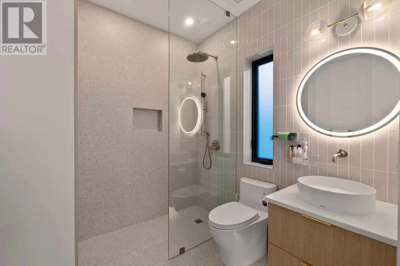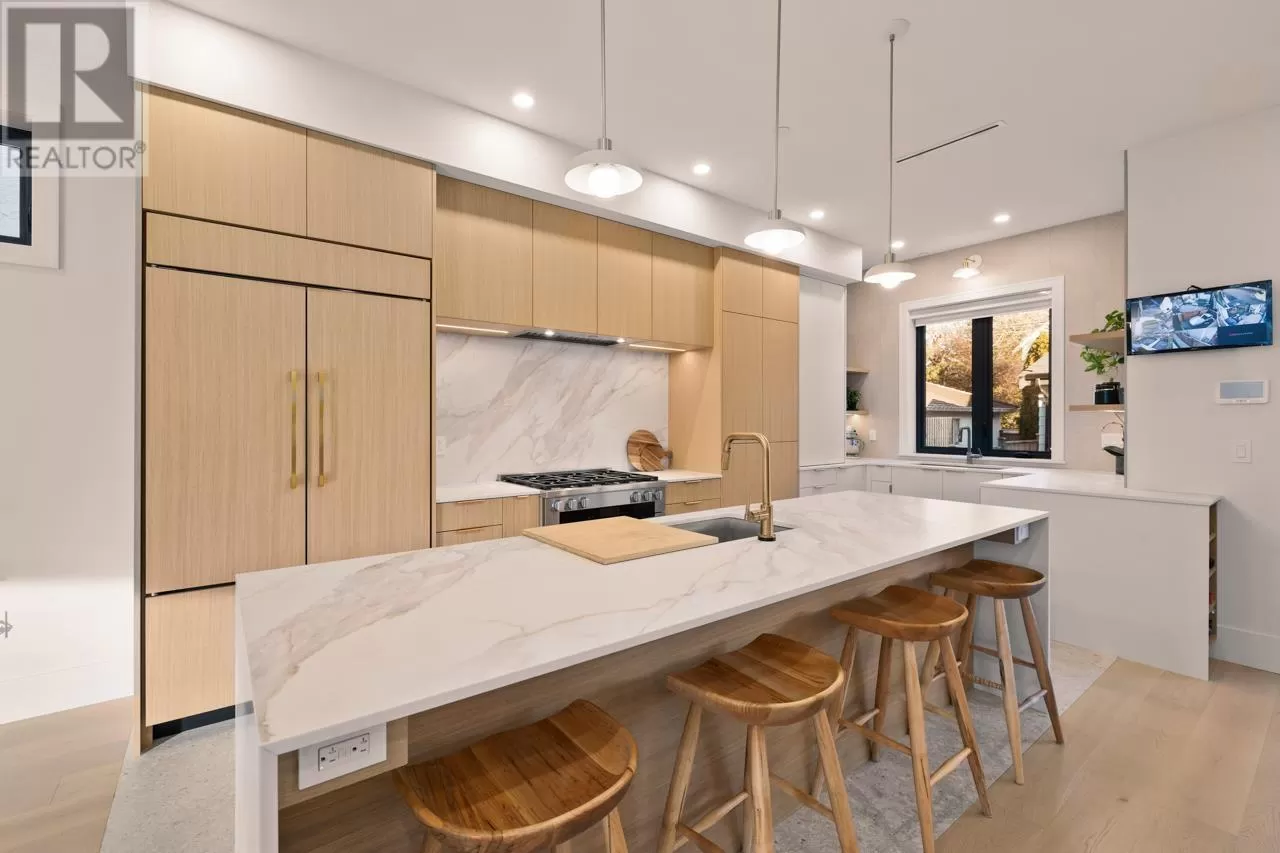 Newly built custom home in Kerrisdale. The main home offers: open floor on main level showcasing a neutral, functional kitchen with Miele appliances sub zero fridge, custom cabinetry & dining with sliding stacked glass doors leading to a large deck. Upstairs, 3 bedrooms each have ensuites, the primary suite has 11' vaulted ceilings. Hardwood floors throughout, HRV/AC. Basement incl: a recroom with wet bar and full bath. In addition separate tenanted 2-bed, 1-bath basement suite. Laneway incl: tenanted 2-bed, 2-bath. Rental income generated from legal suite and laneway is $6,000. Enclosed and gated parking pad. Minutes from Crofton House School, Maple Grove Elementary, McGee Secondary & UBC transit. Steps to shops & Save-On-Foods. 1708 main floor includes the sqft of the laneway unit. (id:27476)