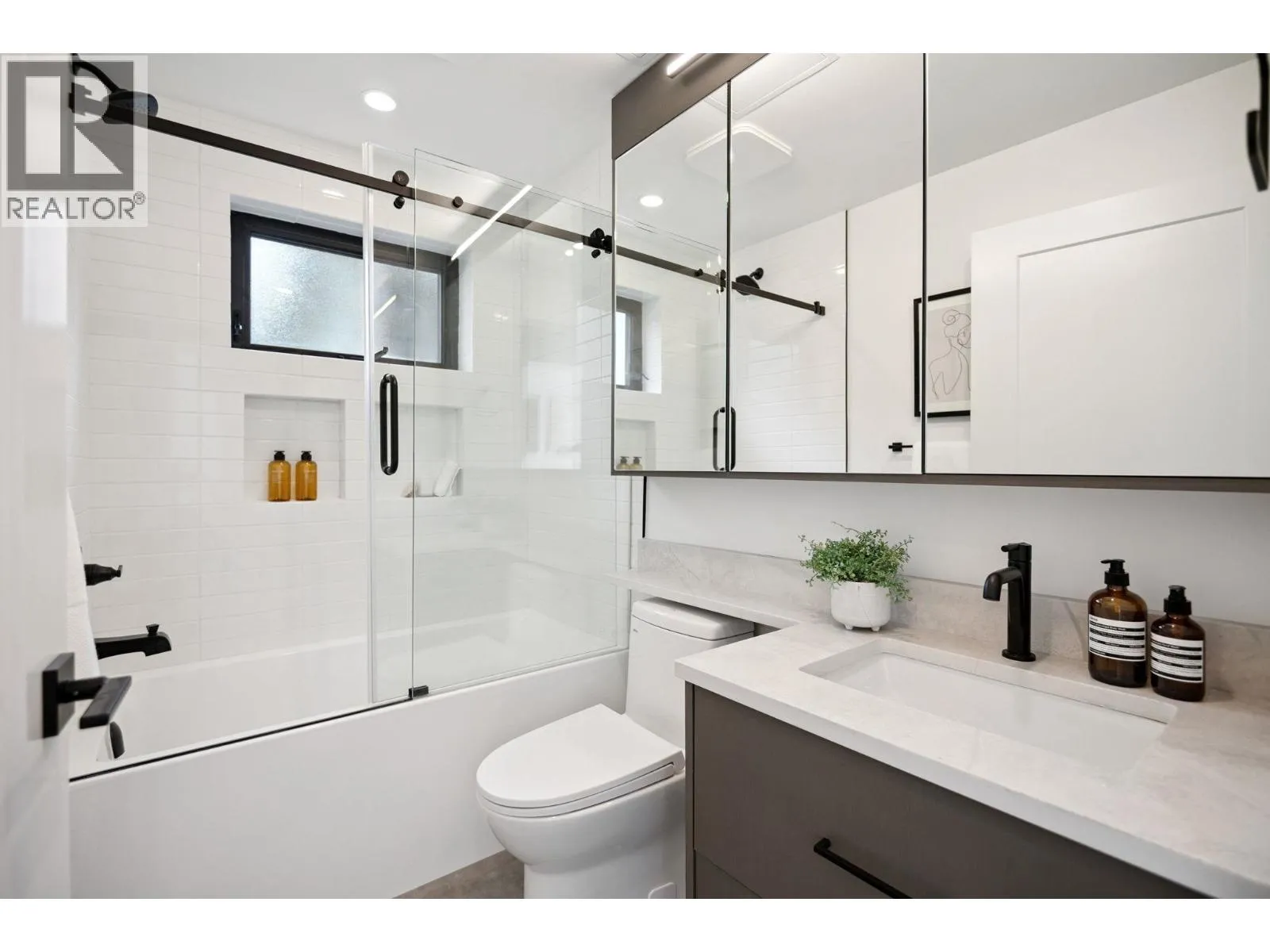 Stunning brand-new back unit duplex in Mount Pleasant! This stylish 3 bedroom, 3.5 bath home offers 1,468 square ft of thoughtfully designed living space across three levels. Step inside to a bright open-concept floor plan featuring hardwood floors, elegant finishes, and a stylish kitchen with gas range, quartz countertops and custom cabinetry, and accordion patio doors for seamless indoor-outdoor living.. Upstairs, two bedrooms with its own ensuites perfect for growing families. The top-floor boast a private retreat with a full ensuite and balcony with mountain views. Located on a quiet tree-lined street, steps to Charles Dickens Annex, Clark Park, Trout Lake, Commercial Drive, and transit. Enjoy the comfort and functionality of modern living in a sought-after neighbourhood! (id:27476)