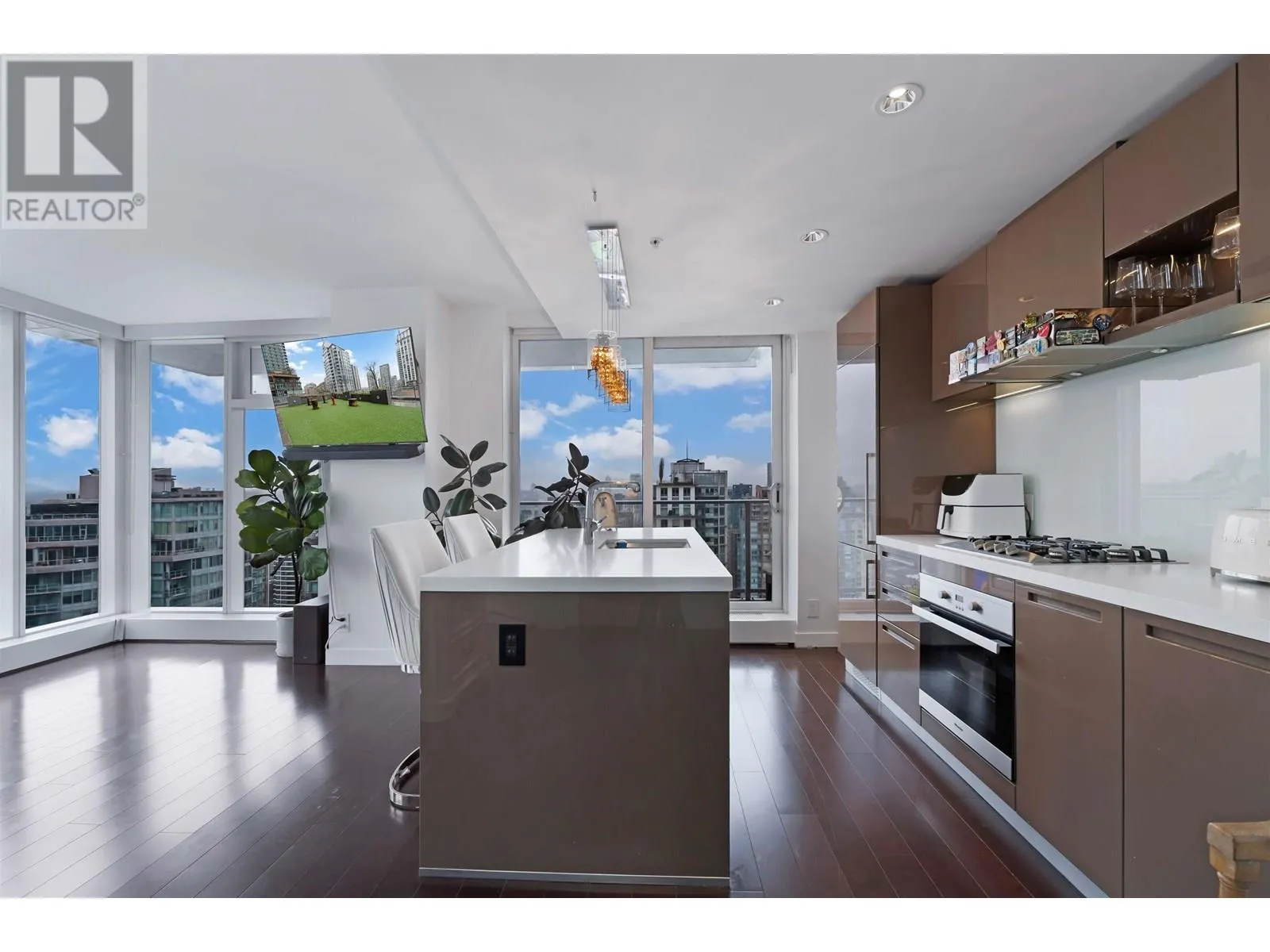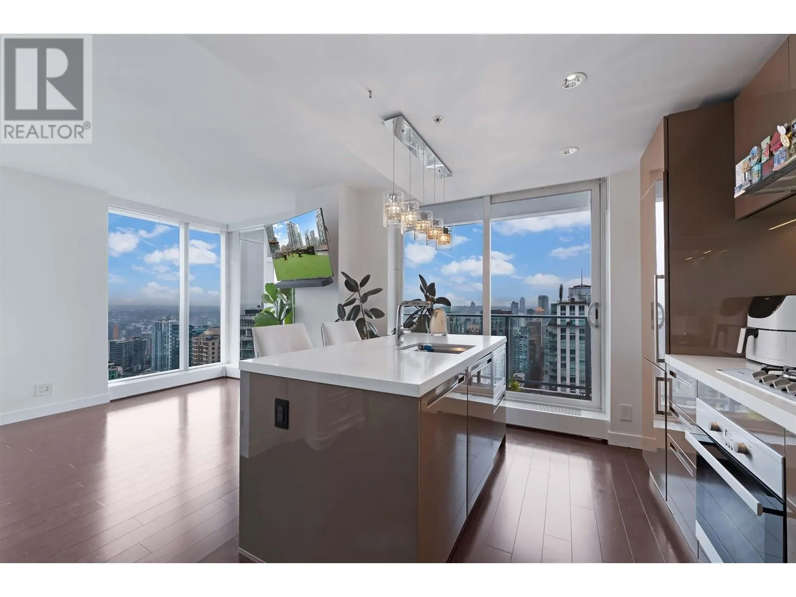 Welcome to this exceptional 3-bedroom + den, 2-bathroom corner home on the 35th floor of Telus Garden-an iconic air-conditioned tower in the heart of downtown Vancouver. Enjoy unobstructed Mount Baker and Vancouver skyline views with natural light from sunrise to sunset through floor-to-ceiling windows. This rare layout features 2 private balconies, 2 secured side-by-side parking stalls, Miele appliances, sleek stone counters, high-gloss cabinetry, spa-like baths with soaker tub and floating vanities, and hardwood throughout. The spacious den offers excellent storage or workspace. Resort-style amenities include a 24/7 concierge, outdoor pool, hot tub, infrared sauna, fitness centre, and lounge. Steps to world-class dining, shopping, parks, and transit-luxury living at its finest. (id:27476)