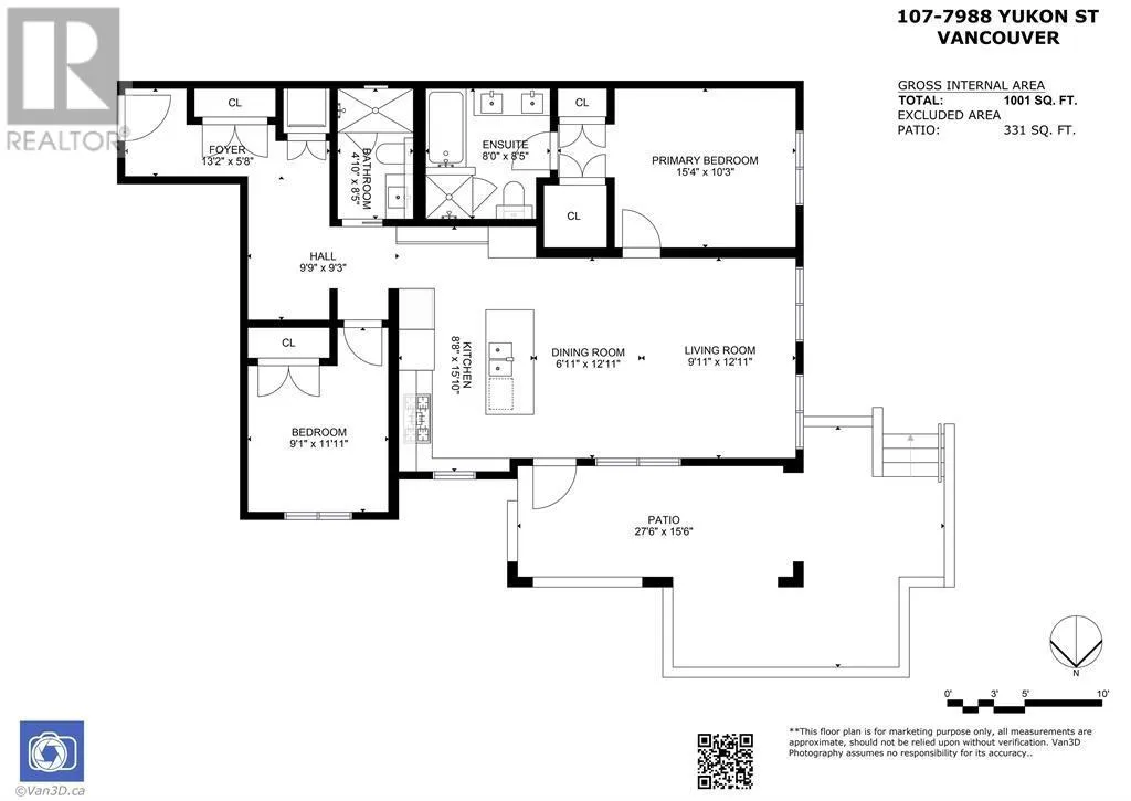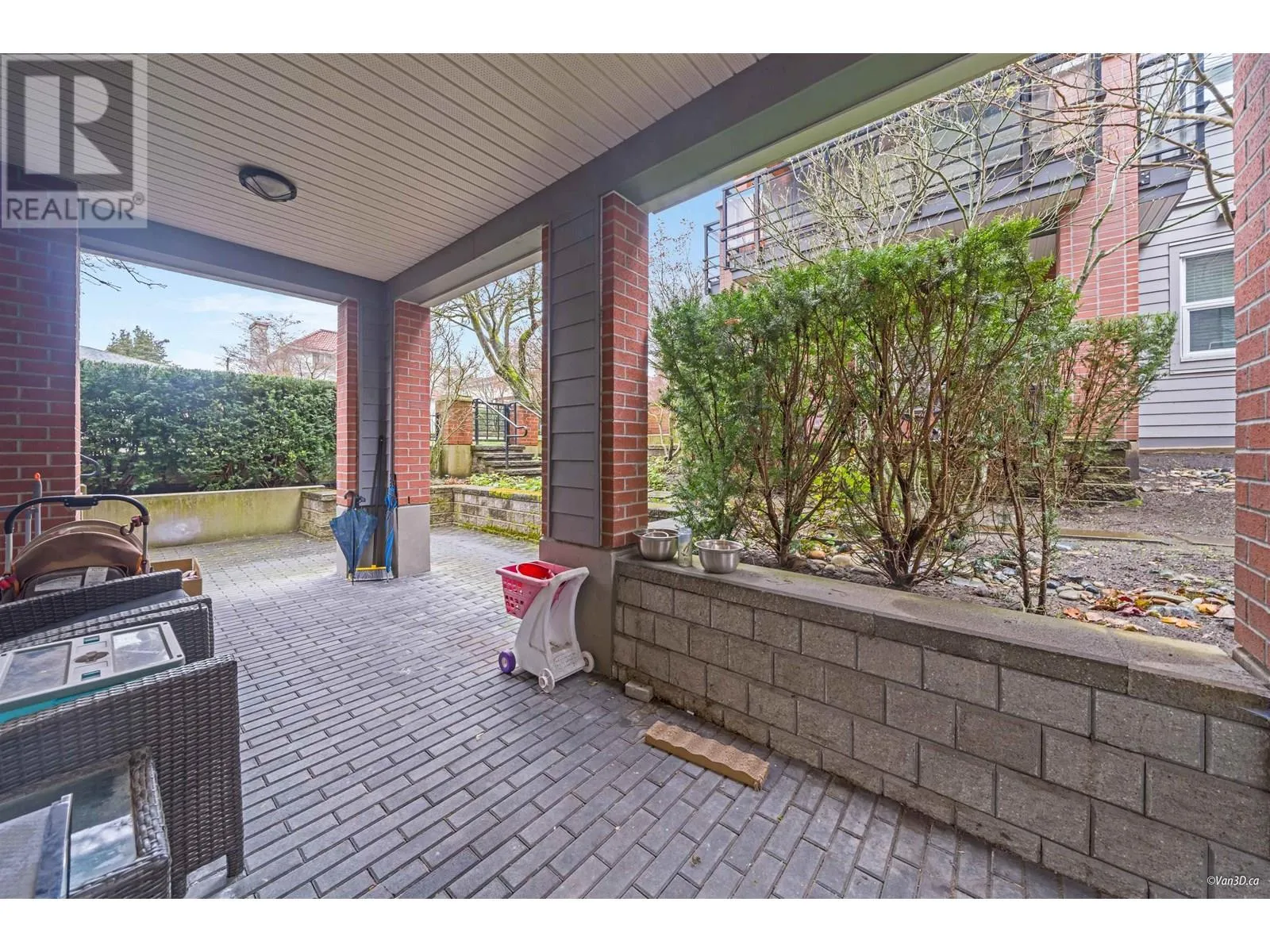 WELCOME TO THE RESIDENCES AT PARK & METRO by MARCON, ideally located at W 63rd and Yukon in the heart of Vancouver's Westside. With its striking red brick exterior and elegant entry fountain, this refined development stands out. This 970 sqft 2 bed, 2 bath corner home features air conditioning, premium Bosch appliances, gas cooking, and a spacious 300 sqft covered patio with private access-perfect for entertaining. Thoughtful layout offers separated bedrooms for added privacy, along with a dedicated foyer/hallway for sound reduction and enhanced comfort. Includes 1 parking and 1 storage locker. Just steps to Marine Gateway, Winona Park, Cineplex, T&T, and Canada Line transit. Dont miss this one! (id:27476)