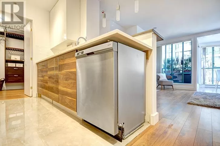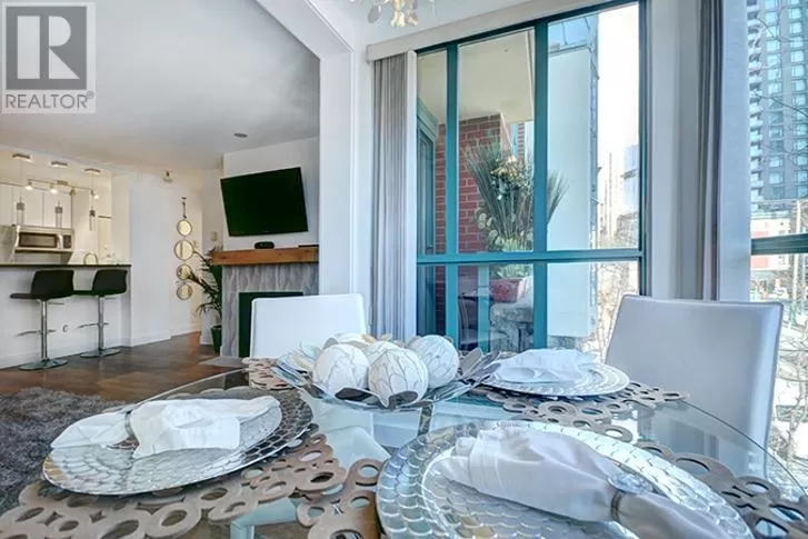 This stunning newly renovated fully furnished home has everything you could need in the heart of Yaletown. 640sf, 1 bedroom, 1 bathroom + office area, all completely renovated with all new floors. Open bright living room provides ample seating around a central gas fireplace with large TV above wooden mantel. Adjacent dining room has floor to ceiling windows. Beautiful modern kitchen with new stainless steel appliances, breakfast bar, horizontal laminated wood cabinets, and quartz countertops. Off the kitchen is a large storage room with built-in racks and workspace. 1 parking stall included plus ample visitors' parking and bike storage. (id:27476)