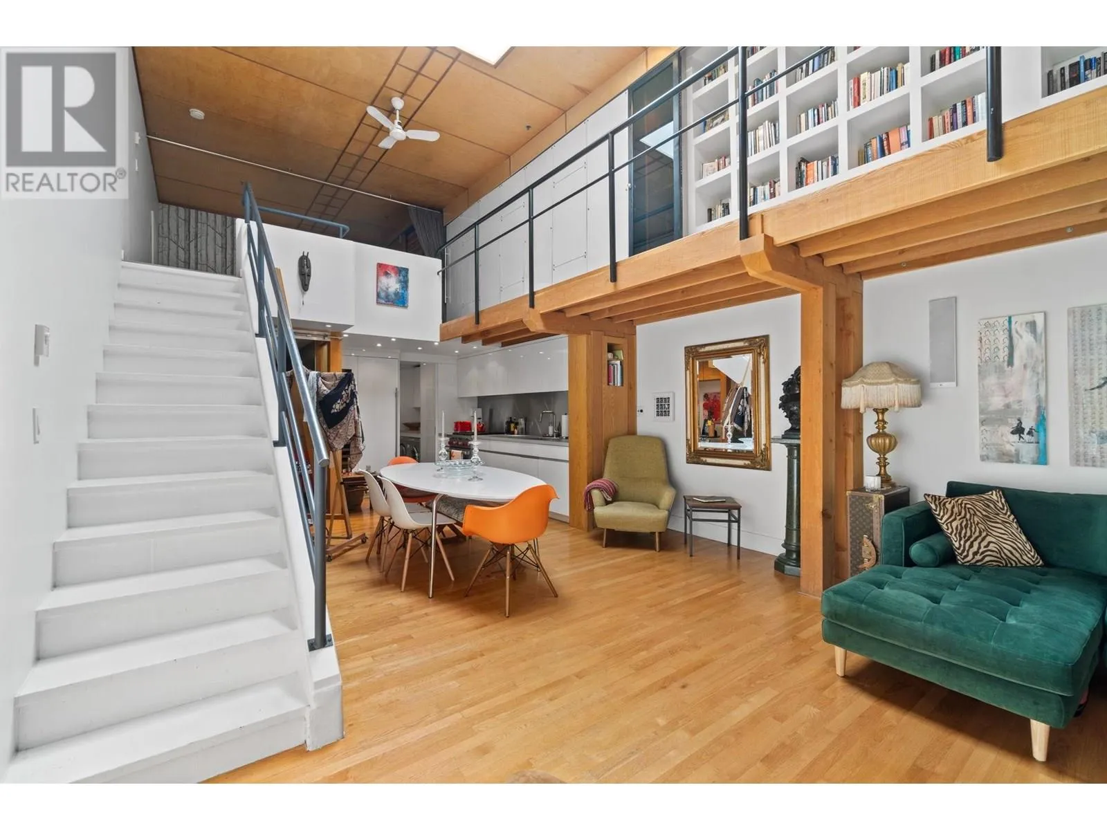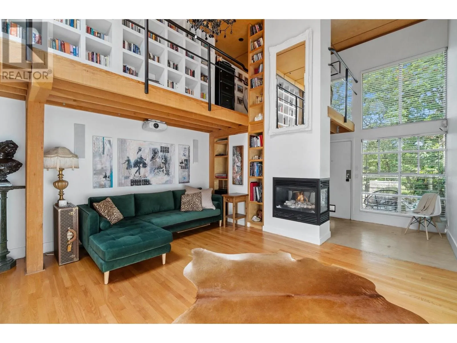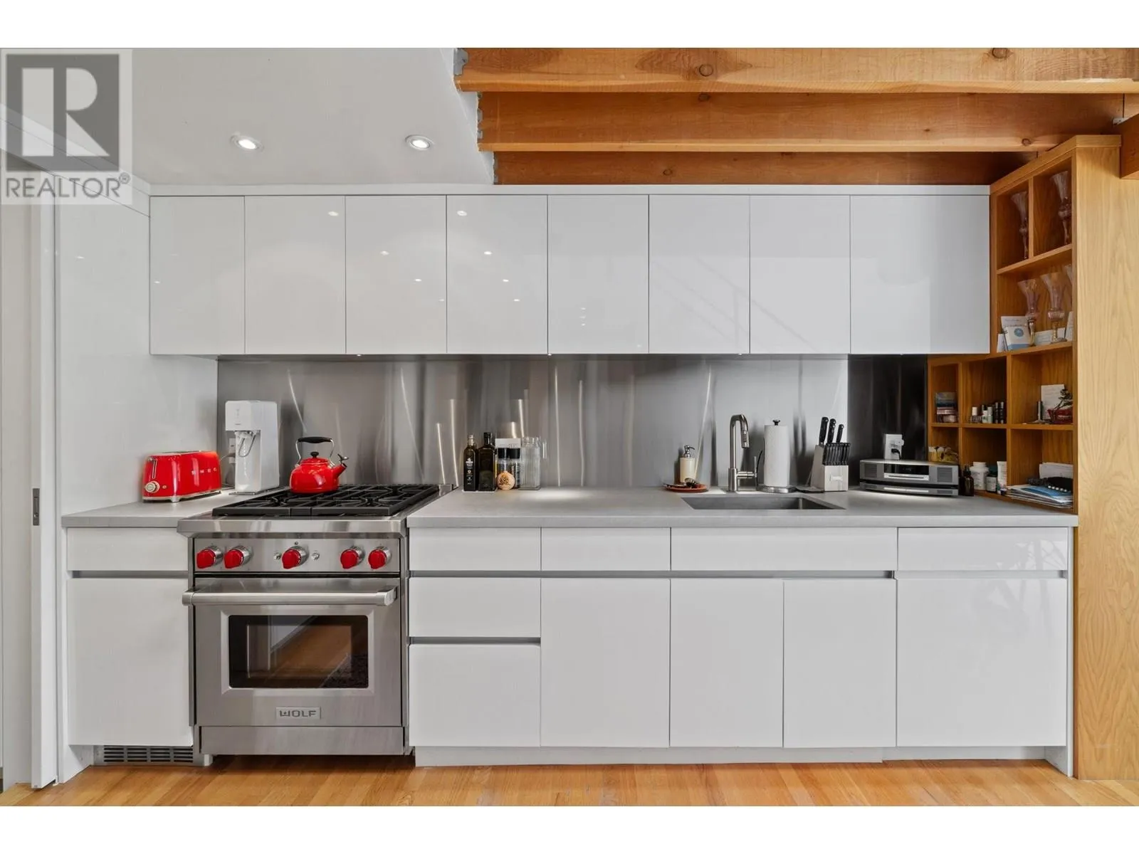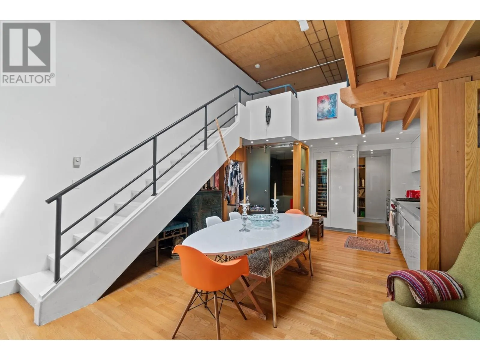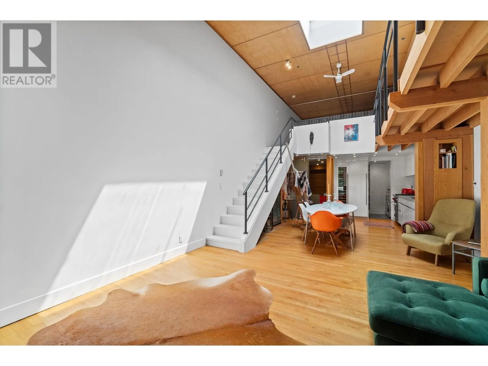 Welcome to China Creek Lofts - a beautifully re-imagined 2-level loft-style Live/Work townhome offering over 1200 sqft of modern comfort in the vibrant heart of Mount Pleasant, perfectly located between Main St & Commercial Dr. This architectural gem boasts soaring 16-ft ceilings, solid maple hardwood floors, custom steel railings & an abundance of natural light throughout. Thoughtfully renovated, the home features a chef-inspired kitchen with Sub-Zero fridge, wine fridge, Wolf range, custom cabinetry & designer lighting. The spa-like bathroom, dedicated laundry/storage room & versatile flex space (ideal as a den or home office) make everyday living feel effortless. Custom built-ins throughout. Parking, storage & huge private patio! A truly rare find-Book you showing today! (id:27476)