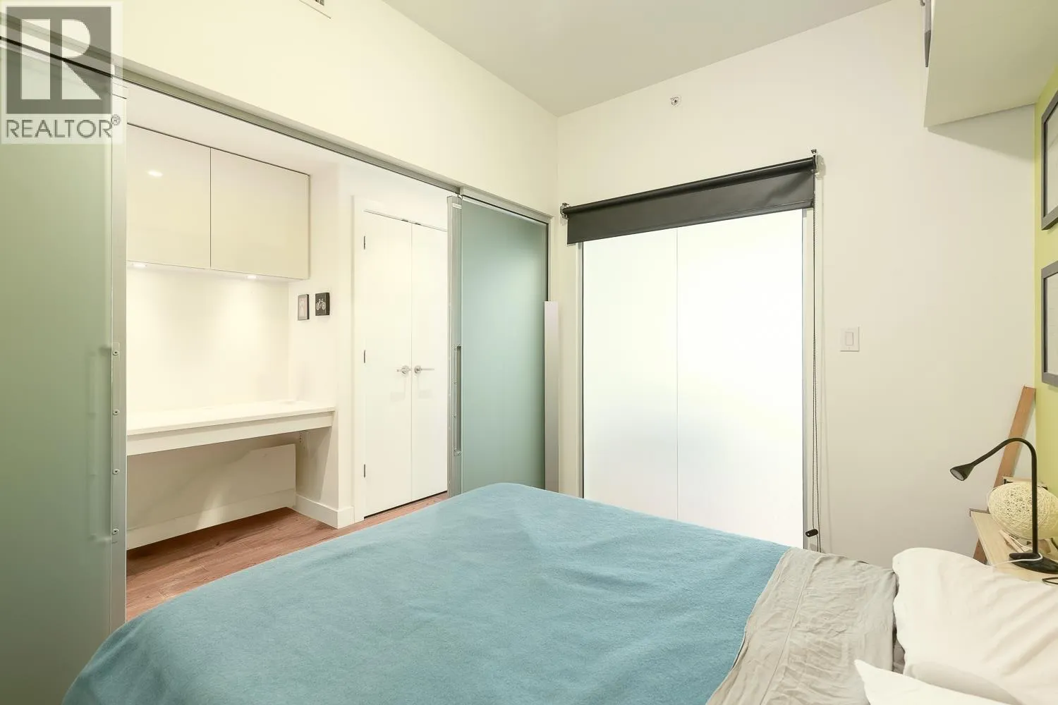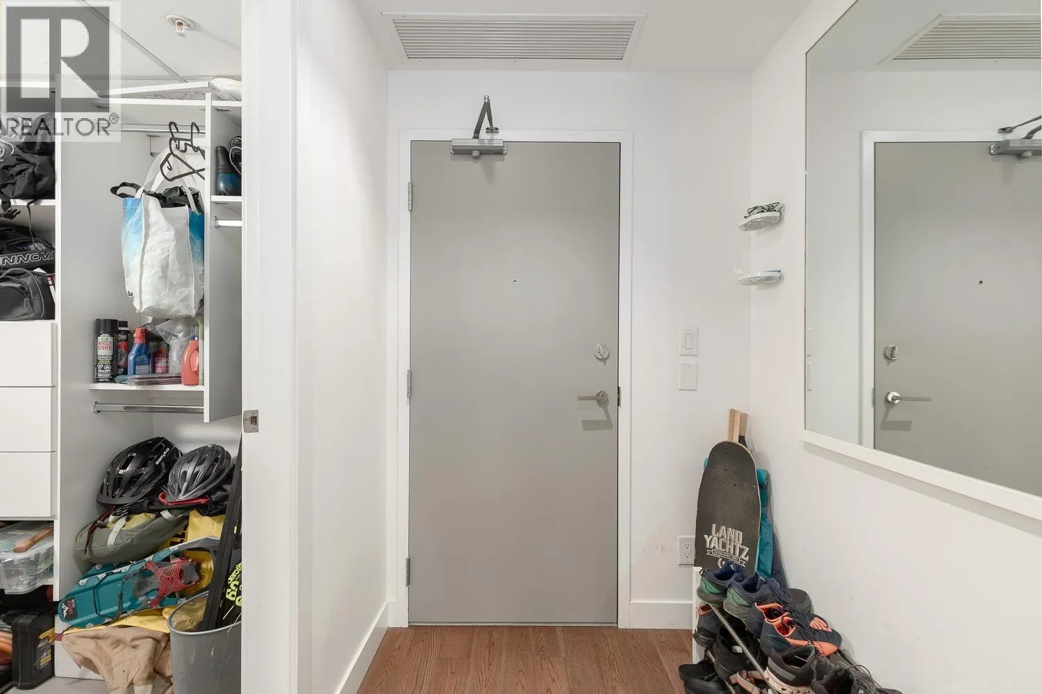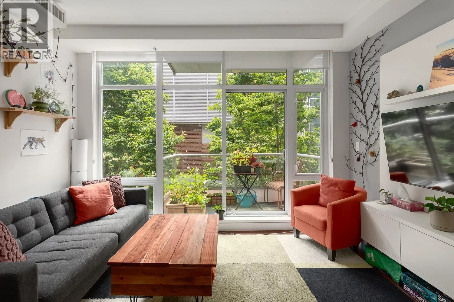 South-facing modern designer homer - former developer showroom - flooded with natural light and meticulously maintained. Features over-height ceilings, engineered hardwood, roller blinds, built-in workstation, and custom TV millwork. Efficient heating/cooling system/ The signature Cressey Kitchen boasts high-gloss cabinetry, integrated European appliances, gas cooktop, new dishwasher (2024), and washer /dryer (2022). Includes 2 secured parking stalls + storage locker. Amenities: gym, rooftop terrace, party lounge. Pet & rental friendly. Steps to Seawall, Olympic Village, transit, shops & breweries. (id:27476)