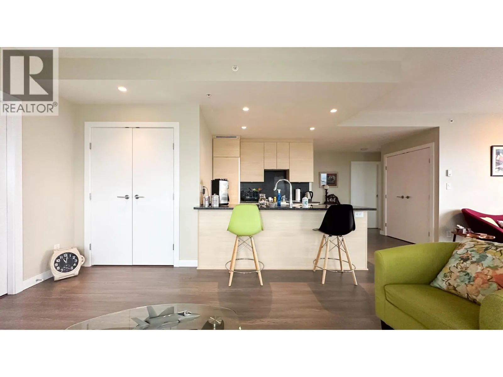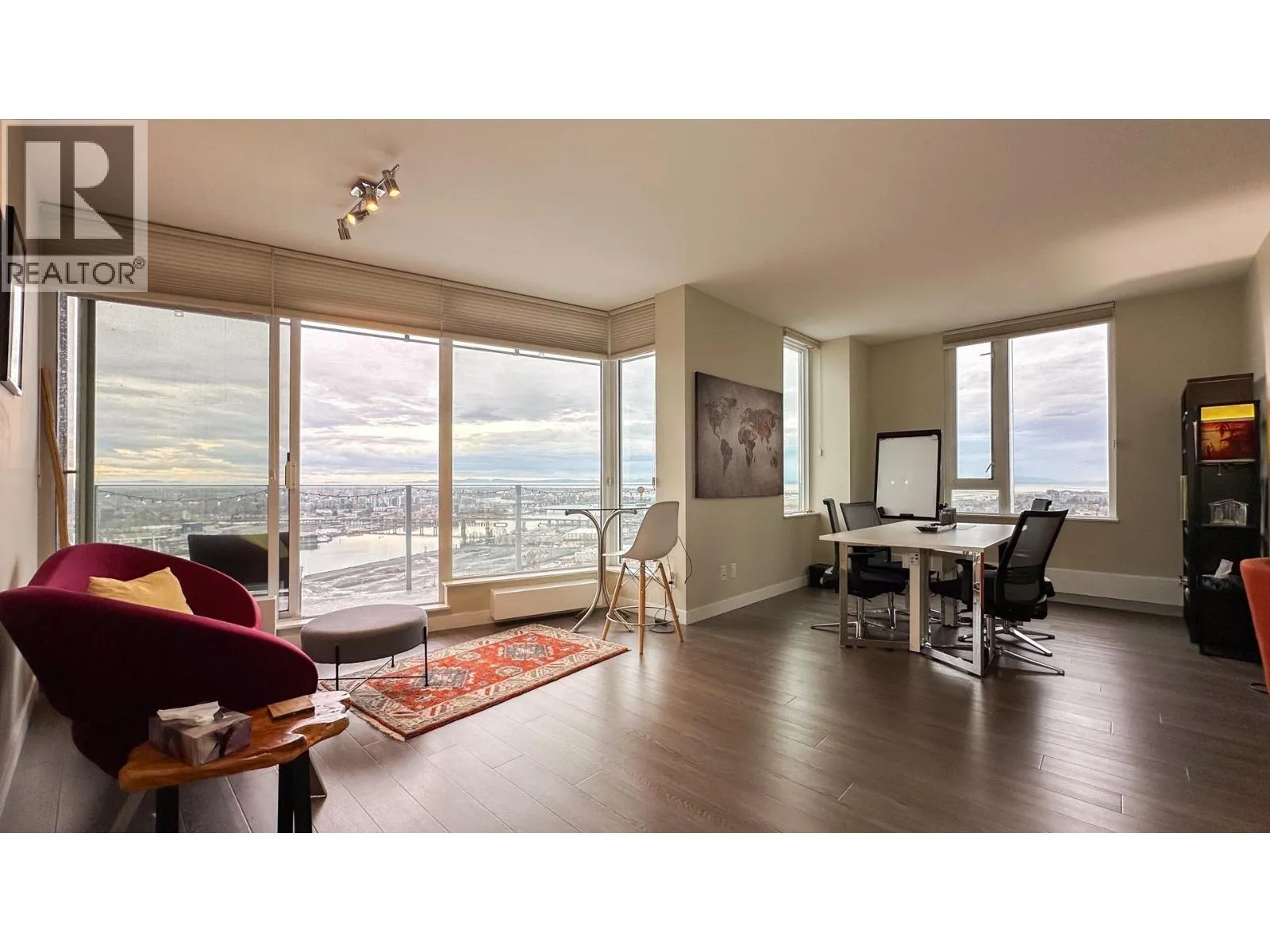 Location! Location! A golden opportunity to own this sub-penthouse unit with 360 degree of panoramic views of Fraser River, Richmond, West side Vancouver and East side of Vancouver up to Burnaby. It offers 1122 sqft living area with 2 bedrooms, 3 view roof decks. Centrally & conveniently located with Canada Line station, T & T supermarket, Cineplex and eateries. (id:27476)
