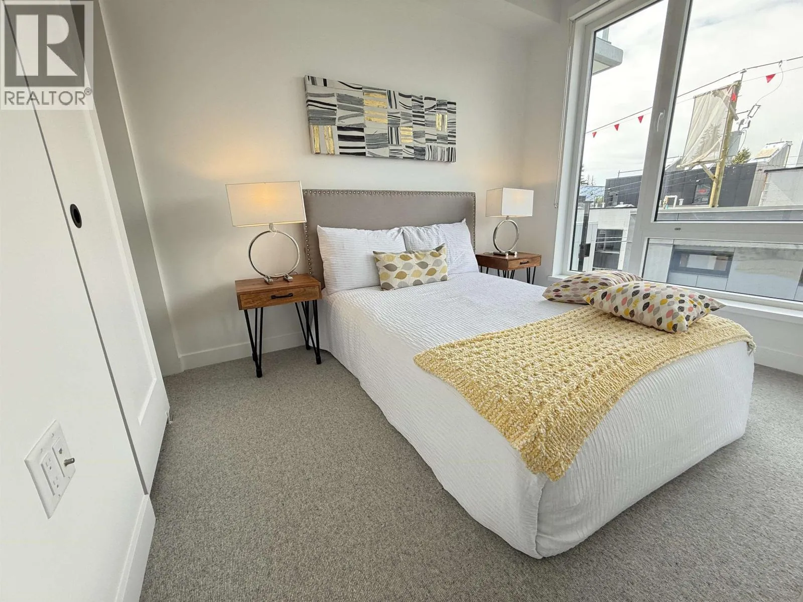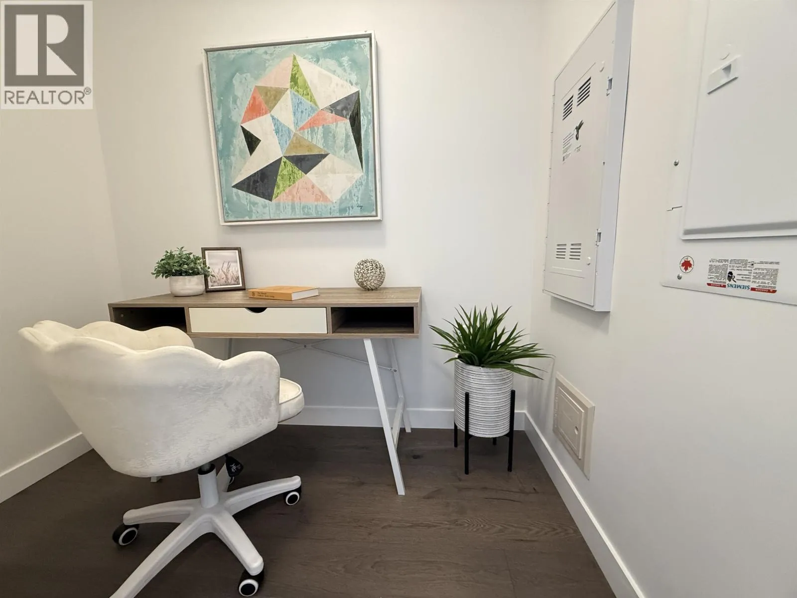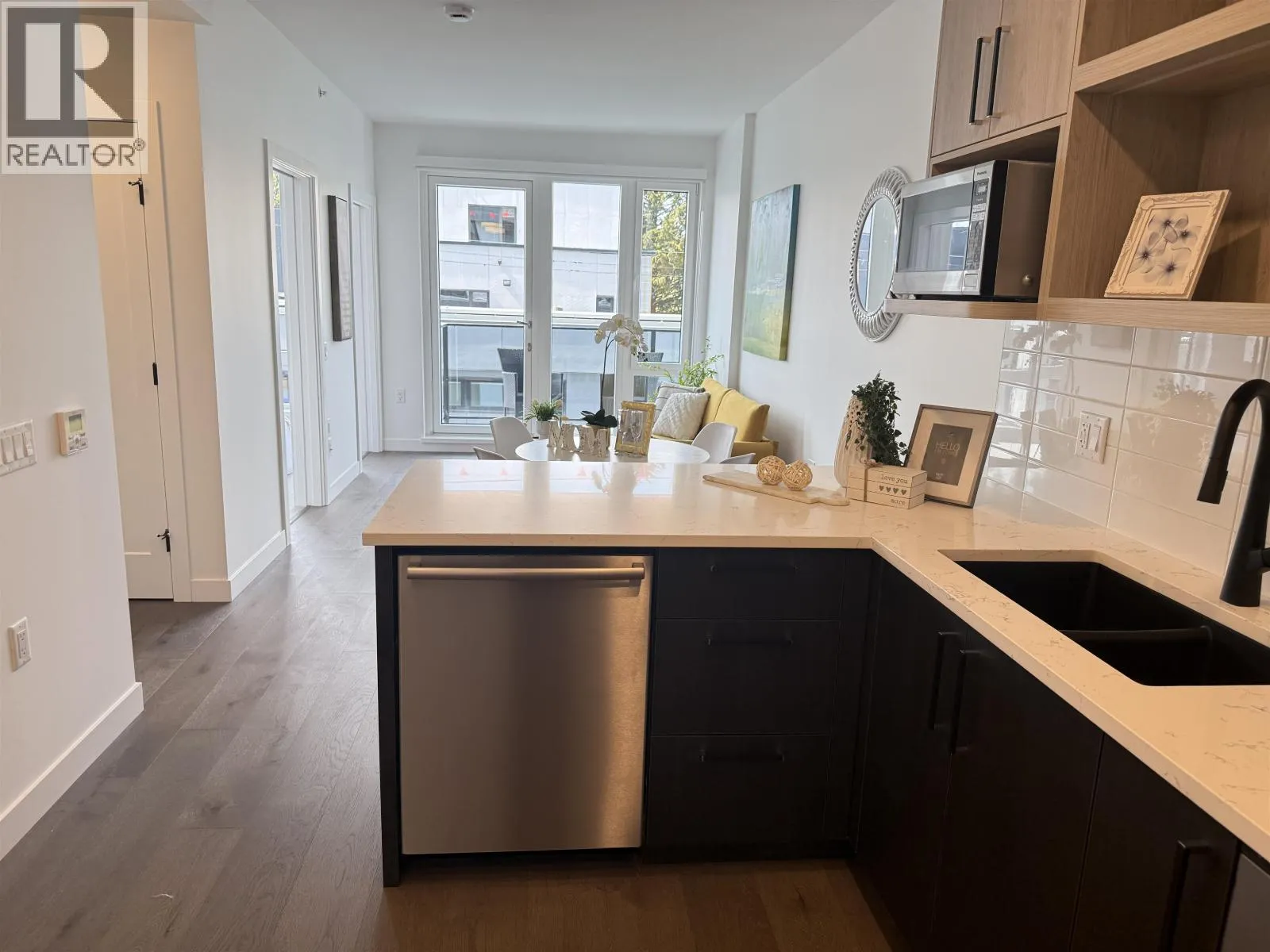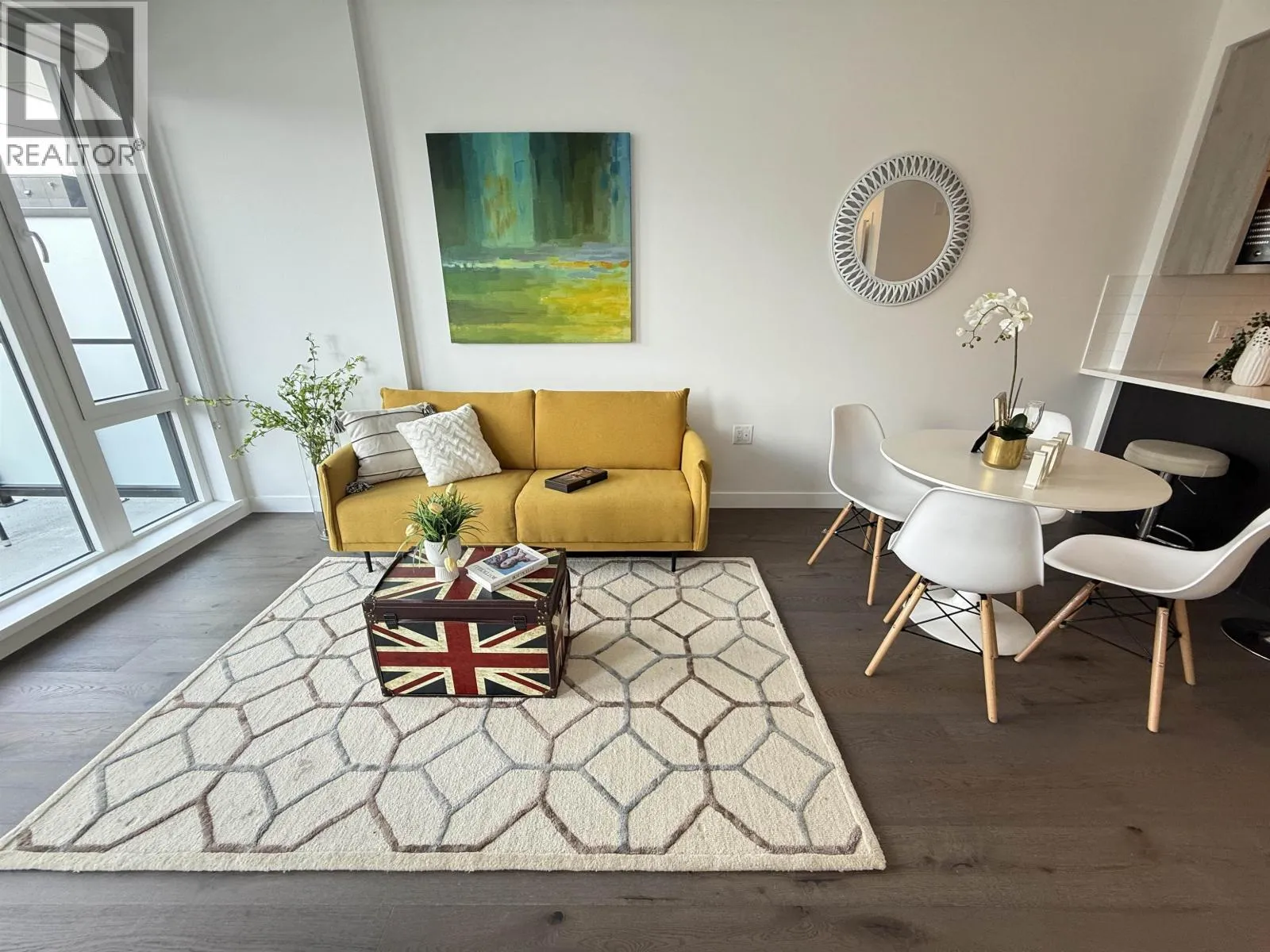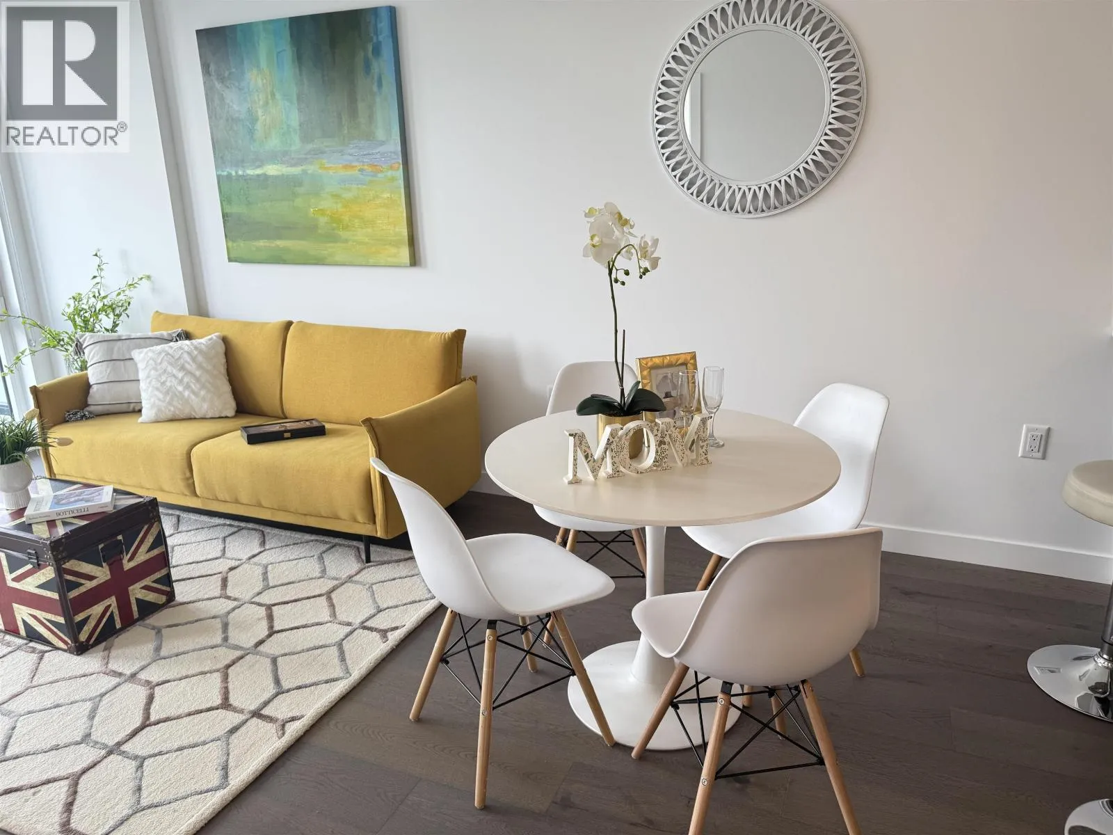 LOCATION! LOCATION! LOCATION! Concrete built property!!! This brand-new 1-bedroom + 1 den home faces a quiet inner street, offering both comfort and privacy. It features modern cabinetry, hard wood flooring, quartz countertops, high ceilings, and central air conditioning. The den is flexible - ideal as a home office or a guest room with a single bed. Includes 1 parking stall and 1 bike storage rack, plus full coverage under the 2-5-10 New Home Warranty. 5-minute walk to Langara - 49th Canada Line Station, offering direct access to Downtown, Richmond, and YVR Airport. Only 15 minutes walk to the future Oakridge Centre. With in walking distance to top-ranked schools, including Dr. Annie B. Jamieson Elementary and Sir Winston Churchill Secondary (IB program) . (id:27476)