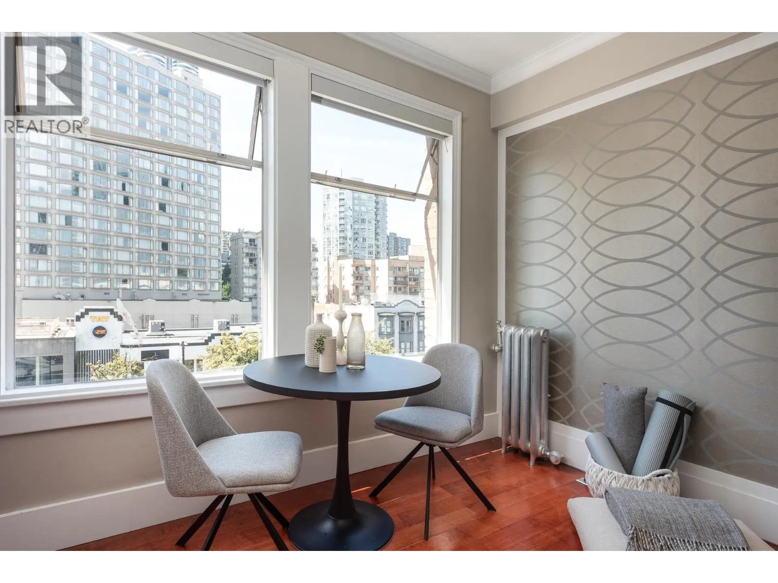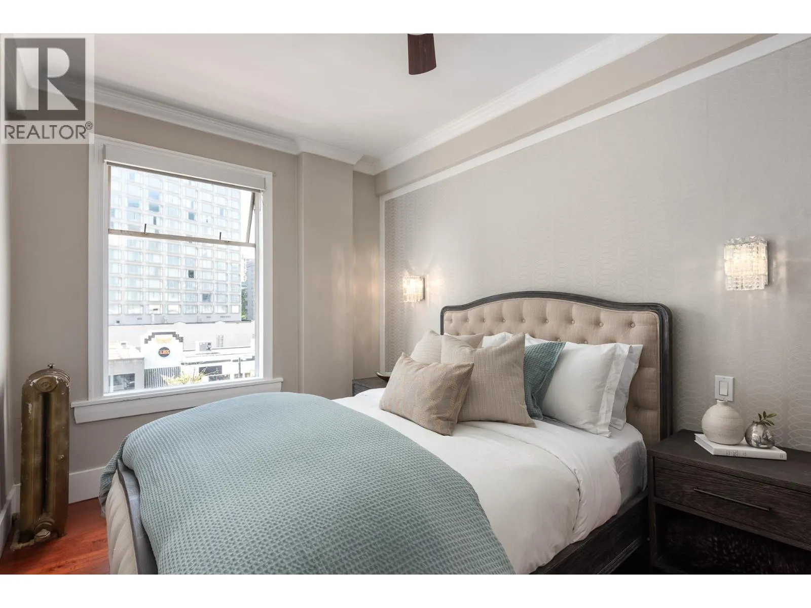 Step into a rare gem of Vancouver's history at 777 Burrard Street nestled within a beautifully preserved six-story 1914 heritage building. Lovely one bedroom suite blends the charm of yesteryear with modern elegance, offering a unique living experience in one of the city's most coveted locations. 9' ceilings immediately enhance the spaciousness of the open-plan kitchen and living area. A pretty kitchen features custom-designed cabinetry. Every detail has been meticulously crafted, from the sleek California Closets built-ins to the expansive marble bathroom. Large windows flood the spacious bedroom with natural light. Just steps from the best shops and restaurants, this well maintained, re-piped building offers the convenience of a live-in caretaker. Don't miss this exclusive chance. (id:27476)