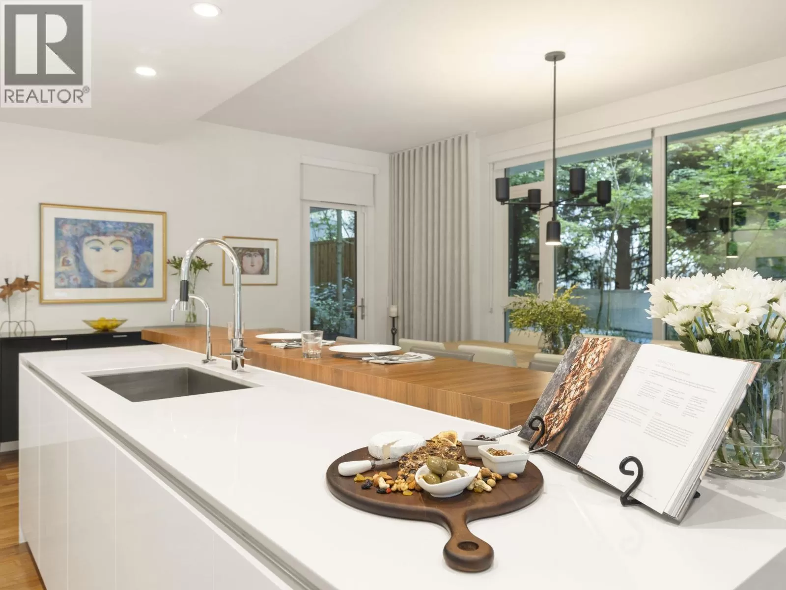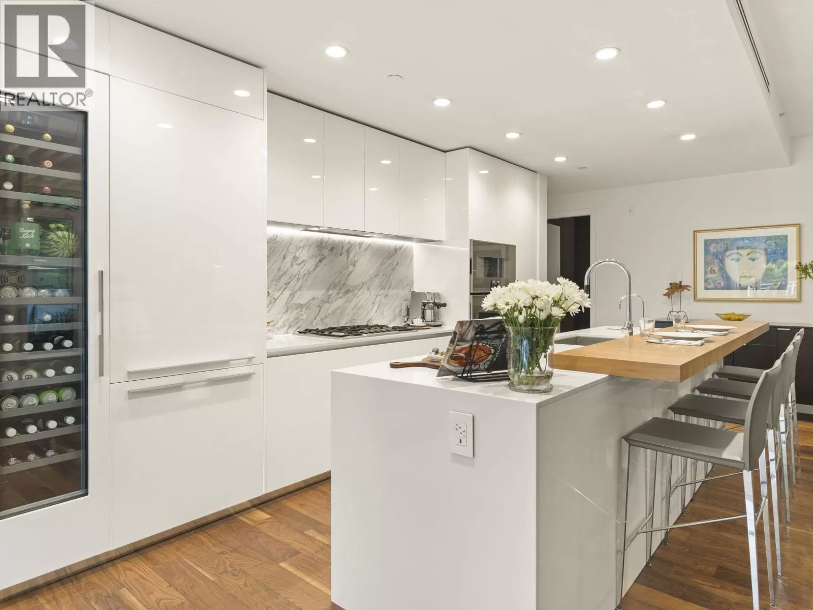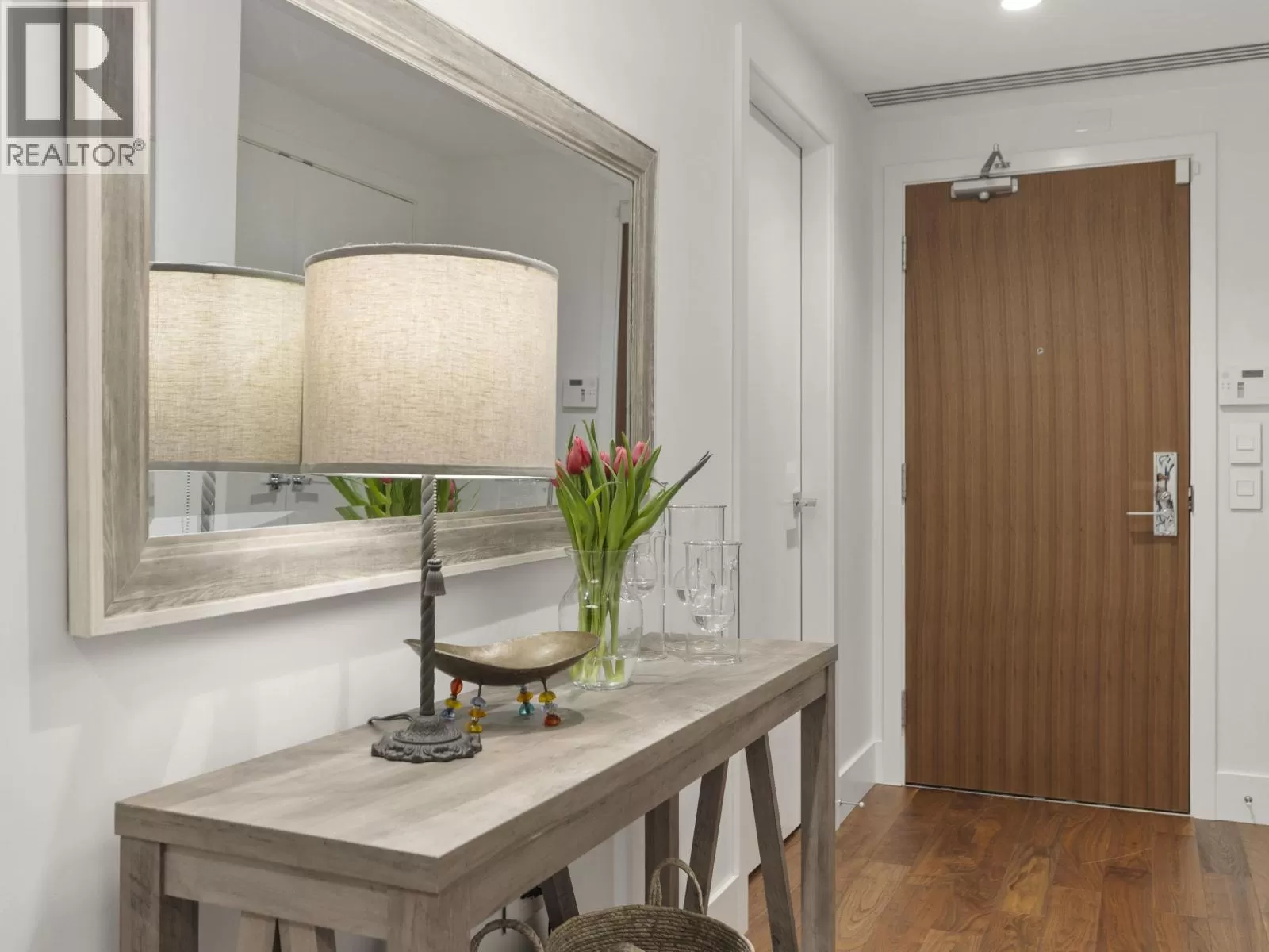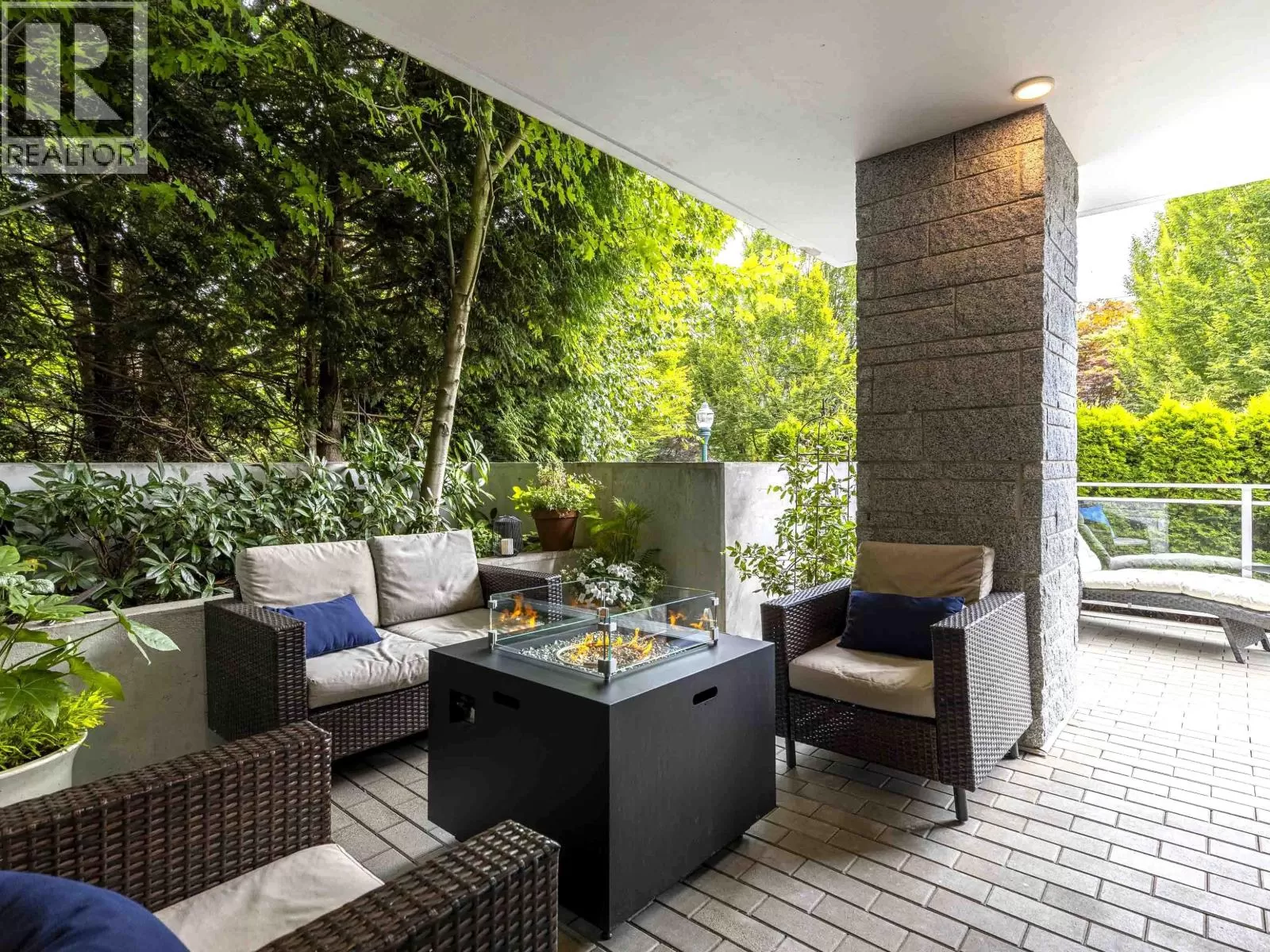 Modern elegance meets tranquil sophistication in this rare garden-level residence at Belpark by Intracorp.This 3 bed+flex luxury SE corner home blends refined European design with warm natural elements, featuring a sleek chef's kitchen, high-end appliances, steam-oven, wine fridge, Italian cabinetry, marble slab backsplash & quartz stone counter. Floor-to-ceiling windows bathe the open concept space in natural light, complemented by custom millwork, full-length fireplace & wide-plank matte walnut hardwood floors. Enjoy the seamless outdoor living with your private oasis surrounded by lush greenery. Belpark offers peaceful reflecting pool surrounded by landscaped courtyard, concierge, gym, lounge. Steps from parks, Churchill High, Langara College, YMCA & Golf Course. True Westside Master Piece! (id:27476)