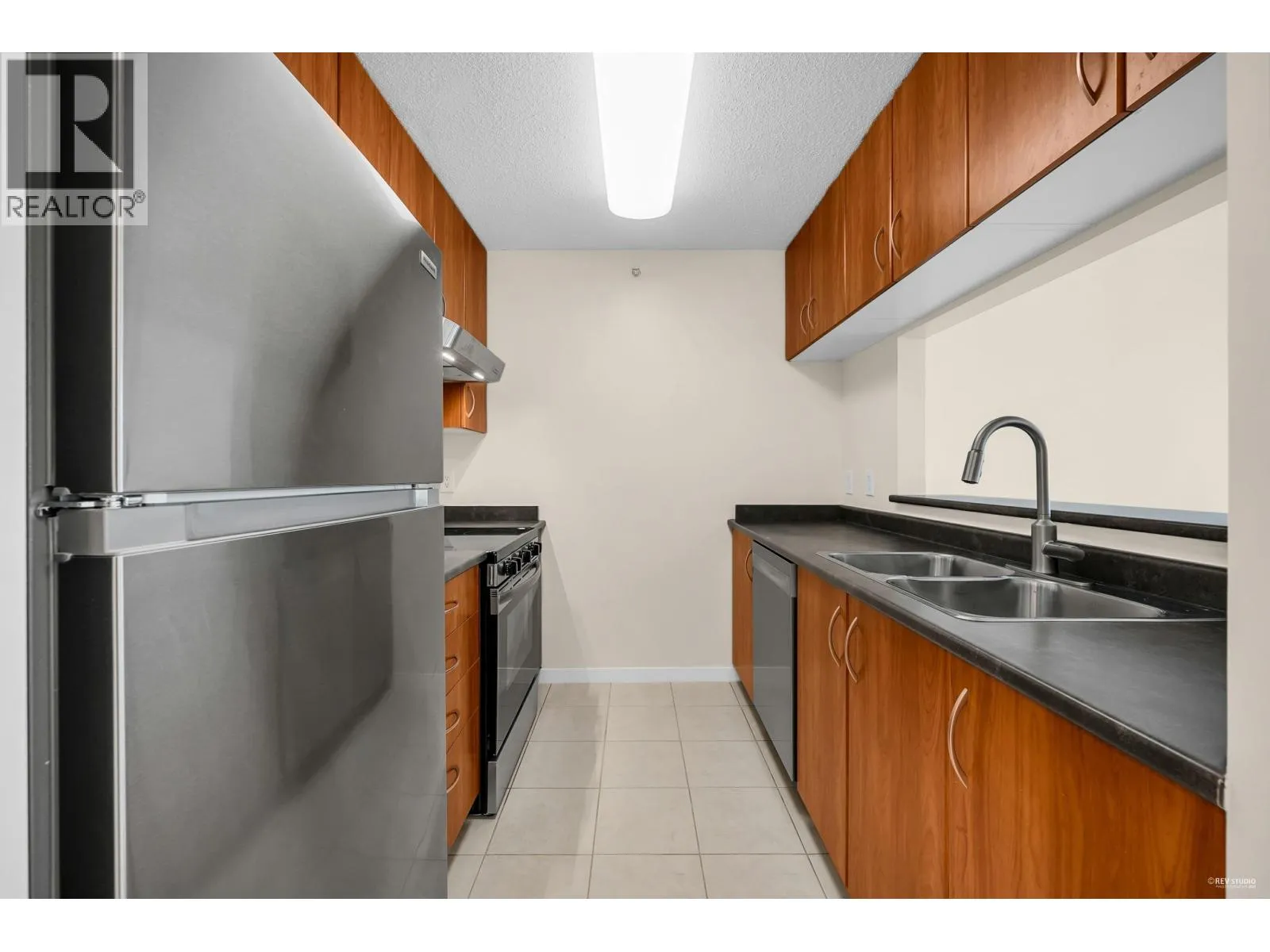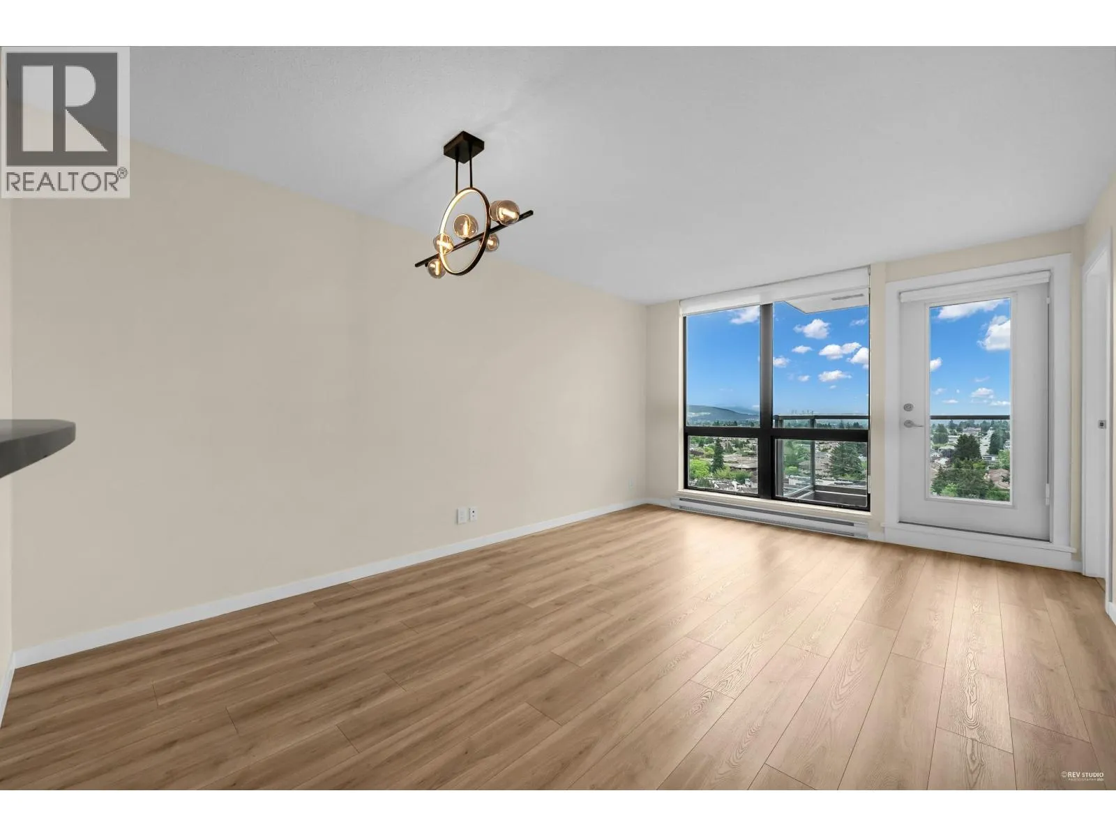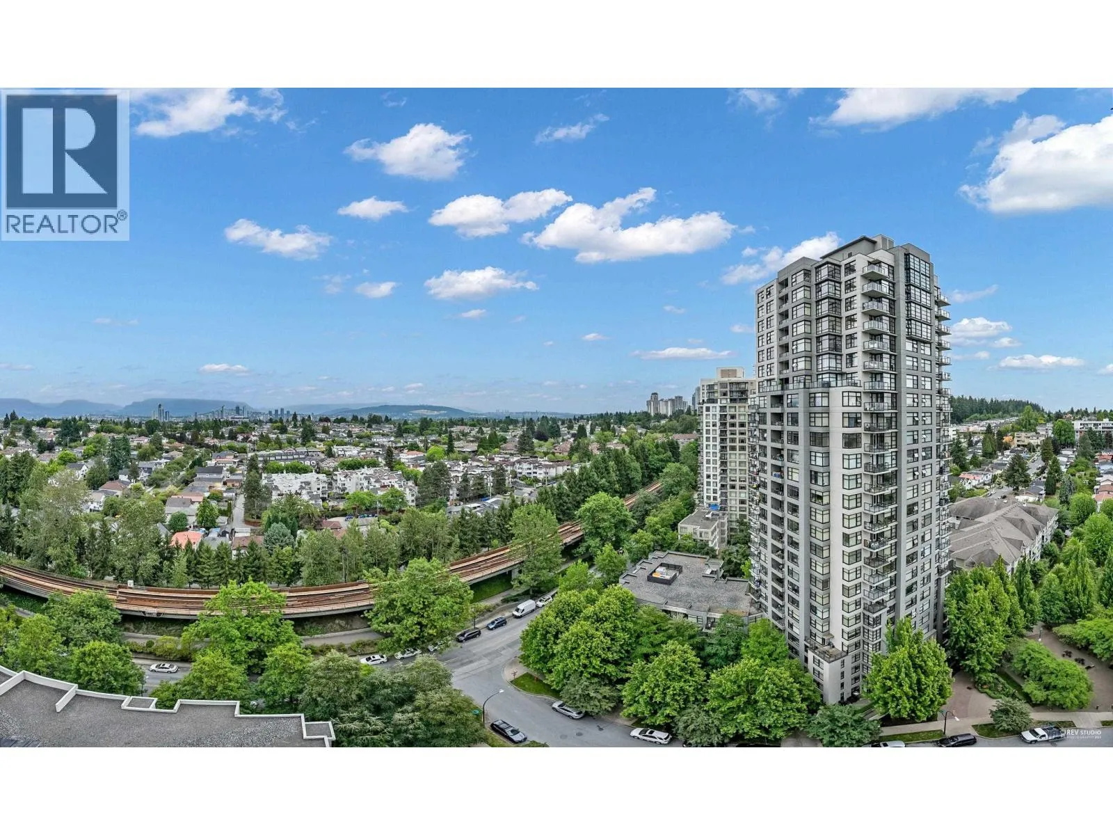 Welcome to Latitude by BOSA in the heart of Collingwood! This bright and modern 1 Bed + bedroom-sized Den, 1 Bath home offers 669 sqft of functional living on the 20th floor. East-facing with floor-to-ceiling windows, enjoy beautiful city and mountain views. The spacious den is perfect for a home office or guest space. Features include brand-new laminate flooring, new kitchen appliances, in-suite laundry, private balcony, 1 regular-size parking stall, 1 storage locker and LOW strata fee. A/C possible with strata's approval. Unbeatable location-steps to SkyTrain Station, minutes to Metrotown, parks, schools, and shops. Easy access to Highway 1 makes commuting a breeze. *Some photos are virtually staged to showcase its potential* (id:27476)