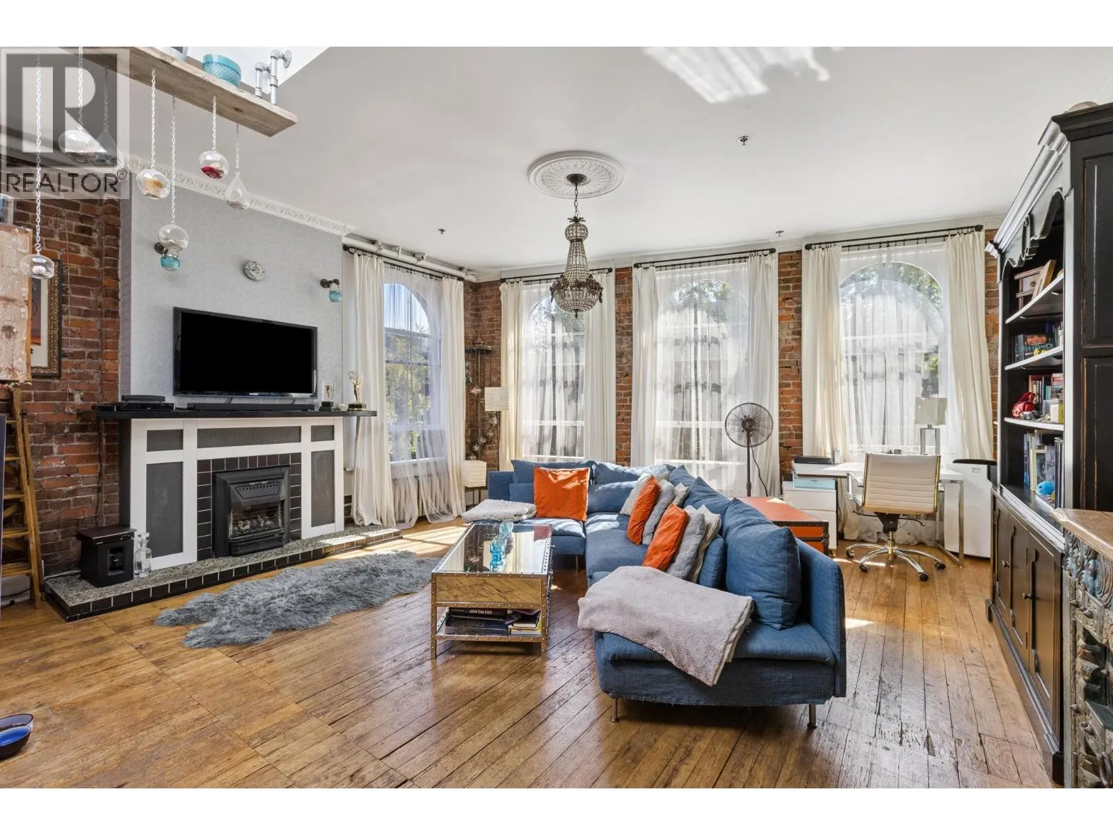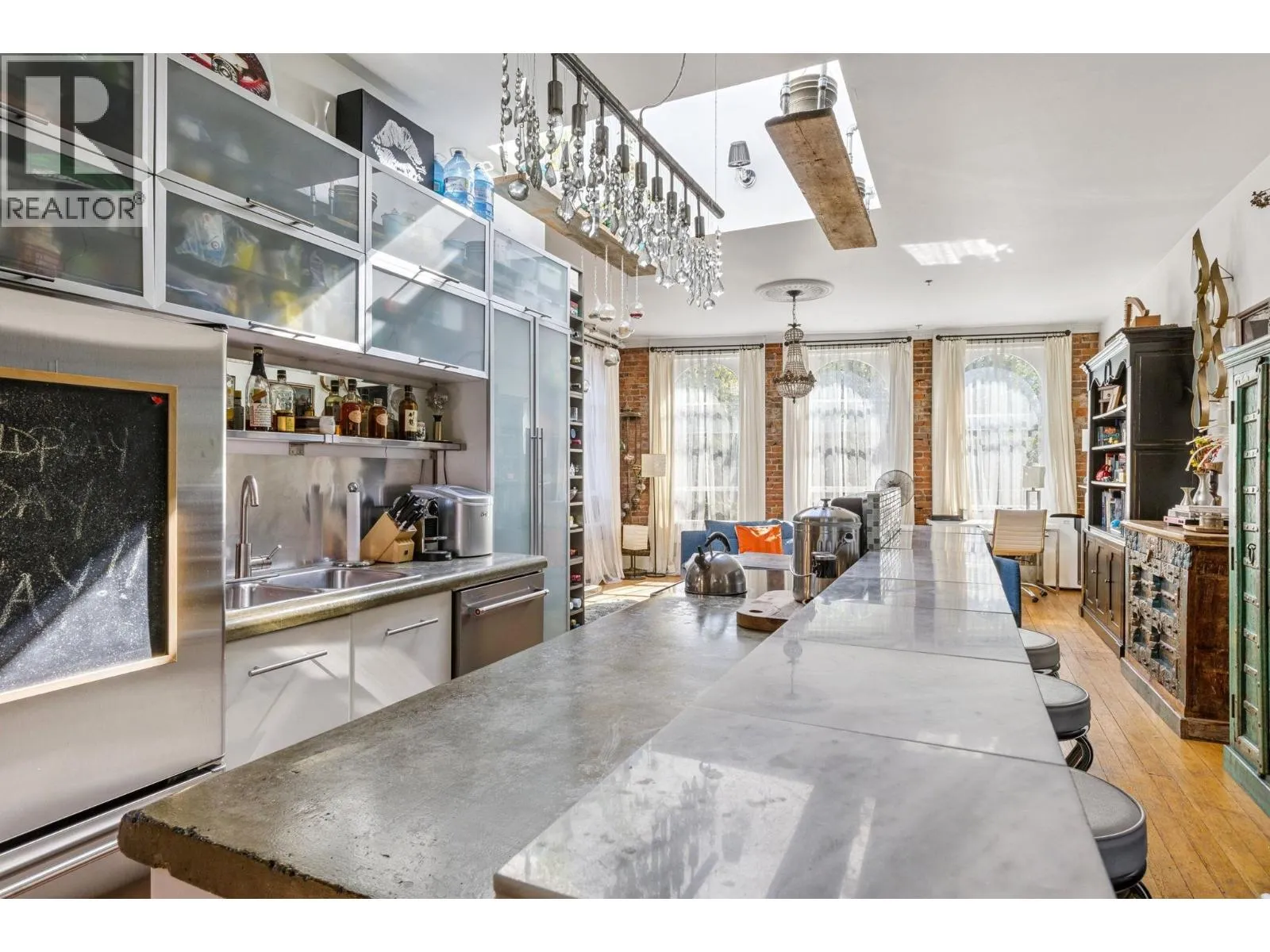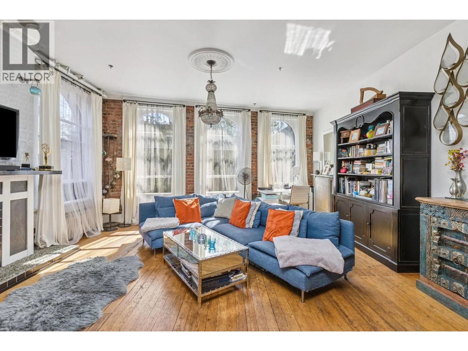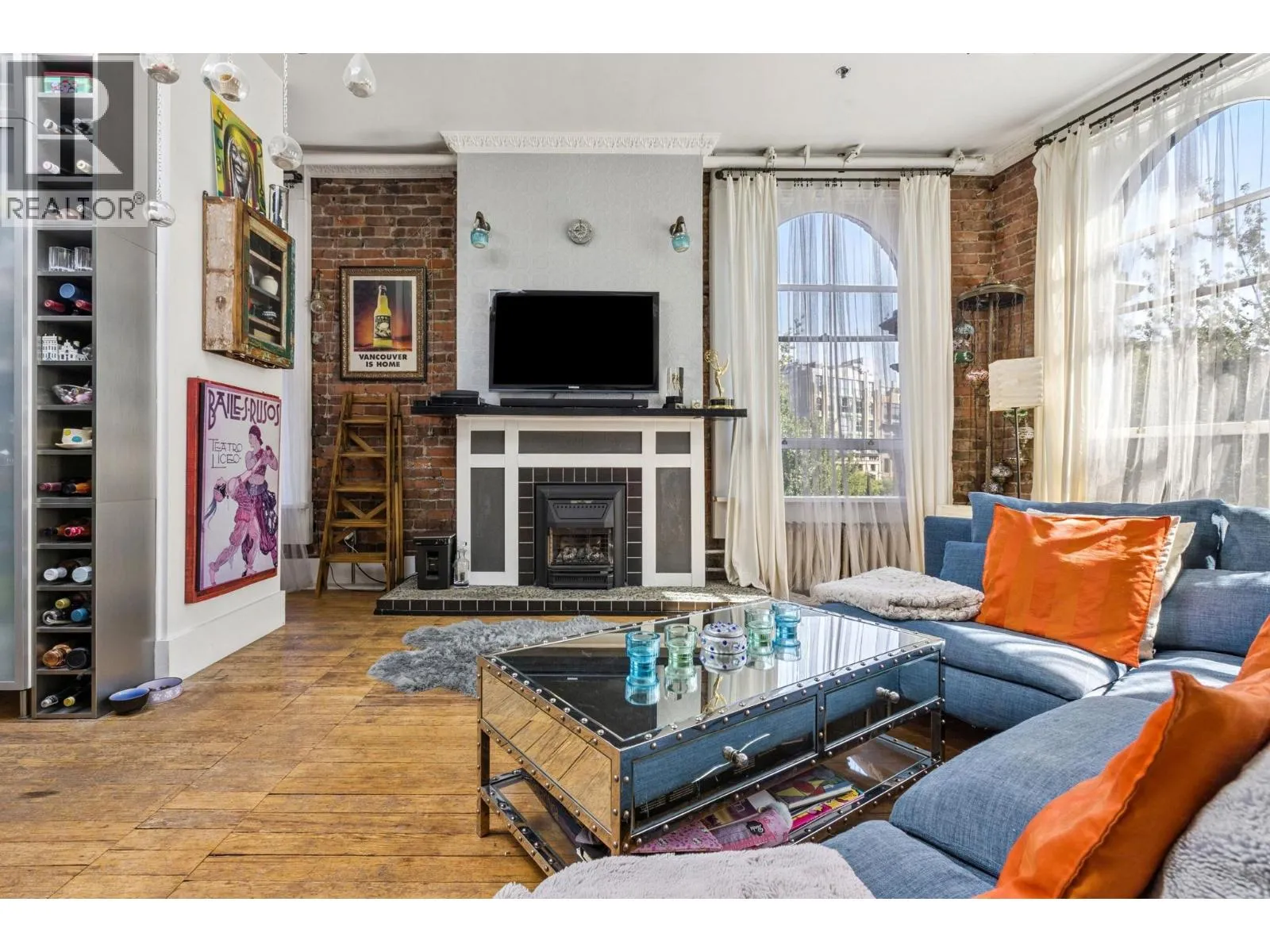 FASHIONABLE. HERITAGE. If Carrie Bradshaw and Oscar de la Renta had a Vancouver love child, it would be Bodega Studios. This pre-1900 heritage beauty, transformed into lofts in 1993, is bursting with character. Sitting on the prized north corner, it features two grand banks of windows, a bonus skylight, and exposed brick on three sides. Beyond the original hardwood, the home has been completely renovated with concrete countertops, updated appliances, a timeless clawfoot tub, and a welcoming fireplace. Enjoy generous storage, a vibrant community of neighbours, and pet and rental-friendly living. Parking is conveniently located one block away. (id:27476)