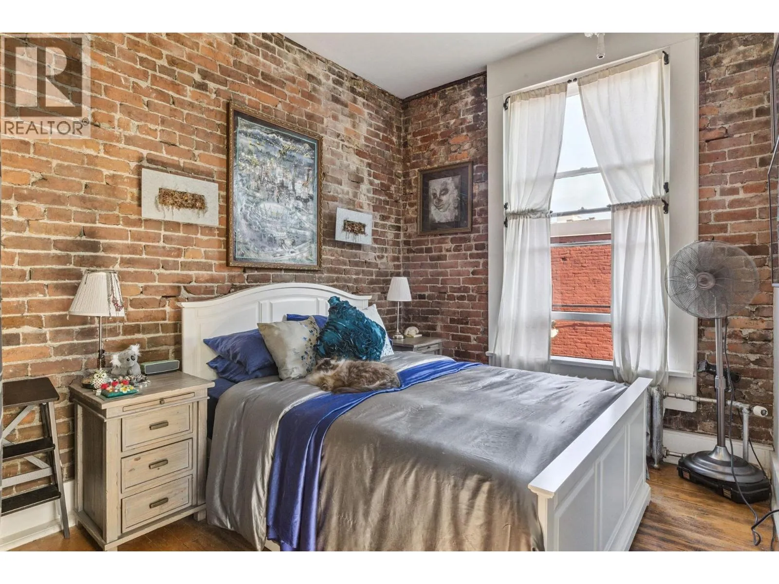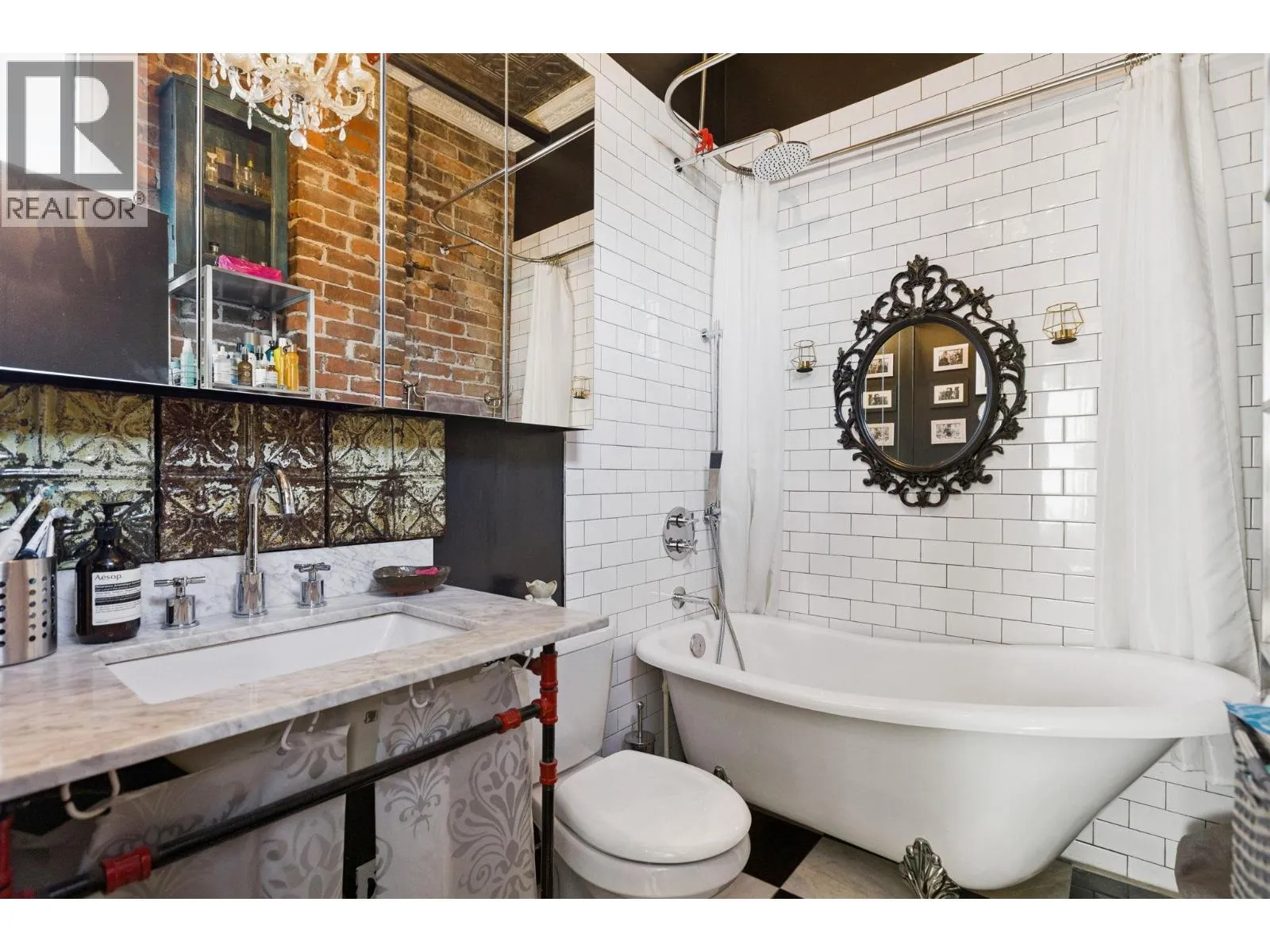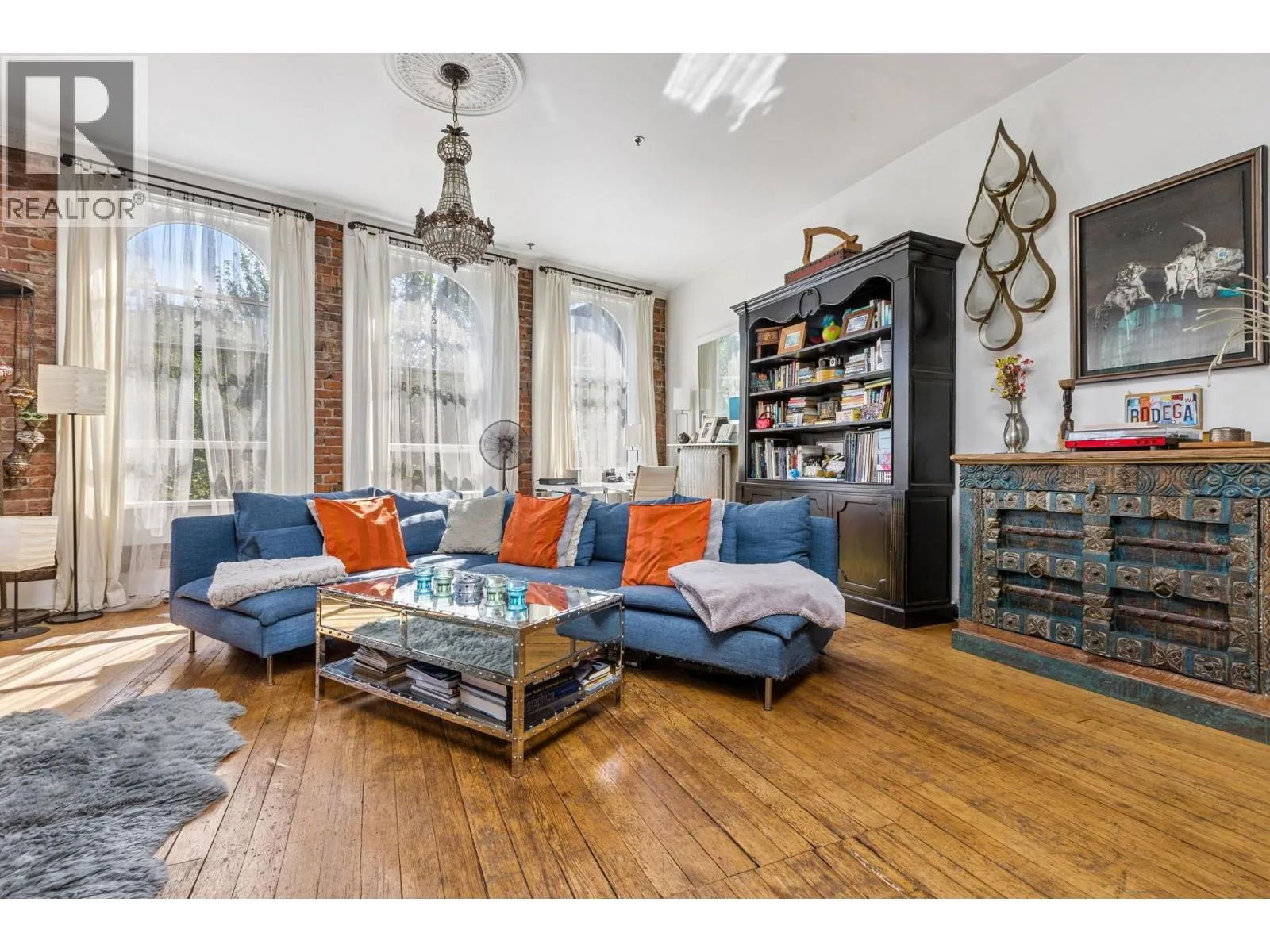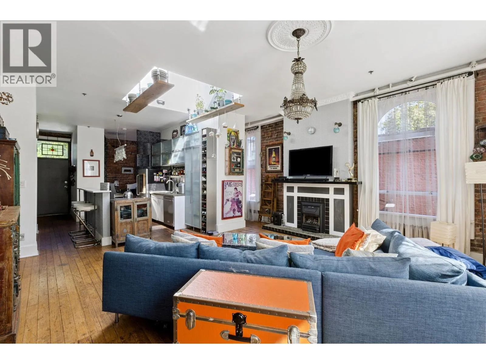 FASHIONABLE. HERITAGE. If Carrie Bradshaw and Oscar de la Renta had a Vancouver love child, it would be Bodega Studios. This pre-1900 heritage beauty, transformed into lofts in 1993, is bursting with character. Sitting on the prized north corner, it features two grand banks of windows, a bonus skylight, and exposed brick on three sides. Beyond the original hardwood, the home has been completely renovated with concrete countertops, updated appliances, a timeless clawfoot tub, and a welcoming fireplace. Enjoy generous storage, a vibrant community of neighbours, and pet and rental-friendly living. Parking is conveniently located one block away. (id:27476)