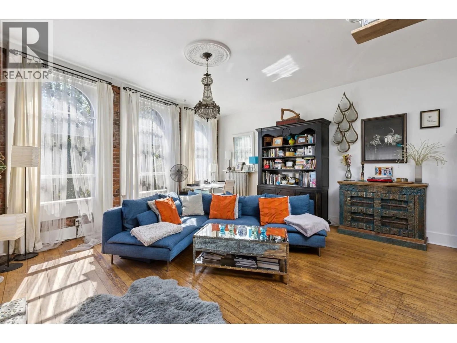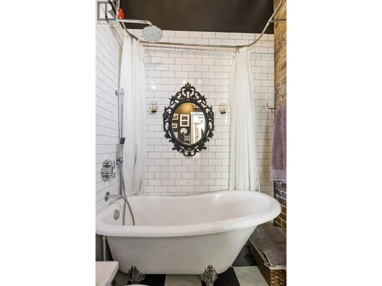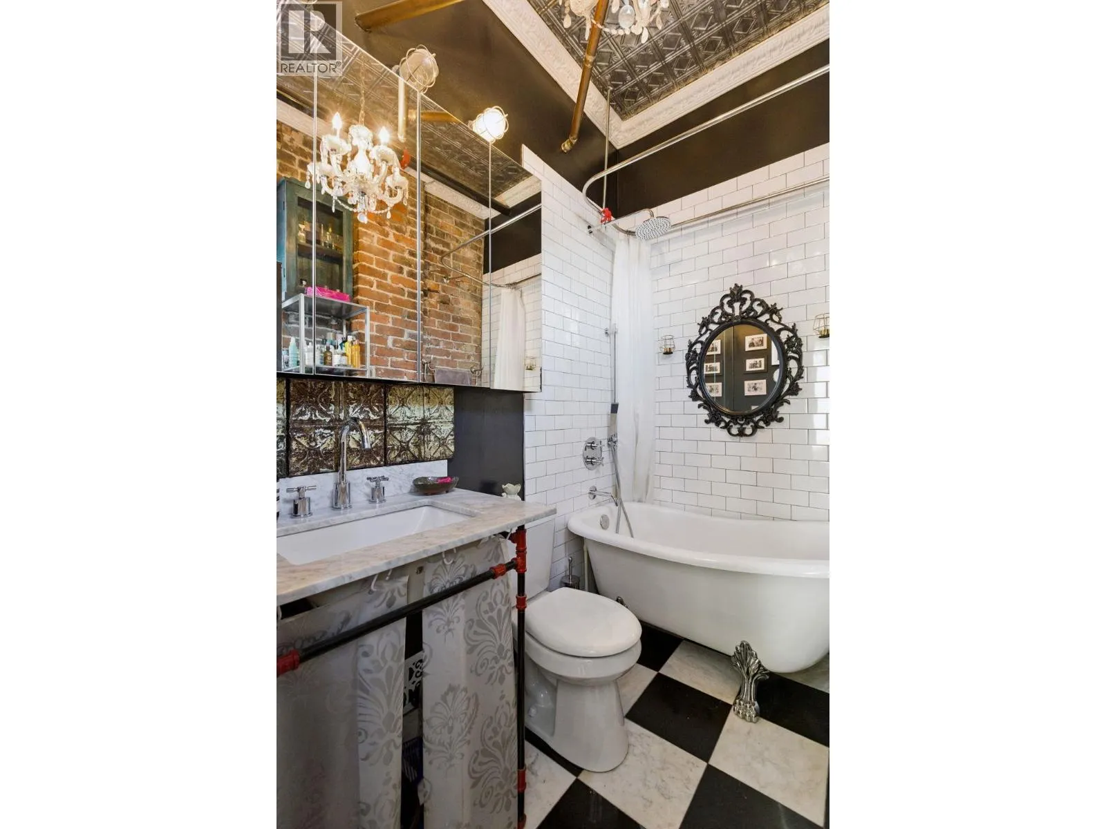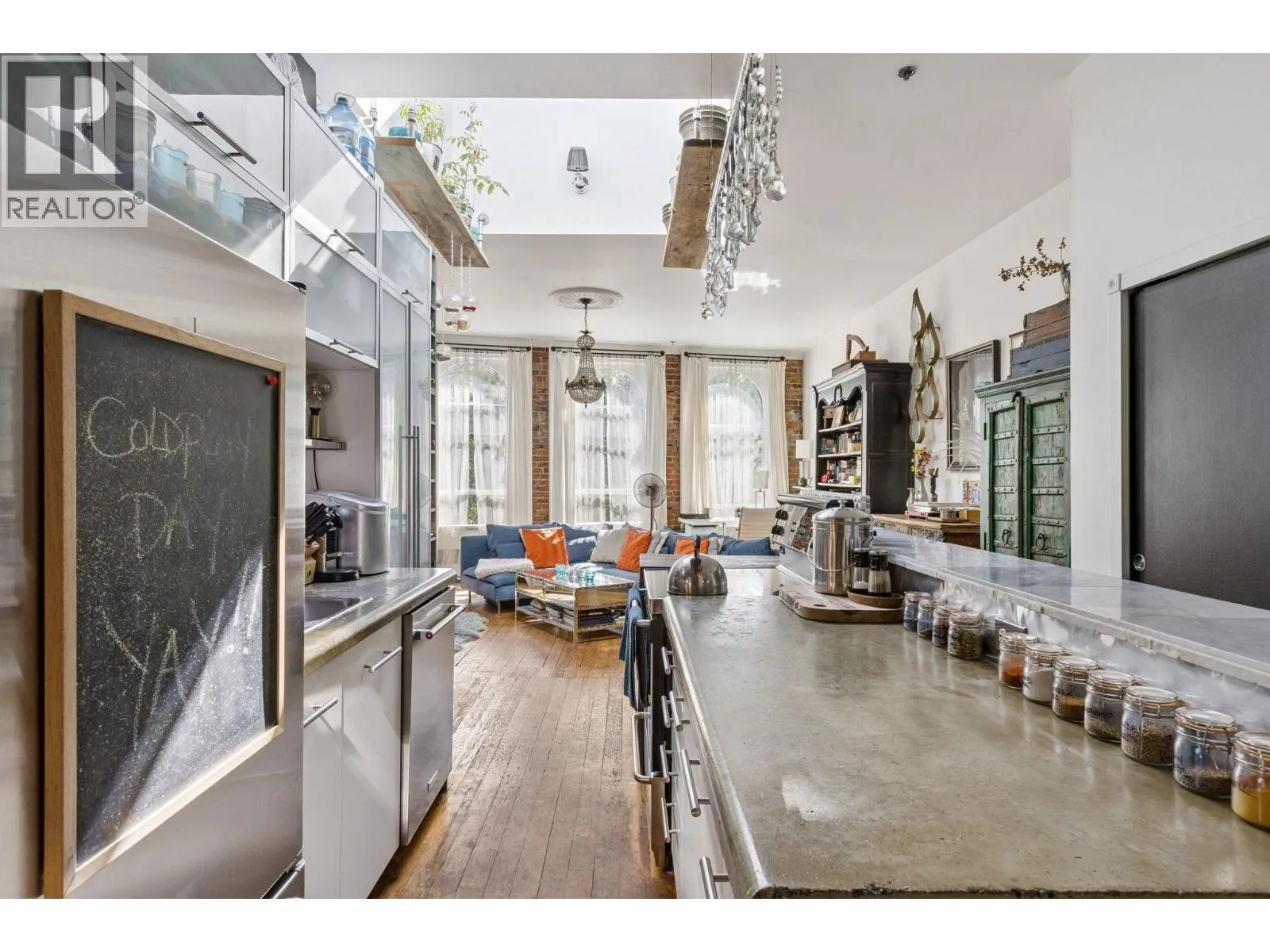 FASHIONABLE. HERITAGE. If Carrie Bradshaw and Oscar de la Renta had a Vancouver love child, it would be Bodega Studios. This pre-1900 heritage beauty, transformed into lofts in 1993, is bursting with character. Sitting on the prized north corner, it features two grand banks of windows, a bonus skylight, and exposed brick on three sides. Beyond the original hardwood, the home has been completely renovated with concrete countertops, updated appliances, a timeless clawfoot tub, and a welcoming fireplace. Enjoy generous storage, a vibrant community of neighbours, and pet and rental-friendly living. Parking is conveniently located one block away. (id:27476)