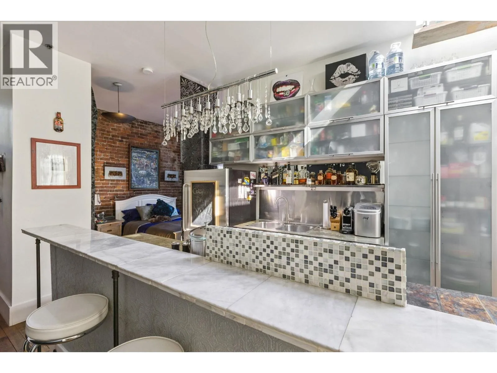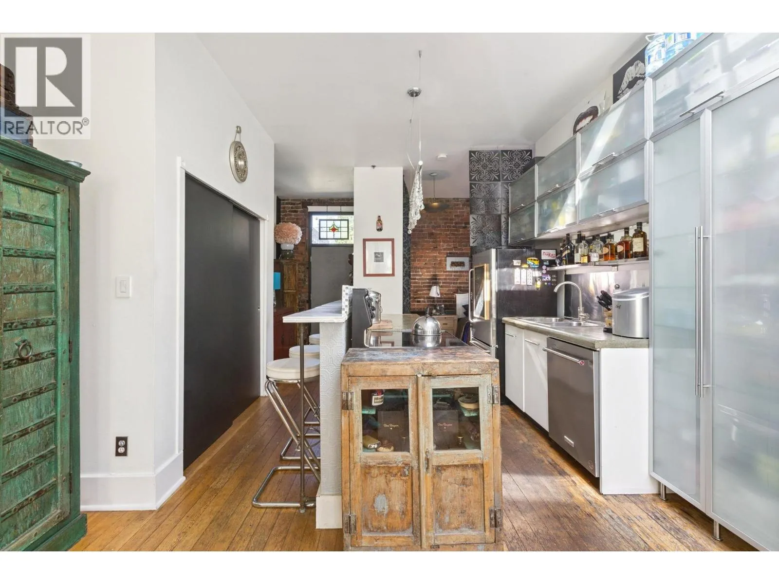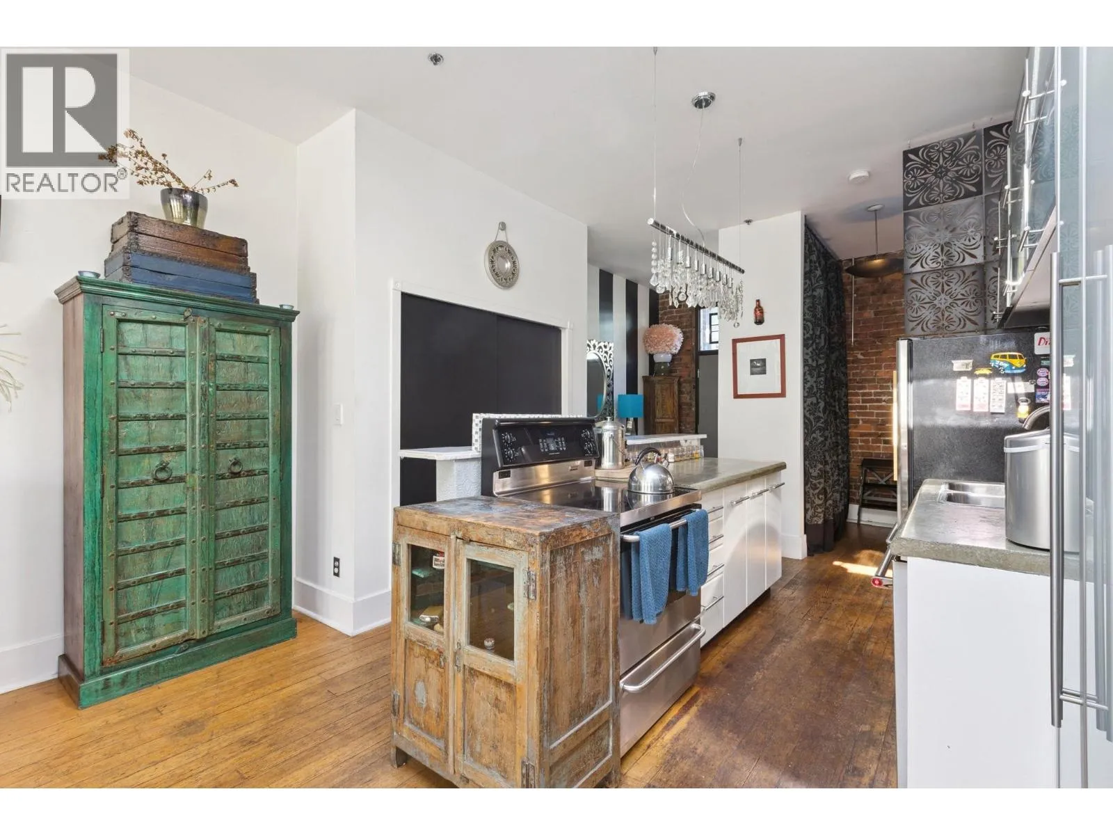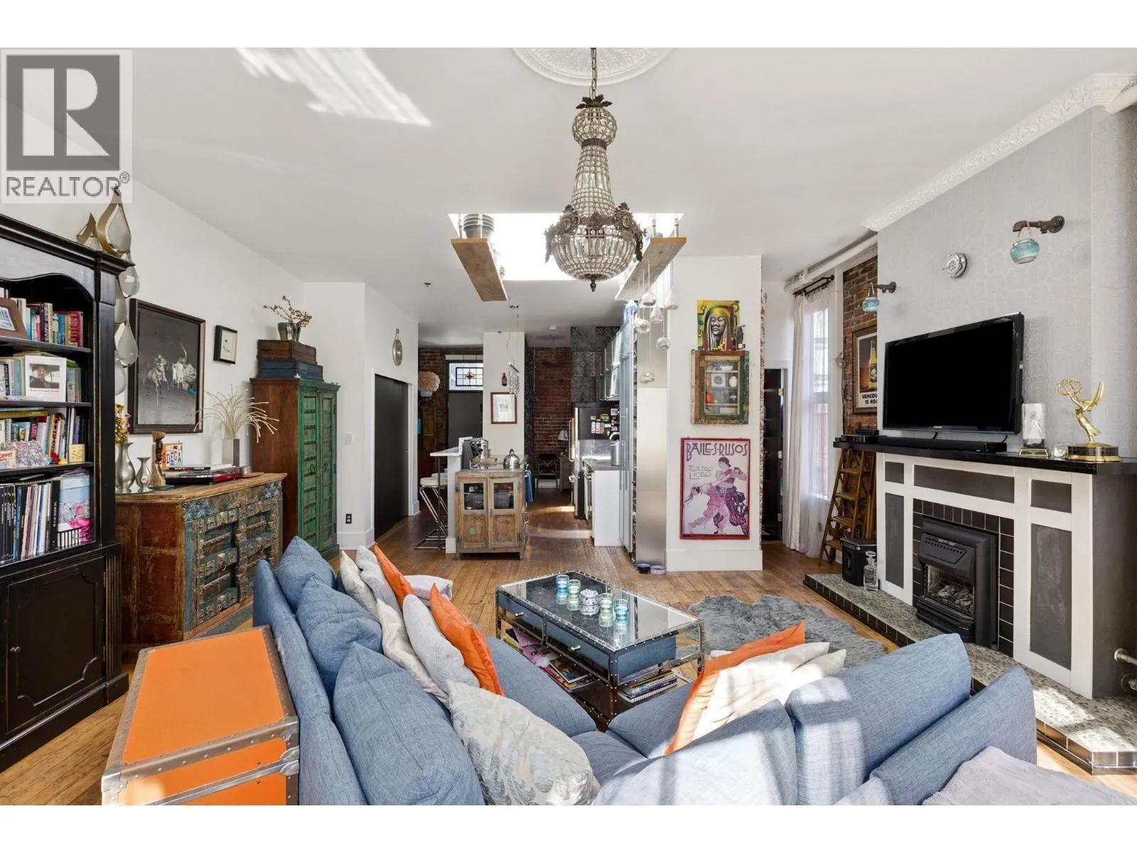 FASHIONABLE. HERITAGE. If Carrie Bradshaw and Oscar de la Renta had a Vancouver love child, it would be Bodega Studios. This pre-1900 heritage beauty, transformed into lofts in 1993, is bursting with character. Sitting on the prized north corner, it features two grand banks of windows, a bonus skylight, and exposed brick on three sides. Beyond the original hardwood, the home has been completely renovated with concrete countertops, updated appliances, a timeless clawfoot tub, and a welcoming fireplace. Enjoy generous storage, a vibrant community of neighbours, and pet and rental-friendly living. Parking is conveniently located one block away. (id:27476)