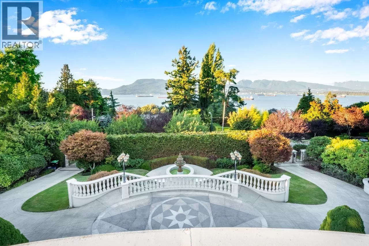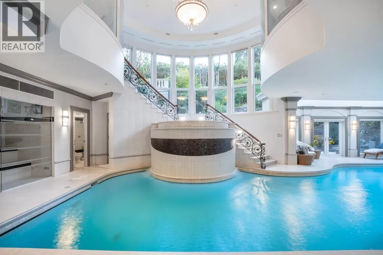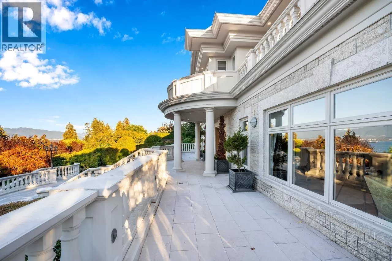 Discover unparalleled luxury in this prestigious Point Grey Estate, where sophistication meets coastal grandeur. Perched on the high side of Belmont Ave; This extraordinary 10,077 sqft. residence showcases 7 bedrooms and 11 bathrooms, masterfully designed with European architectural influences and modern elegance. A grand foyer with twin circular staircases and Italian marble sets a magnificent tone, while custom millwork and exceptional craftsmanship define every space. Resort-style amenities include an indoor pool, spa, theatre, and entertainment suites. Sweeping ocean vistas and mountain panoramas create an ever-changing backdrop through expansive windows and terraces. Nestled in an exclusive gated setting, this estate offers proximity to beaches, parks, top-rated schools, and more. (id:27476)