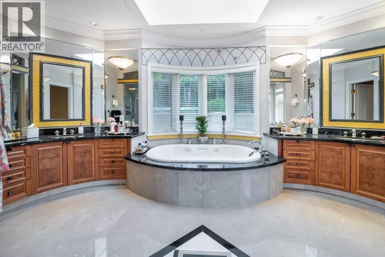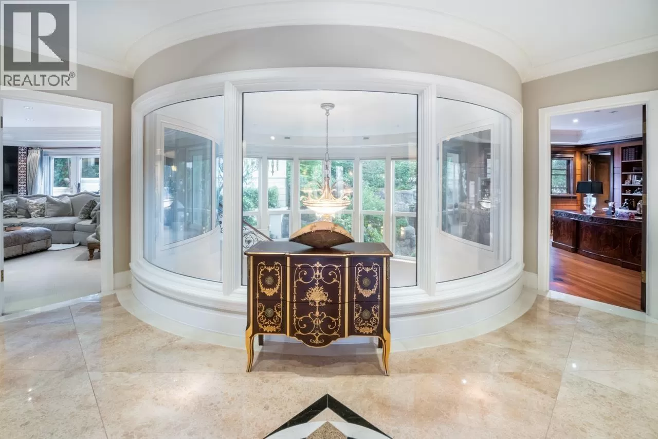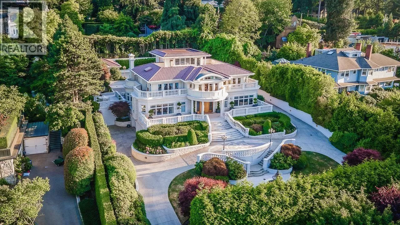 Discover unparalleled luxury in this prestigious Point Grey Estate, where sophistication meets coastal grandeur. Perched on the high side of Belmont Ave; This extraordinary 10,077 sqft. residence showcases 7 bedrooms and 11 bathrooms, masterfully designed with European architectural influences and modern elegance. A grand foyer with twin circular staircases and Italian marble sets a magnificent tone, while custom millwork and exceptional craftsmanship define every space. Resort-style amenities include an indoor pool, spa, theatre, and entertainment suites. Sweeping ocean vistas and mountain panoramas create an ever-changing backdrop through expansive windows and terraces. Nestled in an exclusive gated setting, this estate offers proximity to beaches, parks, top-rated schools, and more. (id:27476)