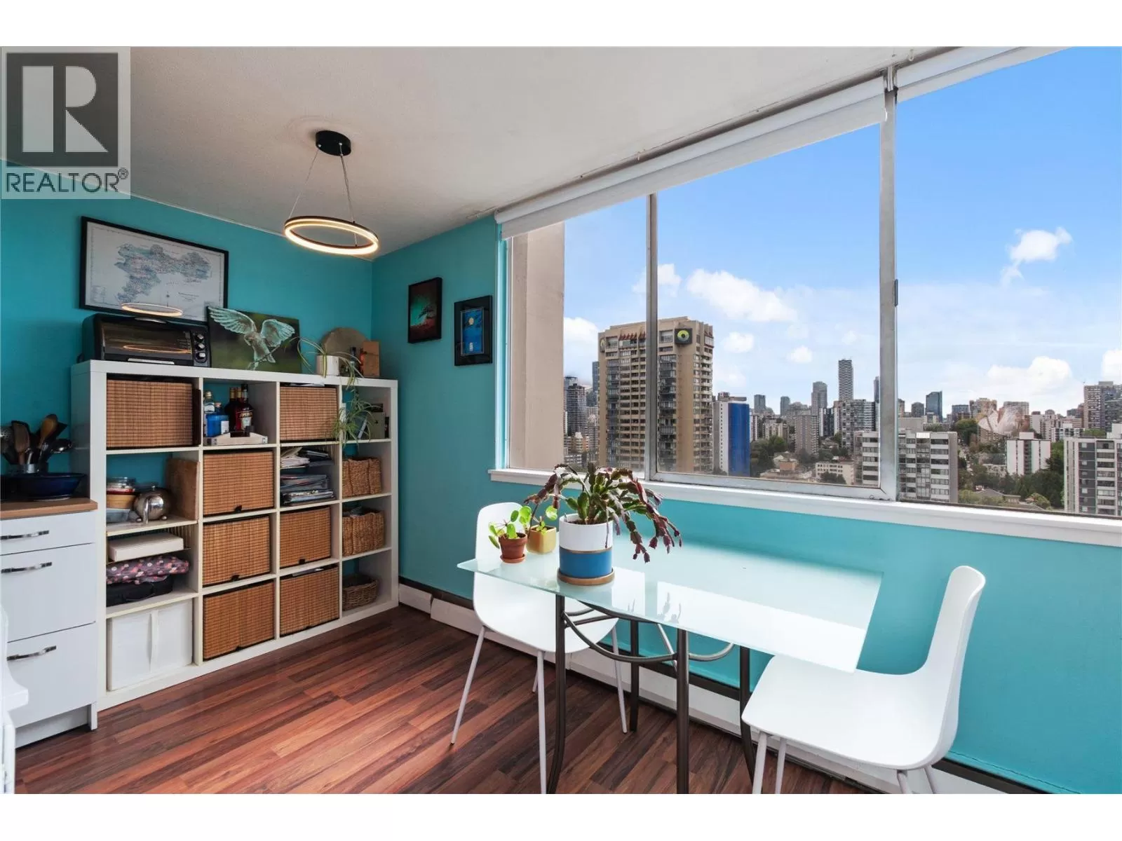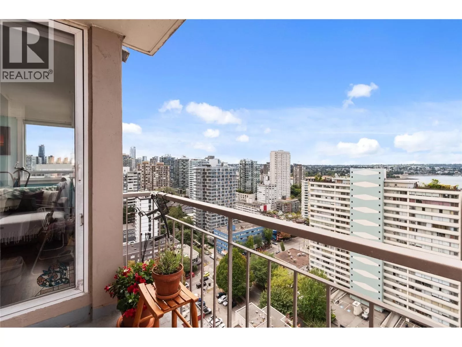 Elevated Living in Vancouver's West End-- 24th Floor Condo with unmatched Access & Views! Welcome to your urban sanctuary in the heart of Vancouver's vibrant West End! This beautifully maintained 1 bedroom condo sits high on the 24th floor, offering sweeping city views and unbeatable proximity to Stanley Park, English Bay, and the shops and cafes of Denman Street. Property Highlights are 604 sq.ft, located in a well managed leasehold building with lease that runs until Dec.31, 2073. Monthly Lease Pmts $812.23- No Property Taxes, includes 1 storage locker, Building amenities: gym, indoor pool, bike room, shared laundry, Stunning 27th floor viewing balcony with 360 degree panoramic views of City, No pets, rentals allowed, Tenanted and easy to show with 24 hours notice. Open House Sat,Nov.15, 2025 1-3 PM. (id:27476)