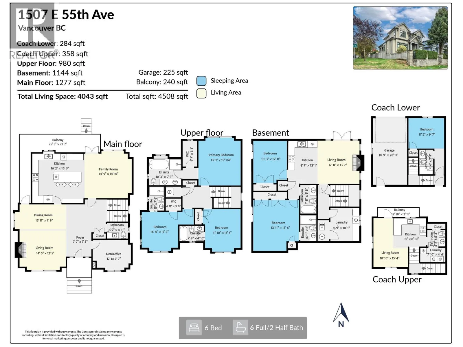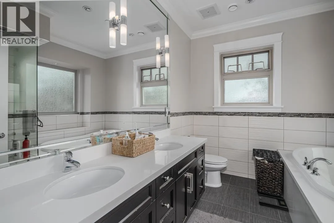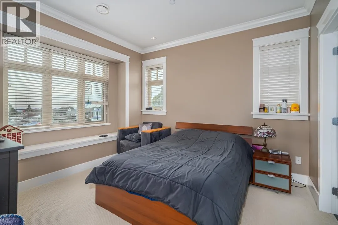This beautiful custom-built home in Fraserview is now on the market for the first time! Situated on a corner lot on the high side of the street, this south-facing property offers plenty of natural light across its three levels. The main floor features a gourmet kitchen with s/s appliances, a bright den, spacious living room, and an open concept family room. All three generous sized bedrooms upstairs come with their own ensuites. The basement features a legal suite with two bedrooms and two full bathrooms. Bonus - the property also offers a one bedroom, 1.5 bathroom laneway house, single car garage, and an additional gated parking pad. Located in the Sir Sandford Fleming Elementary and David Thompson Secondary school catchment, this home is perfect for families. Call to book your showing! (id:27476)