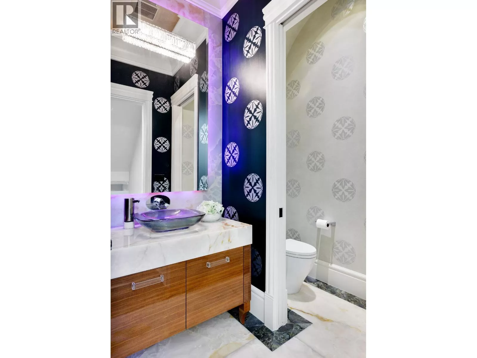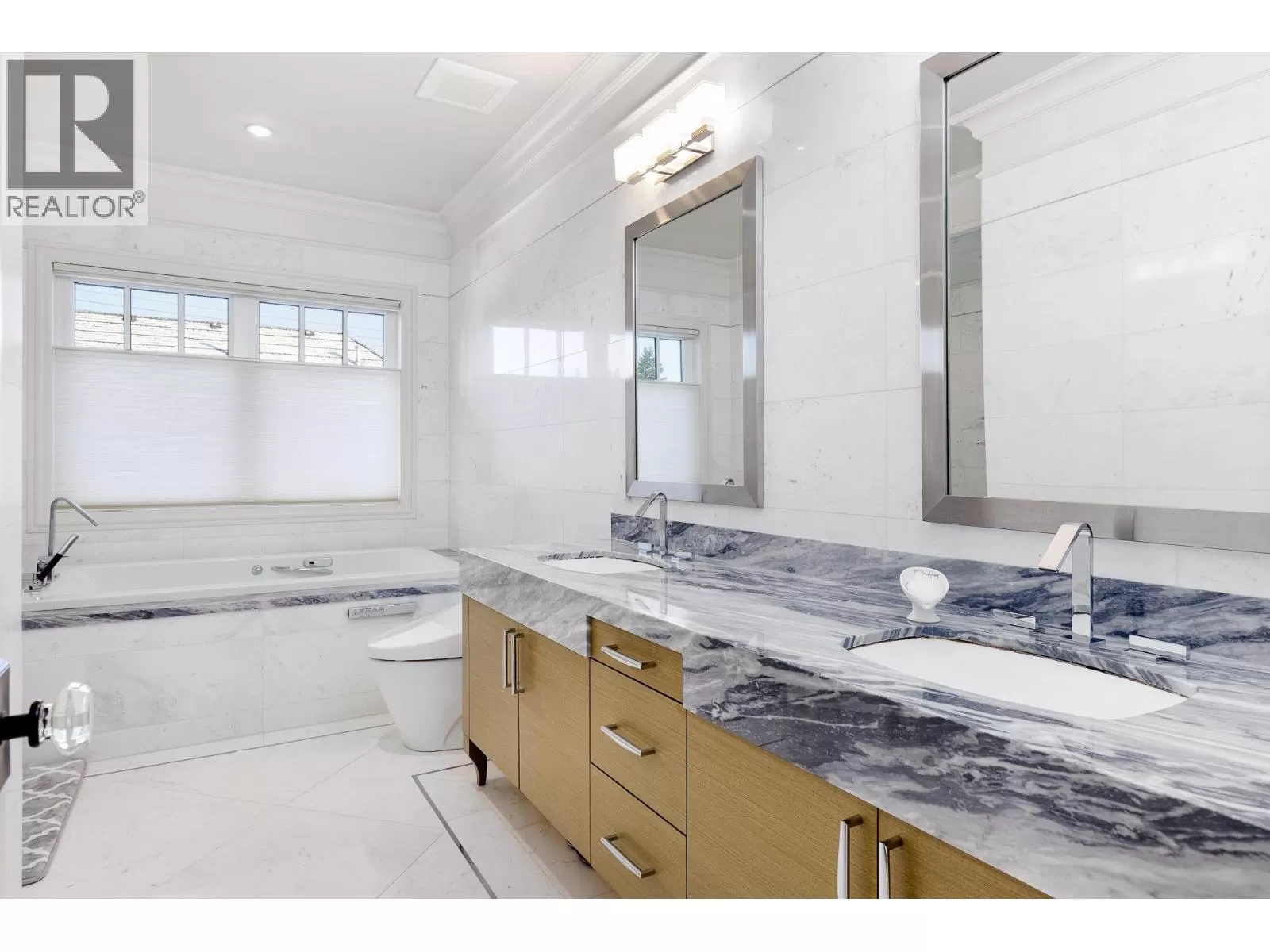 Most desirable South Granville, designed by noted architect Mimi,custom-built throughout, from beautiful hardwood & Marble floors,decorative molding carpentry walls, 11ft ceilings and Euroline windows, to the beautiful Japanese garden. Great layout, spacious floorplan.built-in bookcase office. Open living,dinning room,Marble stone fireplace. Luxury Kitchen has Piano Painted cabinet, Mielle appliances, Agate stone countertop and backsplash. Family room equipped with hand-painted ceiling and sliding door to outside deck. Second floor has 4 en-suited bedrooms. MasterBed has handpainted ceiling,sliding door to balcony. Bathroom features marble stone,double vanity, steam shower. Mediaroom,wine room and sauna completes the basement. Walk to shops, easy drive to downtown,Richmond. A Must See. (id:27476)