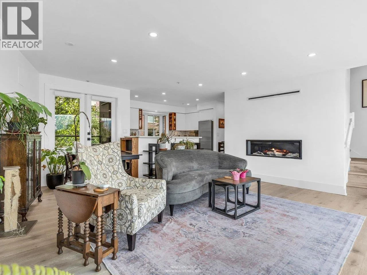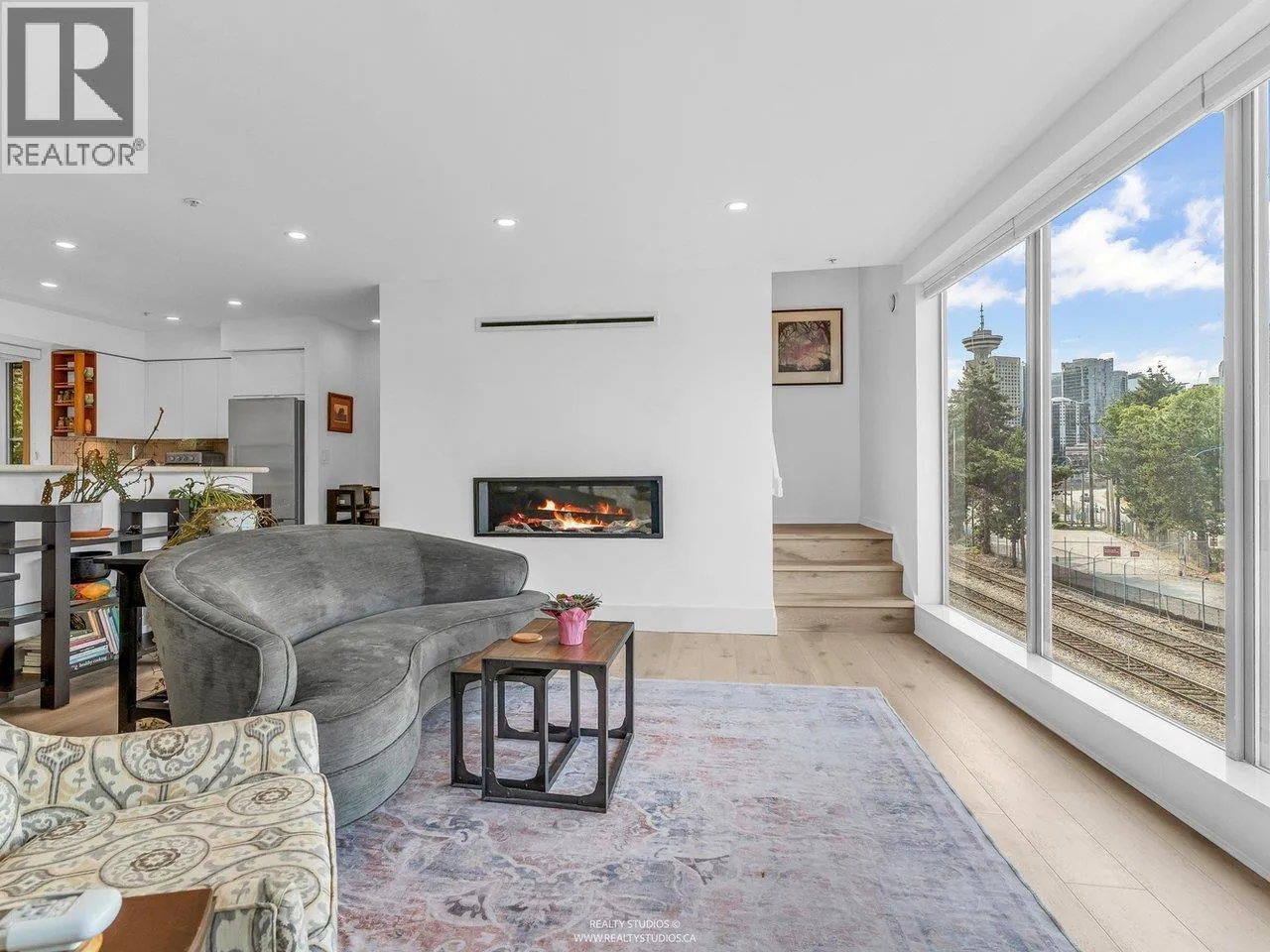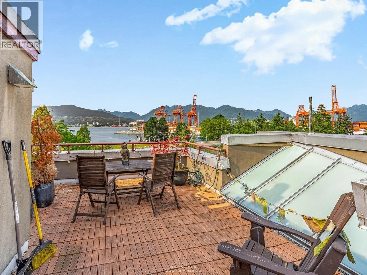 Incredible ocean, mountain, N Vancouver views from this San Francisco style, renovated, 2 bed, 2 bath, 5 level + 295 square ft rooftop deck townhouse on trendy Alexander St in Gastown! Private garage at the sidewalk, basement for media room/gym/3rd bedroom, California Closet Murphy Bed included. Rooftop deck + 2 balconies totalling 616 square ft of outdoor space. Bring the outdoors in with the incredible views from every level! Primary bedroom with dressing room & chandelier & the coolest shower ever, offering a glass wall overlooking the ocean & mountains! Beautiful beach sand colour hardwood floors, super cool tile floors in bathrooms, Jenn-Air cooktop & oven, gas fireplace, flex area for office/yoga/lounge, skylight. Radiant heated floors + heat pump/air-con. Enjoy the fabulous Gastown patios & eateries steps away. Book your private showing today! Open House Sun Oct 26, 2-4pm. There will be filming so traffic will be blocked, but you will be able to walk to the home. (id:27476)
