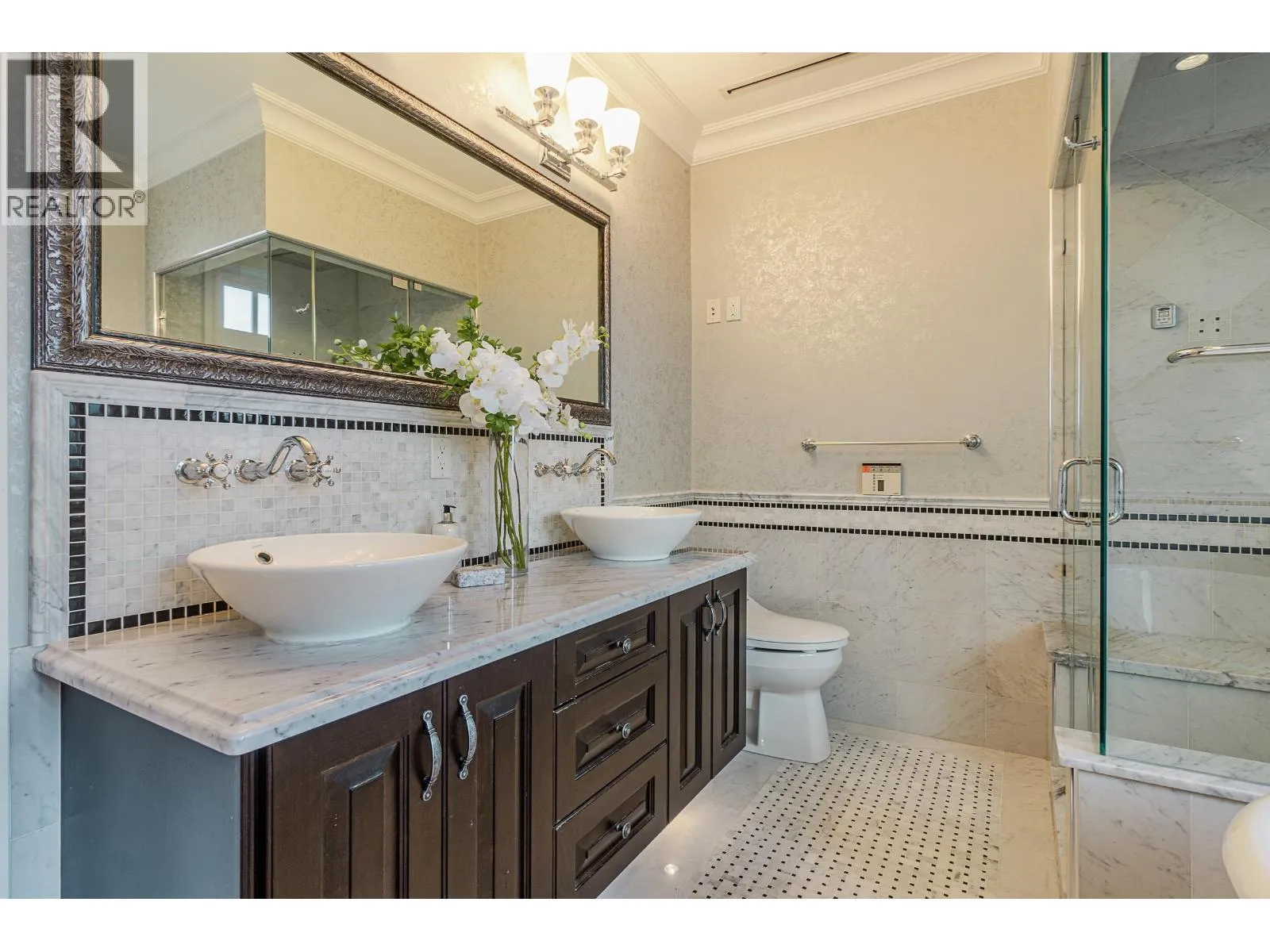 Welcome to this meticulously crafted classic & luxury home, nestled on a quiet inner street in Vancouver´s prestigious South Granville neighborhood. Main floor features an open-concept living and dining area, a private office, top appliances equipped gourmet kitchen, a well sized wok kitchen, and a cozy breakfast nook. There are four bedrooms and three bathrooms upstairs. Master bedroom includes a large walk-in closet and a spa-like ensuite. Basement offers two additional bedrooms and a generous entertainment space - a home theater, a bar, and a wine cellar. School catchment: Dr. R.E. McKechnie Elementary & Magee Secondary. Easy access to UBC, Richmond, schools, shopping and restaurants. A must see! (id:27476)