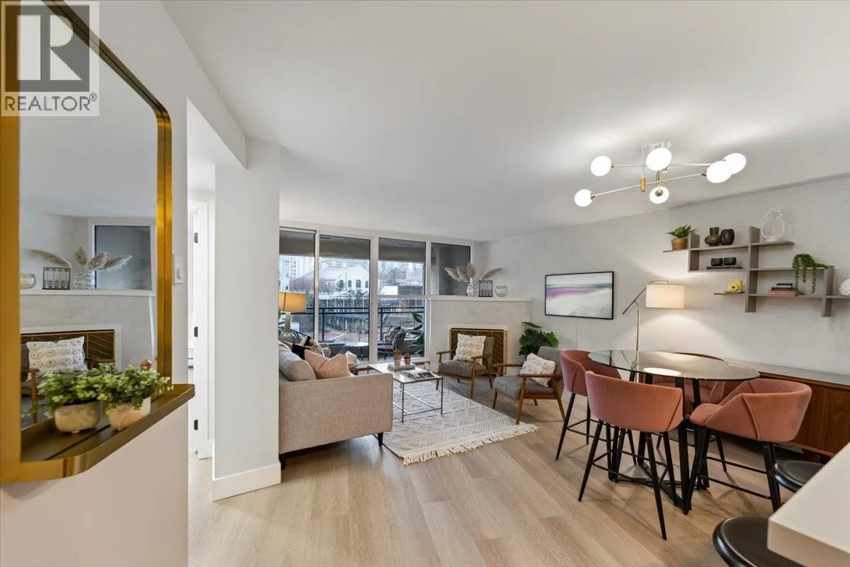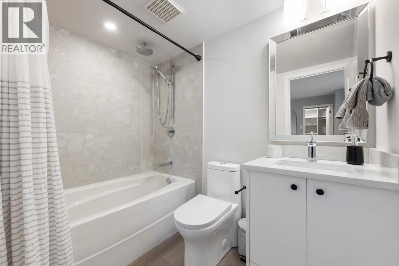 TOP FLOOR, CORNER 2 bed/2 full bath with huge balcony and gorgeous full renovation by a professional designer! Ideally located in the heart of downtown, just steps to skytrain, shopping and entertainment. The gorgeous custom open kitchen features integrated appliances, a breakfast bar, and an amazing custom pantry w/built-in beverage fridge. Modern updated spa-like bathrooms, beautiful flooring, stylish hardware & lighting & custom closets. Plus cozy gas fireplace and spacious outdoor covered balcony to BBQ & enjoy the open view. This well maintained complex is just completing a new roof and upgraded plumbing, already paid for! Great amenities including pool, hot tub, gym & games room. Complete with secured parking plus visitor parking. Pet & rental friendly. OPEN HOUSE SAT. NOV 15TH 1-3. (id:27476)