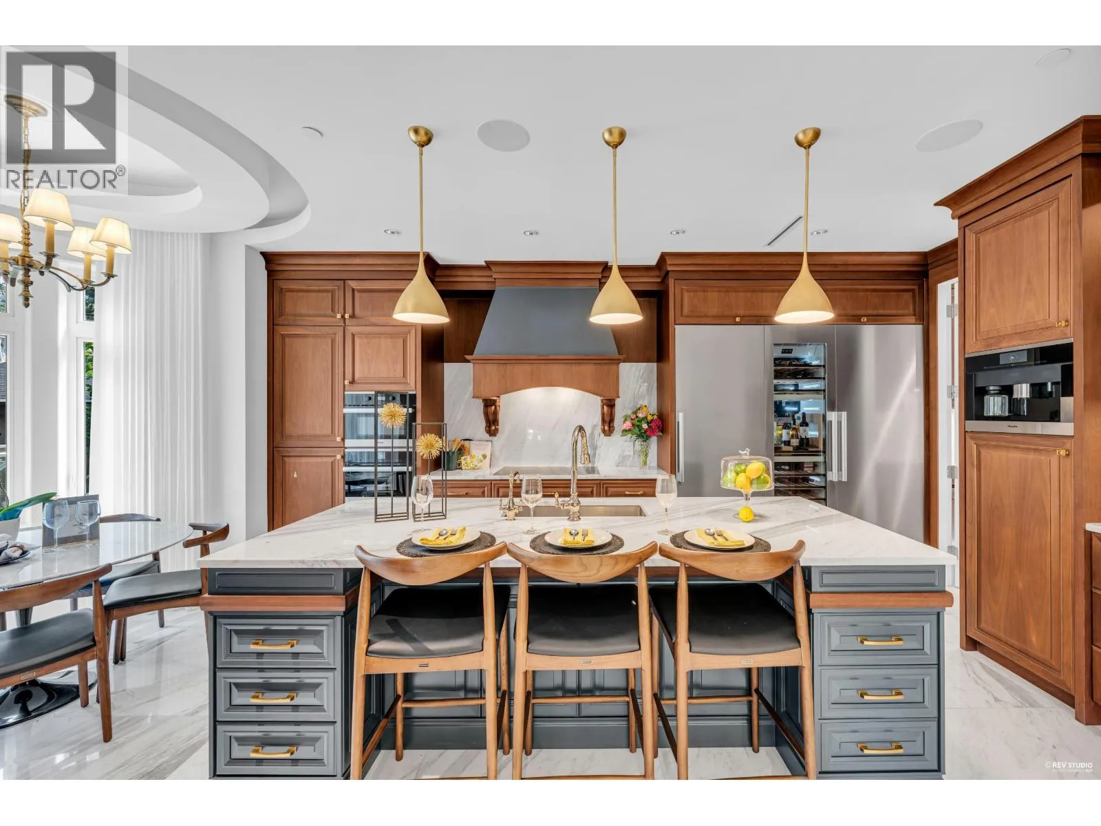 luxurious new home sitting on a beautiful corner lot over 8200 sft in desirable Quilchena area! Designed by the renowned Formwerks Architectural. Nearly 4800 sft floor area, 5 bedrooms, Top quality materials, excellent finishing, exquisite wooden windows, hard wood flooring, gourmet kit with top of the line appls, wet bar, gym room, fully equipped home theatre, smart home sys, Radiant heat, Air Conditioning, HRV, wonderful landscaping, Close to the top schools: Crofton House, St.George's & York House private schools, Point Grey Secondary, UBC & Kerrisdale shopping. (id:27476)
