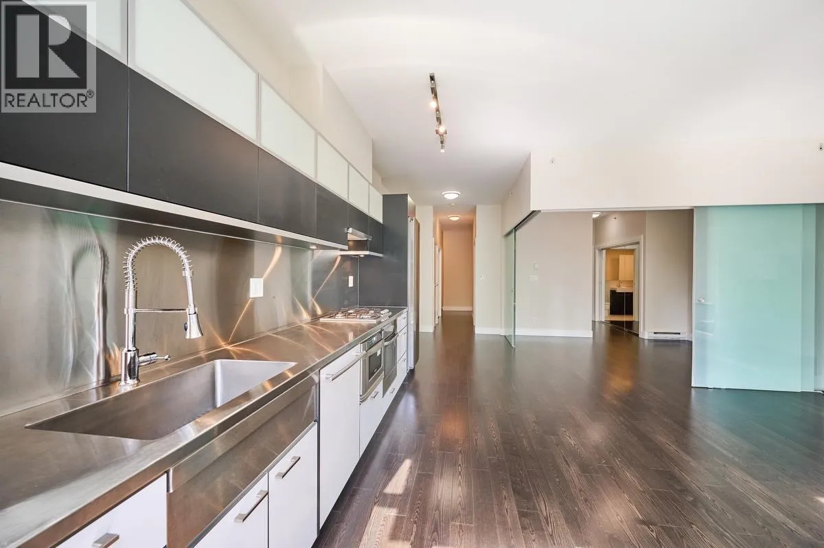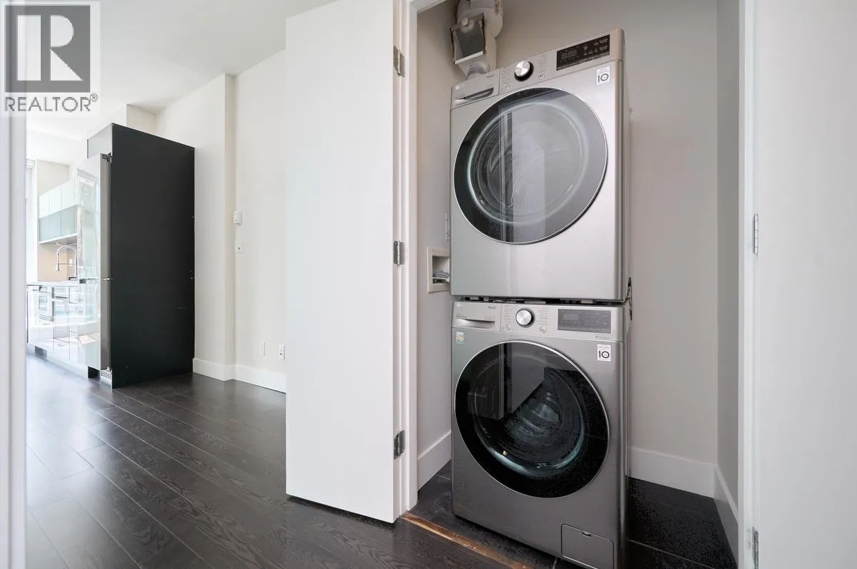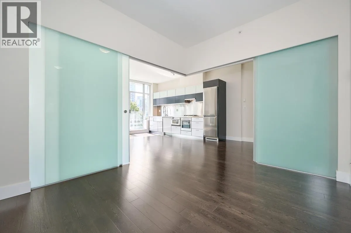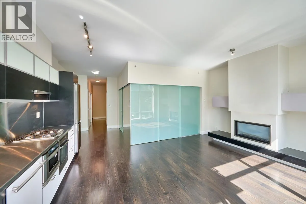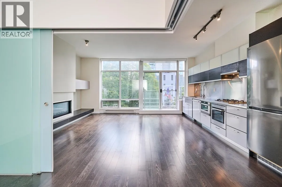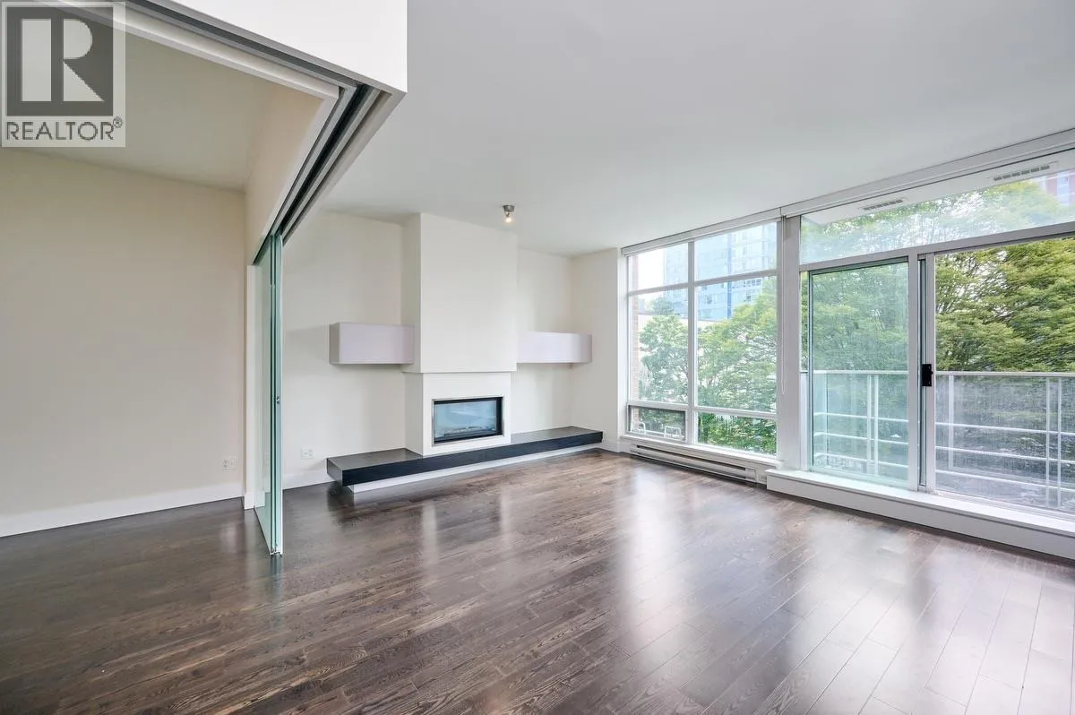 One of the Private Collection suits in the Award Winning Dolce at Symphony Place. This large, exceptionally well laid out one bedroom suite has high ceilings, H/W floors, gas fireplace, European Kitchen with new LG refrigerator, AEG 25" oven and gas cooktop, Jenn-air D/W and Sharp Microwave. Hotel like amenities include fitness centre, hot tub, steam room, lounge, roof garden terrace, children's play area. This sophisticated residence is right in the heart of Vancouver's cultural and entertainment district and only steps away to everything downtown has to offer. One parking with EV Charger and one storage locker included. (id:27476)