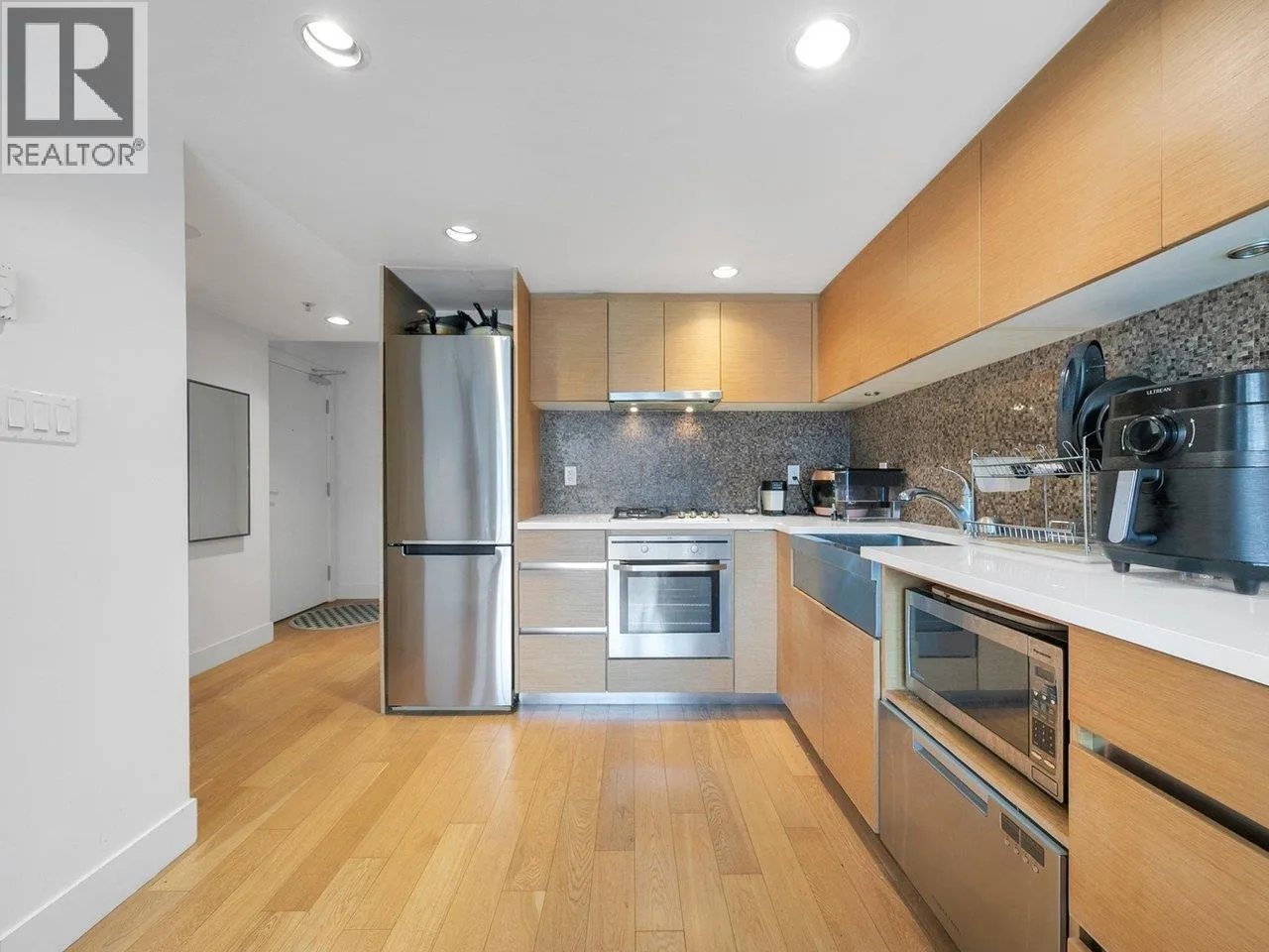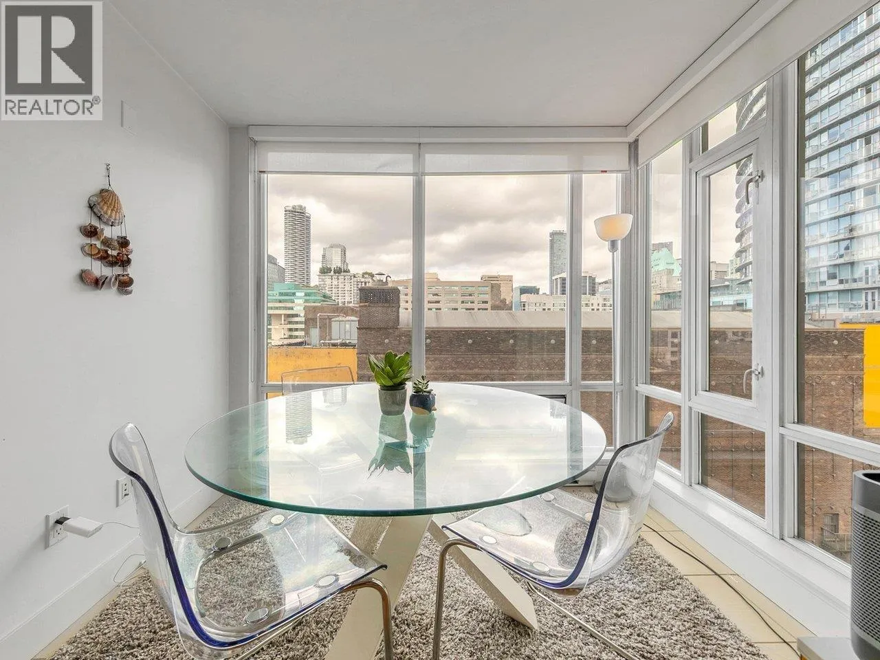 Luxury Georgia award winning concrete building by Solterra. NW facing with open city views, bright and spacious. Great layout with good sized bedroom. Den is big enough as occasion guest room. Beautiful solarium is great for flex/work space. Modern furnishing, wood cabinets, trendy back splash, gas cooktop, engineered wood floors, stainless steel appliances, in suite laundry. Secured building with concierge in the spacious lobby. Gym, lounge, playground etc. Sought after location, 10/10 walking score. Comes with 1 parking & locker. (id:27476)