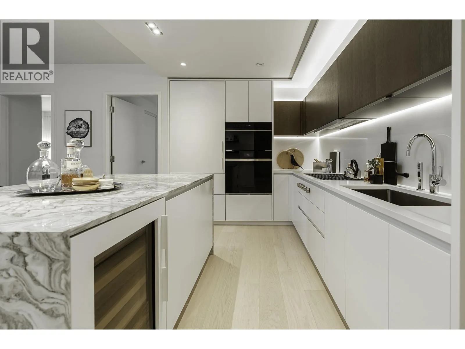 This quiet, NE facing corner 2 bed+den+flex suite in Legacy on Dunbar features elegant finishings of exceptional quality. Spacious rooms throughout make furniture design and displaying artwork easy. Bright den extends from primary bedroom for perfect office or hobby room. Balcony features heated gas fireplace. Interiors crafted by Trepp Design include design forward kitchen highlighted by Brazilian marble island, motorized Italian cabinetry with LED lighting, elegant in-drawer cutlery organization system, large format Sub-Zero+ Wolf appliances. Ensuite features floating halo-lit vanity, frameless glass limestone shower stone slab feature wall, Dornbracht faucets. Heating + cooling, concierge, rooftop terrace+ lounge, gym+ sauna. 2 EV parking stalls+storage included. (id:27476)
