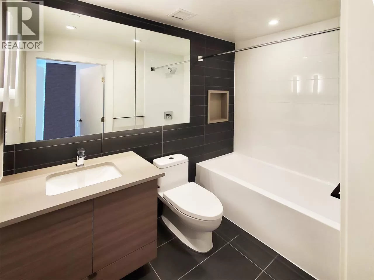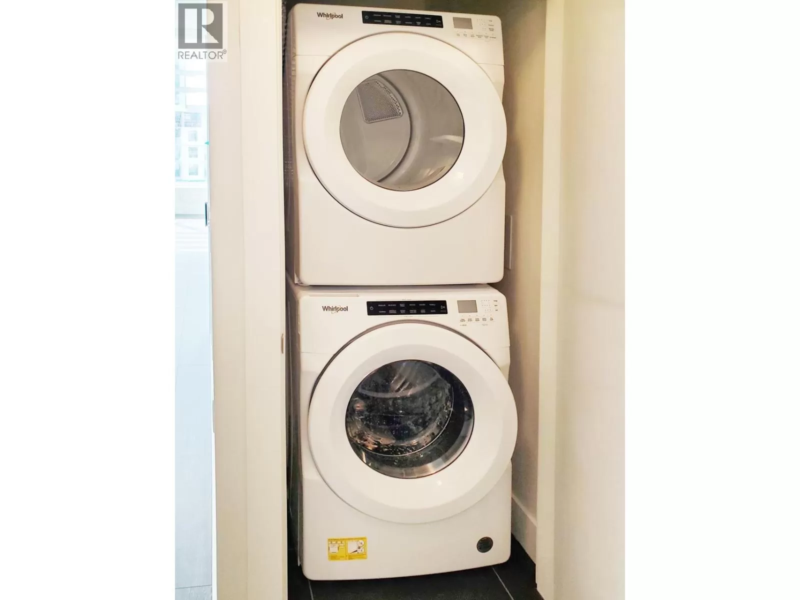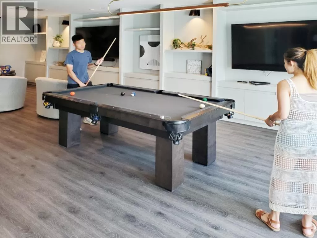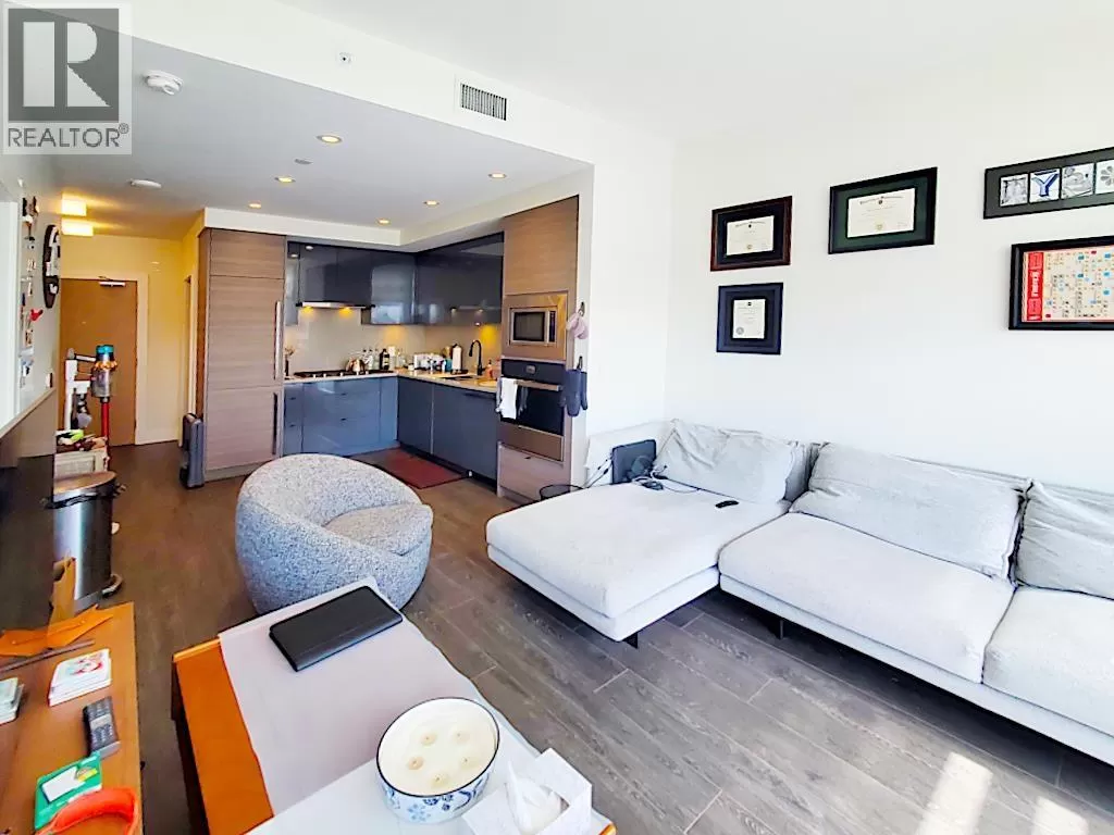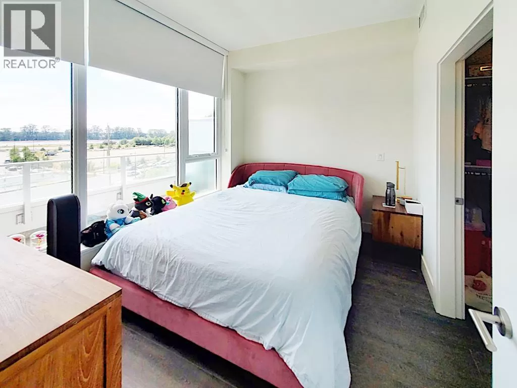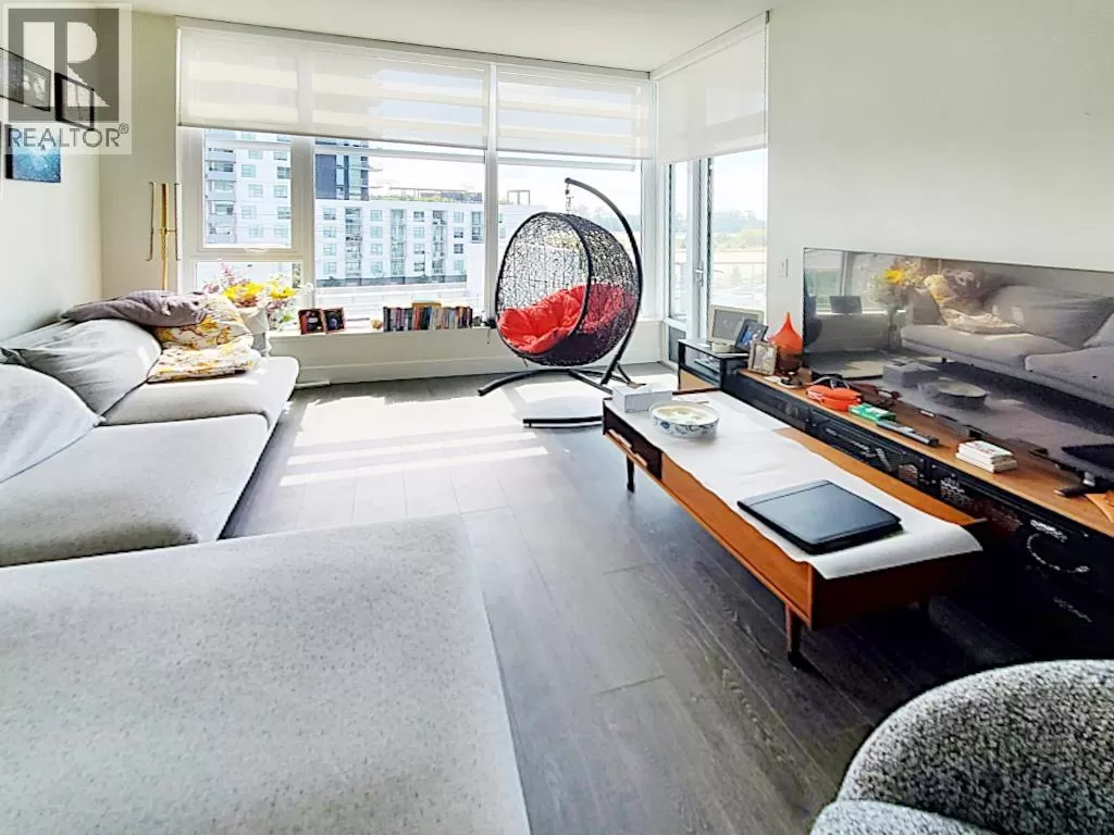 LIKE-NEW, SPACIOUS & SOUTH-FACING-Welcome to one of the largest 1-bedroom + den podium condos in River District. Located on the 5th floor of MODE, this sunny, bright, open-concept gem shines with a gourmet kitchen featuring high-end appliances, quartz counters, and soft-close cabinetry, rich laminate flooring throughout and a huge walk-in closet in the bedroom, heat-pump for efficient A/C & heat, and heated bathroom floor. Enjoy sweeping views of the Fraser River from your private balcony and from living room, kitchen and bedroom. Steps from eateries, shops, riverfront trails, and transit. Unbeatable amenities: gym, hot tub, bike storage, pet wash, workshop, and more. Includes a locker and an extra-wide accessible parking stall. Move-in ready. This won´t last long: book your showing today! (id:27476)