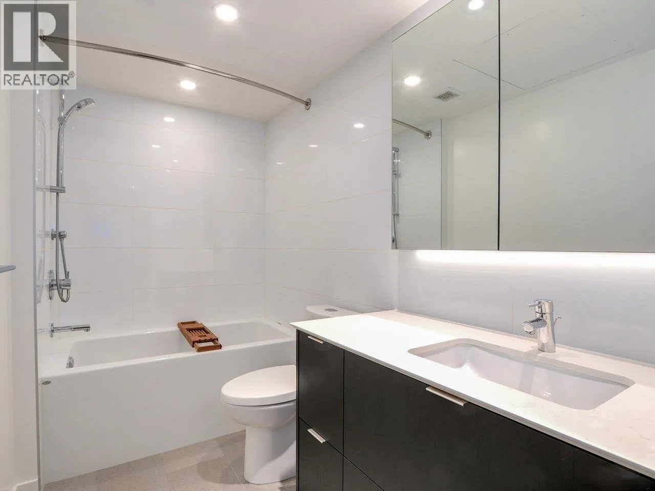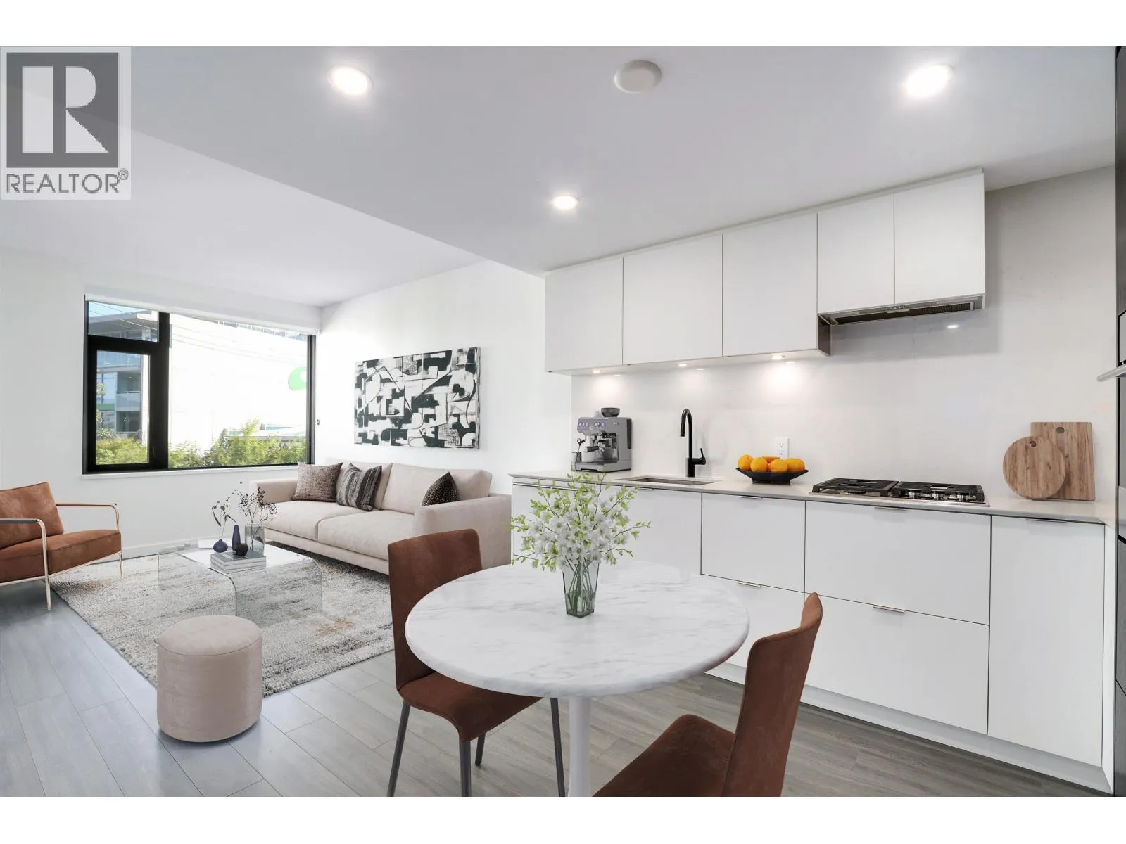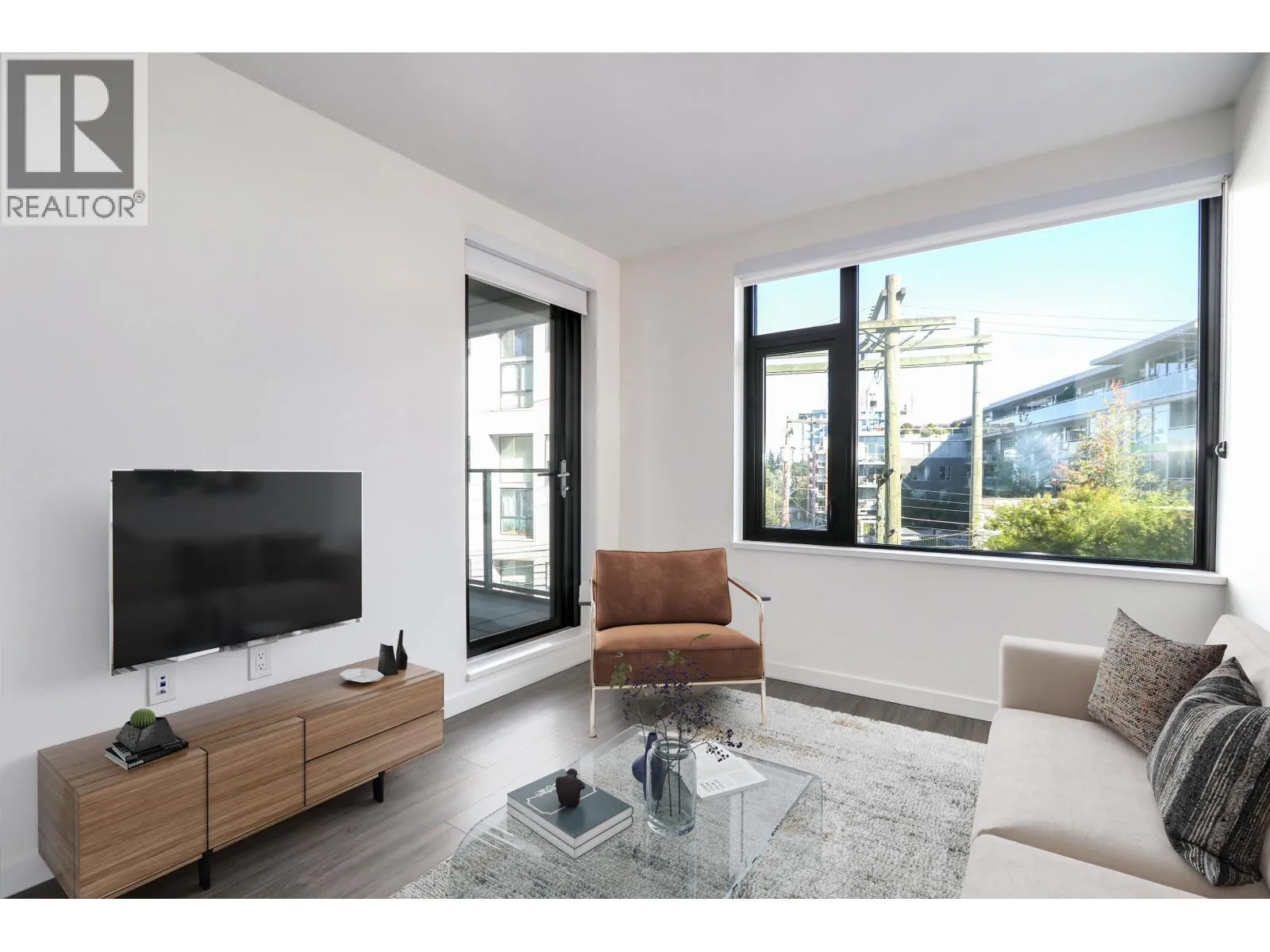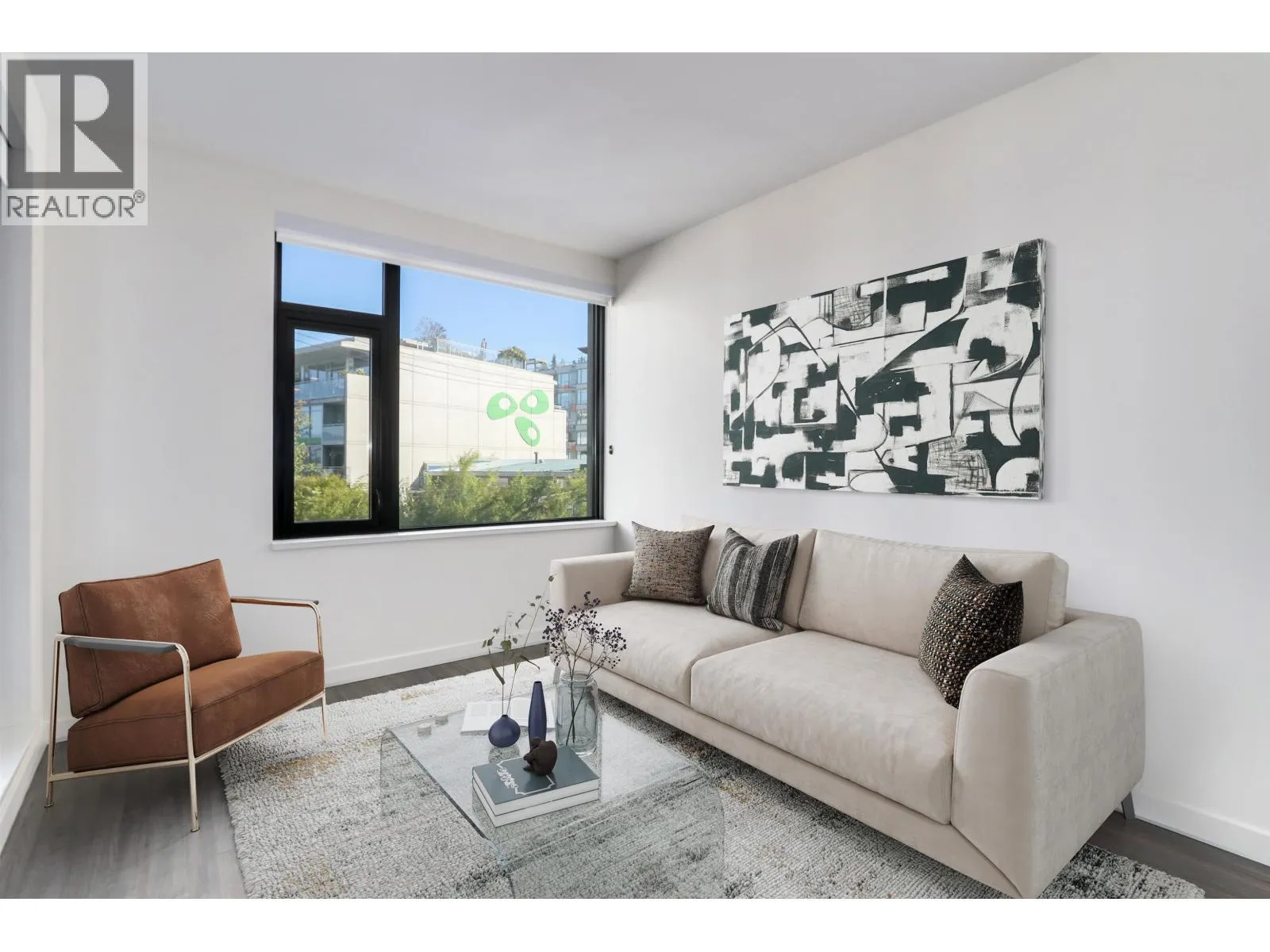 Beautiful 1 bedroom in the boutique concrete building "Elenore on Fifth" located at 5th and Main St. Offering refined finishings such as a gourmet kitchen with quart counters & back-splash, wide plank flooring throughout, integrated fridge, Wolf gas cooktop/oven/micro, Fisher Paykel d/w, LG w/d, heated floors (bath), A/C, roller blinds, in-suite storage and much more. Located minutes from Science World Skytrain station, and Broadway extension ( scheduled to open 2027). Access to the Main street corridor is at your doorstep conveniently providing all of your essential daily needs. Minutes from the vibrant Olympic Village and Seawall. Welcome to your future home. 1 parking stall and 1 bike pedestal included.This unit is like new!Open Sat, Sept 13 2-4pm. (id:27476)