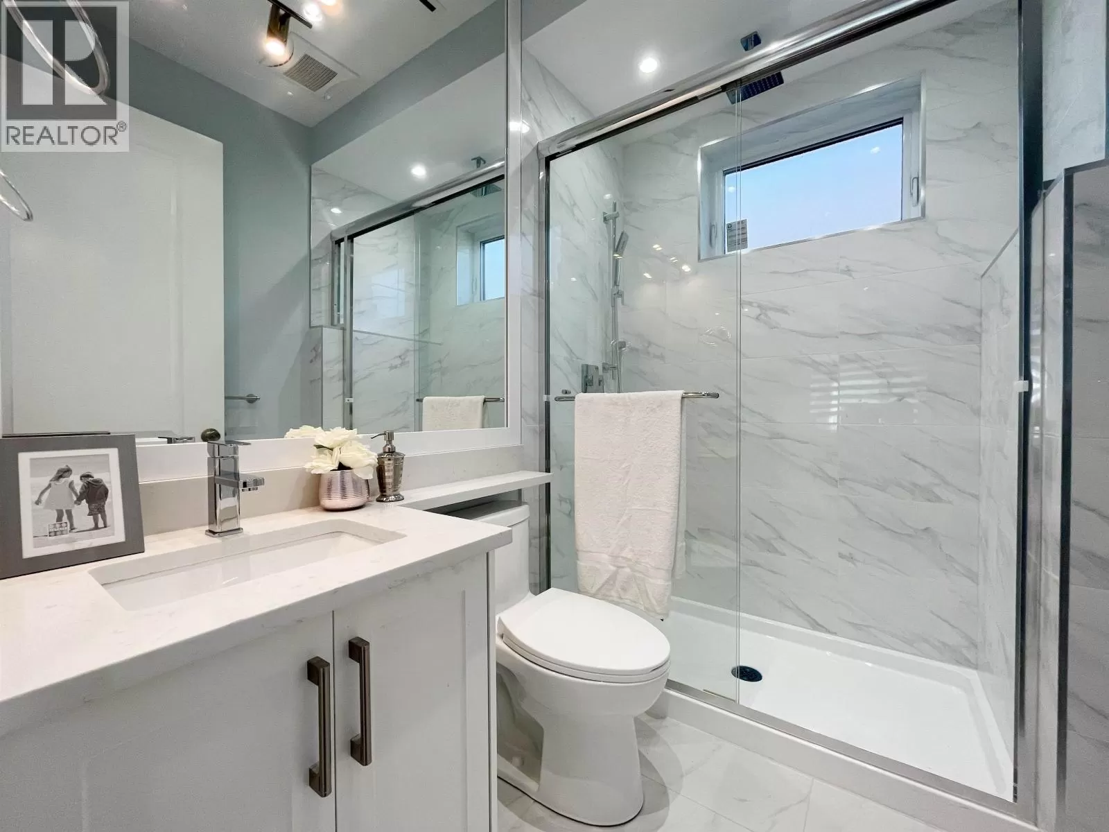Primary Renfrew Height, South facing flat lot on treelined quiet street, quality craftsmanship by experienced expert. Beautiful North-shore mountain and city view. Practical and Open layout for the main floor, large Den can also be a bedroom for senior with a Full bath. Upper has 3 large bedrooms and 2 baths. Large size master bedroom that can enjoy amazing view of city downtown and mountain. Basement has one legal 2 bedroom suite with 2 full baths (option to have a separate studio). Laneway has large bedroom with ensuite full bath upstairs and a room and full bath down. One of the Best Central location in East Van, walk to Vancouver Christian, Gladstone Secondary, skytrain station, superstore and all the other shops and restaurants.open house: Sunday November 16th, 2-4pm. (id:27476)