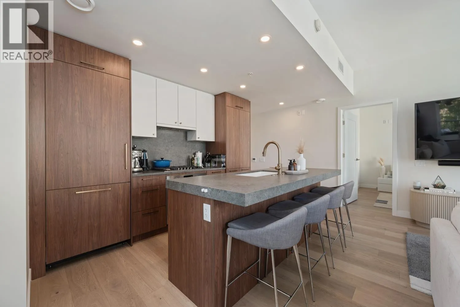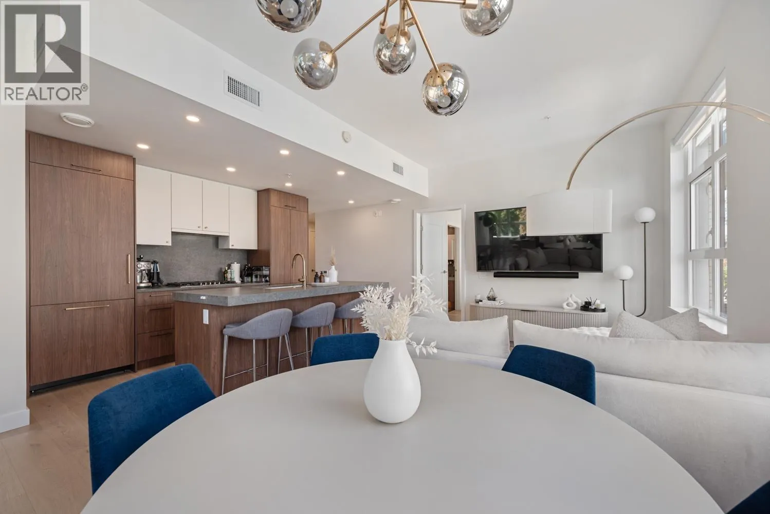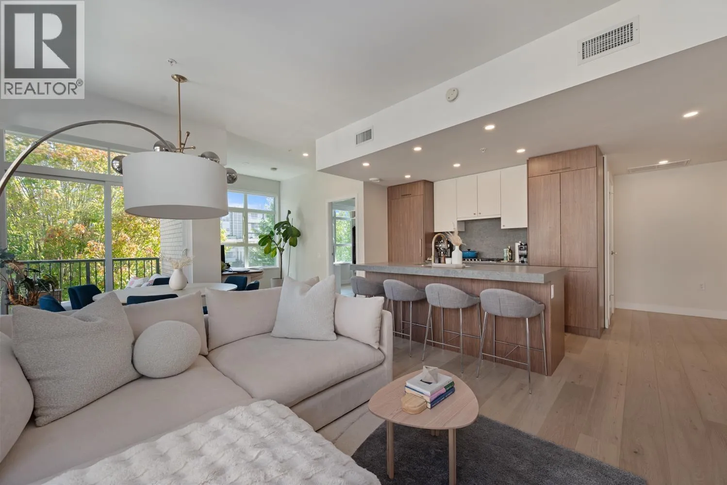 Welcome to Autograph, this bright and spacious two-bedroom, two-bathroom home offers 1000 square feet of thoughtfully designed living space in one of Vancouver´s most desirable neighbourhoods. The open-concept living and dining area is filled with natural light, complemented by a modern kitchen featuring premium Bosch appliances, quartz countertops, and sleek cabinetry. The primary bedroom includes a private ensuite bath and ample closet space, while the second bedroom is generously sized for versatility. Both bathrooms are appointed with contemporary fixtures, and the home also provides in-suite laundry for added convenience. A private balcony extends the living area outdoors, perfect for morning coffee or evening relaxation. (id:27476)
