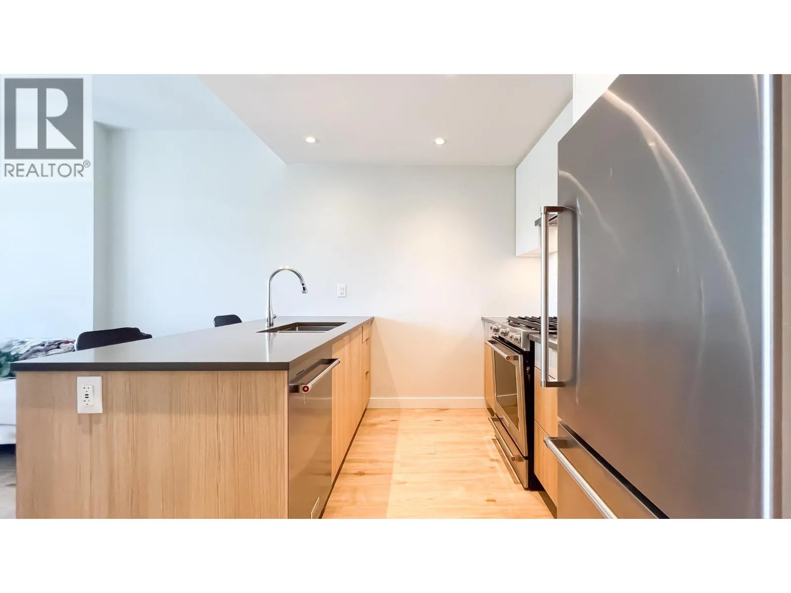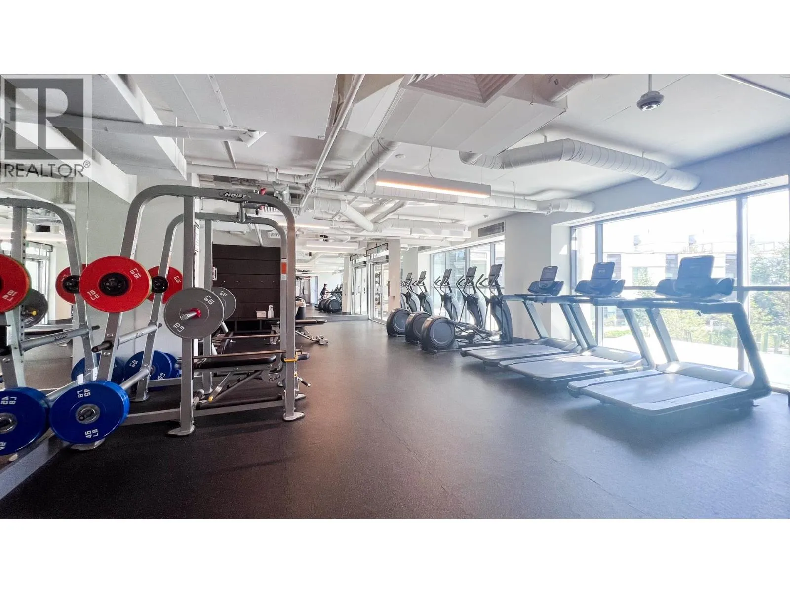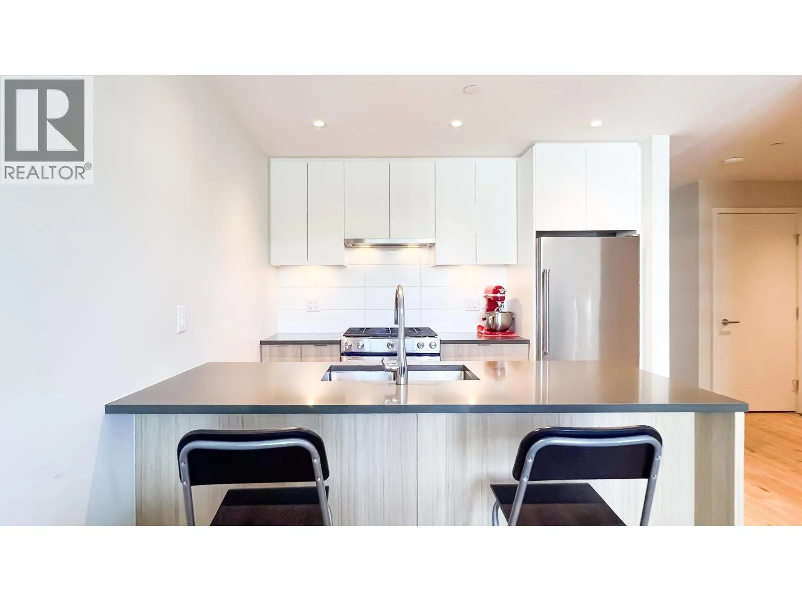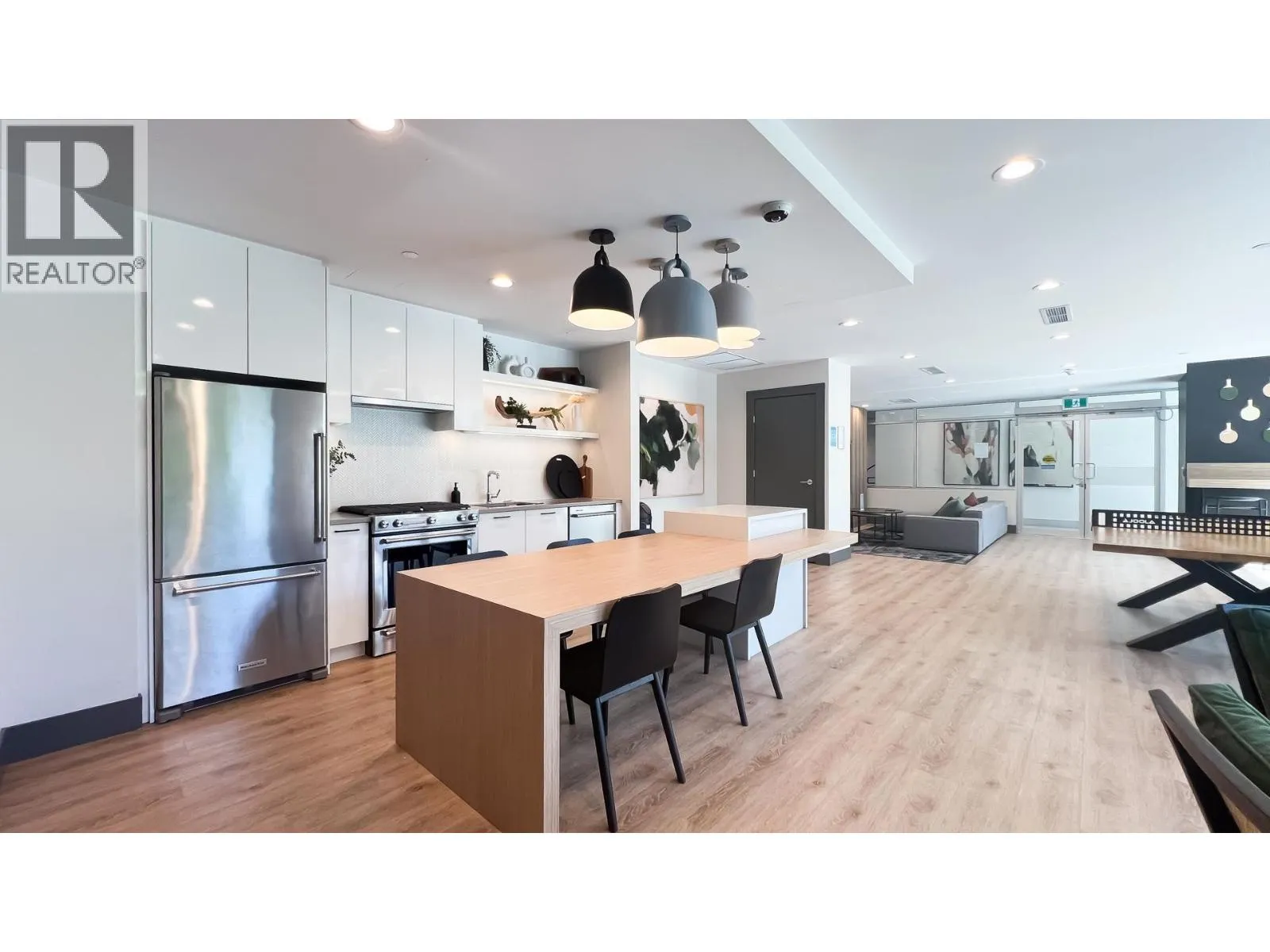 PARADIGM at River District by WesGroup! Just steps to the scenic Riverwalk, this North-facing 1 Bed + Den residence showcases expansive floor-to-ceiling windows, filling the home with natural light. The thoughtfully designed open-concept living area flows seamlessly into a sleek, modern kitchen and a generous covered balcony, perfect for year-round enjoyment. Premium features include KitchenAid stainless steel appliances, gas range, built-in oven, dishwasher, elegant quartz countertops, and a high-efficiency heat pump providing both cooling and heating. The home also comes with one secure parking stall and a dedicated storage locker. Residents enjoy exceptional amenities, including a fitness centre, yoga/TRX studio with boxing area, rooftop garden, outdoor BBQ area, and a party lounge. (id:27476)