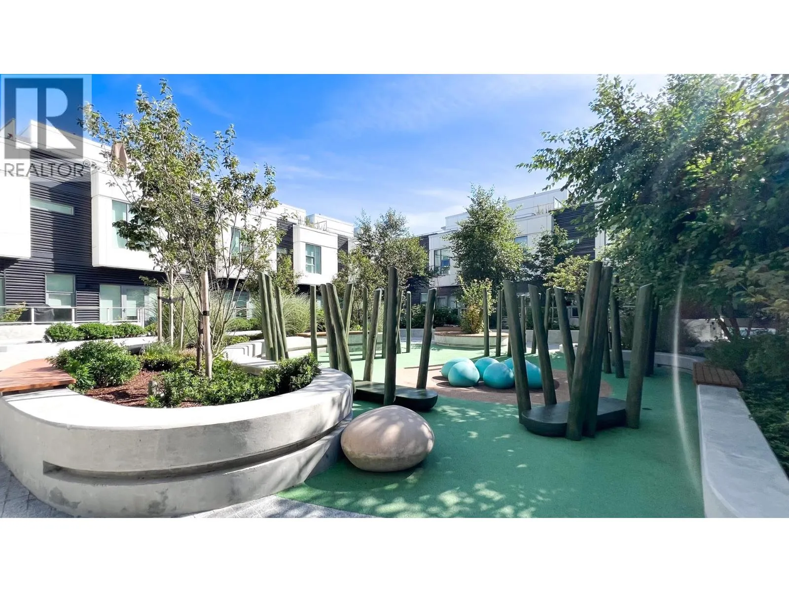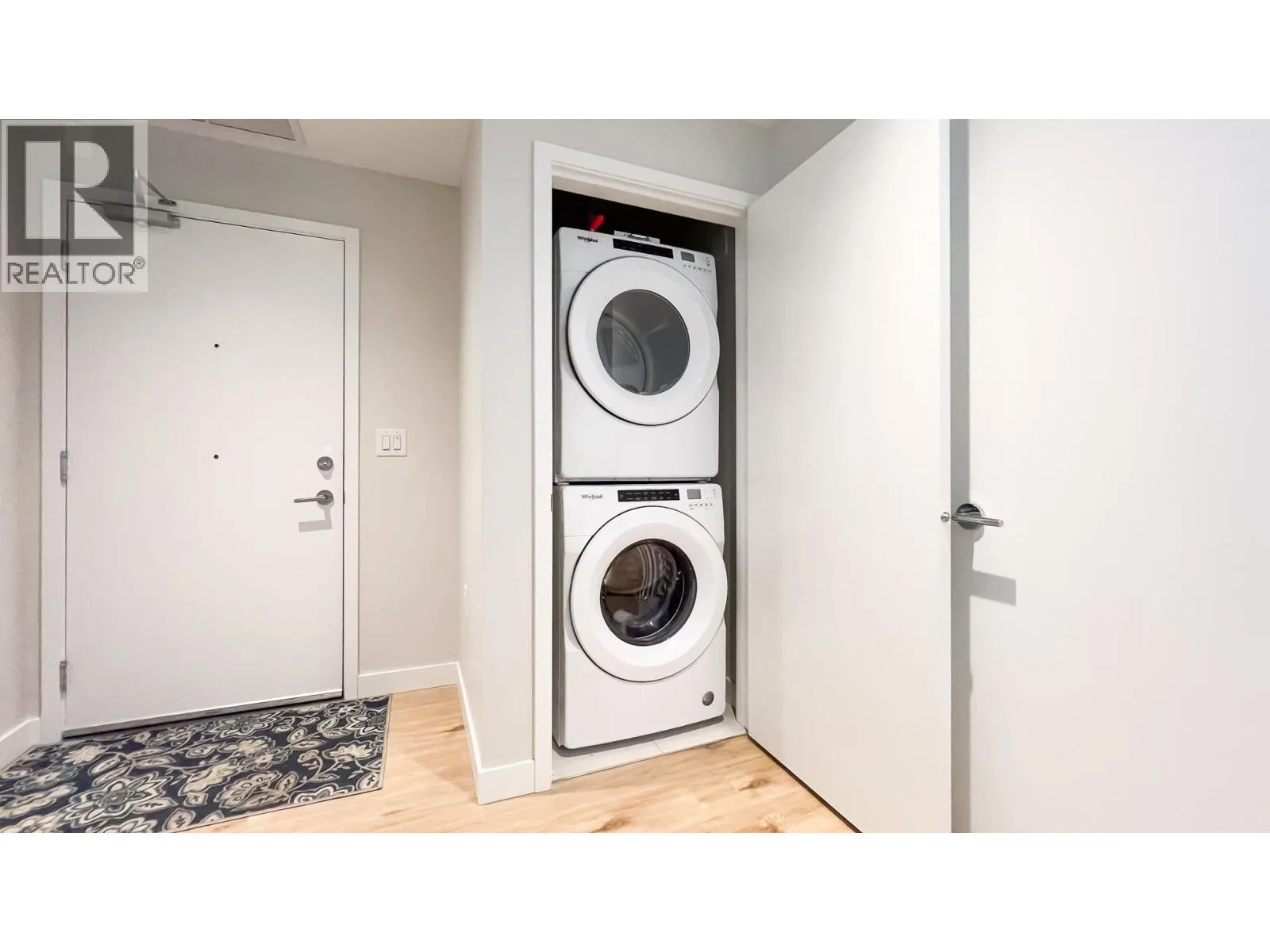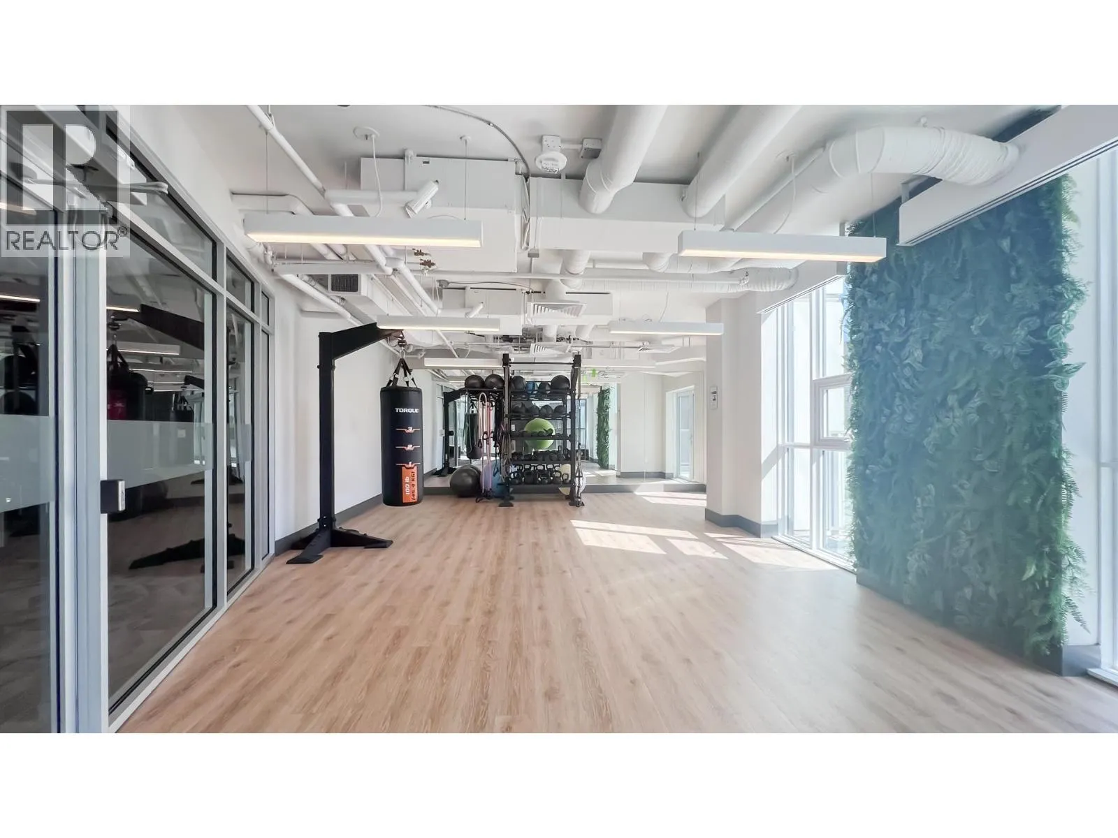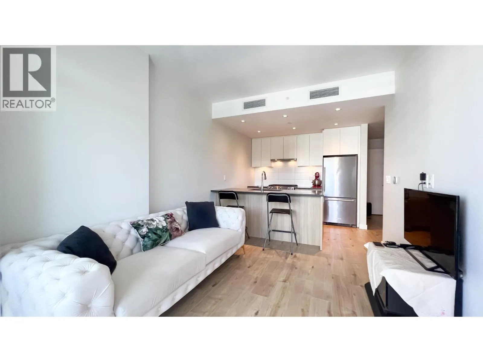 PARADIGM at River District by WesGroup! Just steps to the scenic Riverwalk, this North-facing 1 Bed + Den residence showcases expansive floor-to-ceiling windows, filling the home with natural light. The thoughtfully designed open-concept living area flows seamlessly into a sleek, modern kitchen and a generous covered balcony, perfect for year-round enjoyment. Premium features include KitchenAid stainless steel appliances, gas range, built-in oven, dishwasher, elegant quartz countertops, and a high-efficiency heat pump providing both cooling and heating. The home also comes with one secure parking stall and a dedicated storage locker. Residents enjoy exceptional amenities, including a fitness centre, yoga/TRX studio with boxing area, rooftop garden, outdoor BBQ area, and a party lounge. (id:27476)