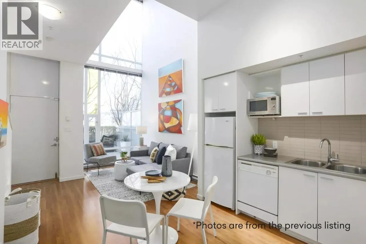 Stunning 3-Level Live/Work Concrete Townhome with a Private Rooftop Terrace! This home offers 879 SF of outdoor living space spread across multiple patios + 865 SF of interior living. The main level boasts a grand open-concept living area with soaring 20´ ceilings, expansive windows, and abundant natural light. The sleek kitchen feat. a ceramic cooktop & built-in oven, with ample cabinet storage. Large laundry/storage room & a back entrance providing access to parking/bike room. 2nd level is the primary bedroom & a versatile loft office/flex space. The 3rd level´s massive, private rooftop terrace is perfect for summer entertaining! Amenities: Concierge service & premium amenities, including a gym & indoor pool, etc. Prime location near Skytrain and all amenities! Zoning allows for office use. (id:27476)