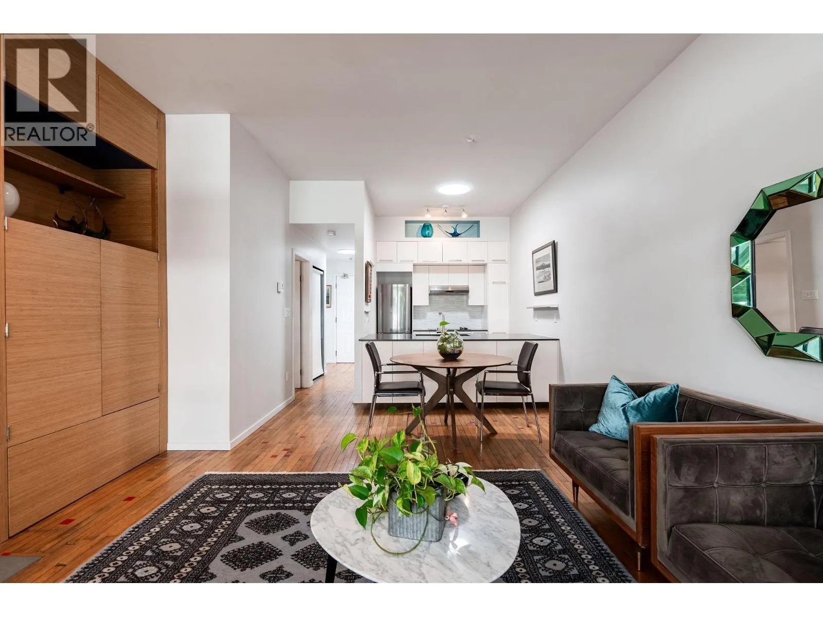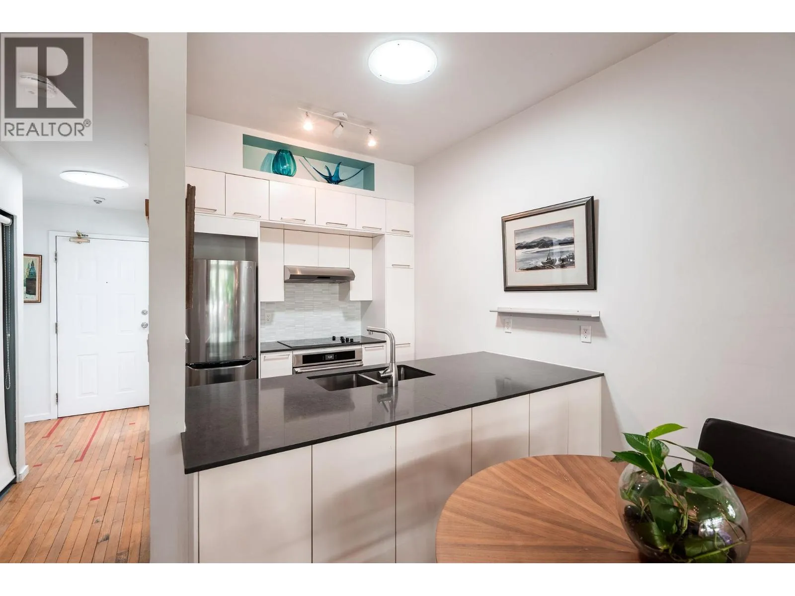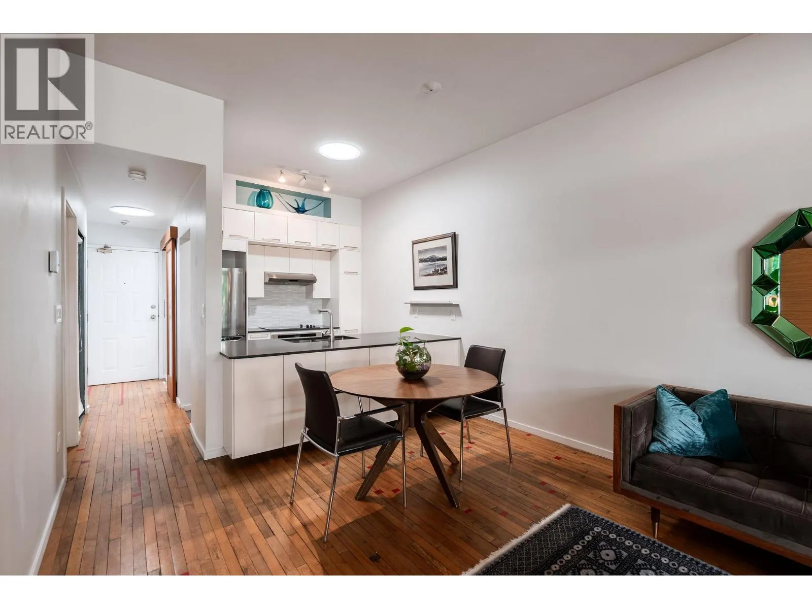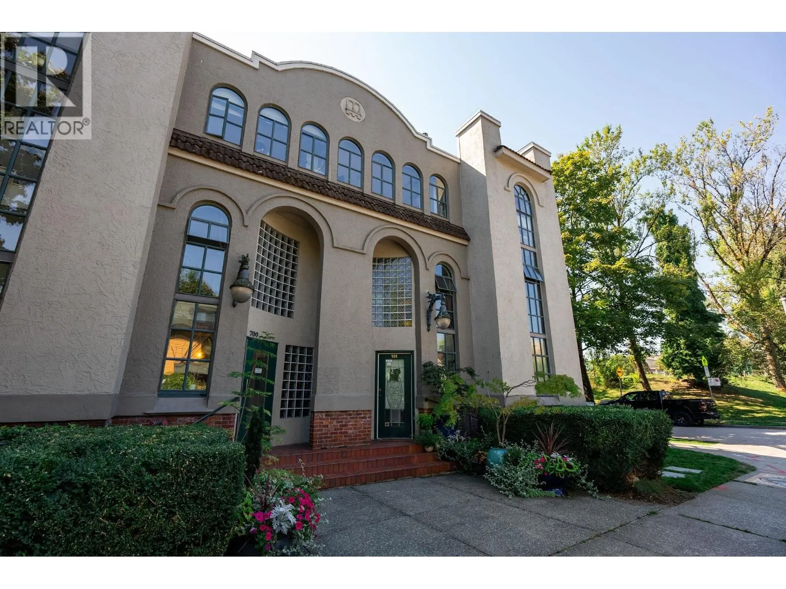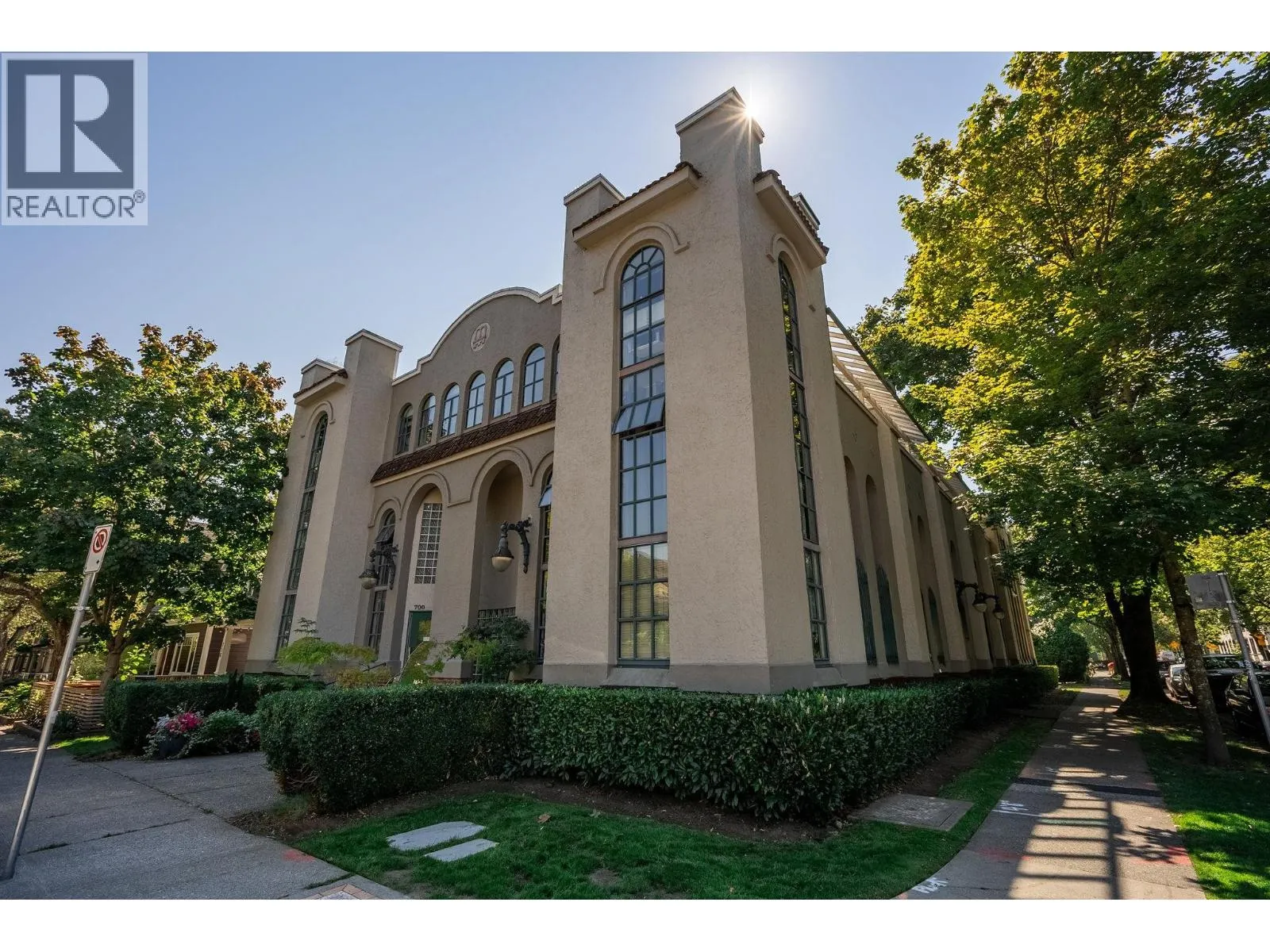 Penthouse living in a special landmark conversion. Once Vancouver´s first synagogue (1911), unit 303 at Alexander Court blends heritage character with modern design. This fully renovated home offers 10´ ceilings, reclaimed gym flooring, Bocci lighting, wood-burning fireplace, spa bath, & sleek built-ins. 4 skylights (2 operable) and full-span west windows pull in light & air. The bedroom´s smart, flexible layout is ideal for home office, hobby, or 2nd sleeping space. Weather-protected balcony feels like a treehouse escape. Steps to MacLean Park, Strathcona Community Centre, Railtown studios, award-winning dining at Kissa Tanto or Barbara, & area faves like Finch´s. Vancouver´s first neighbourhood where community is palpable. Walk up - NO elevator. In-suite laundry, 1 parking & 1 storage. Open house Sunday, November 2nd from 12-2pm. (id:27476)