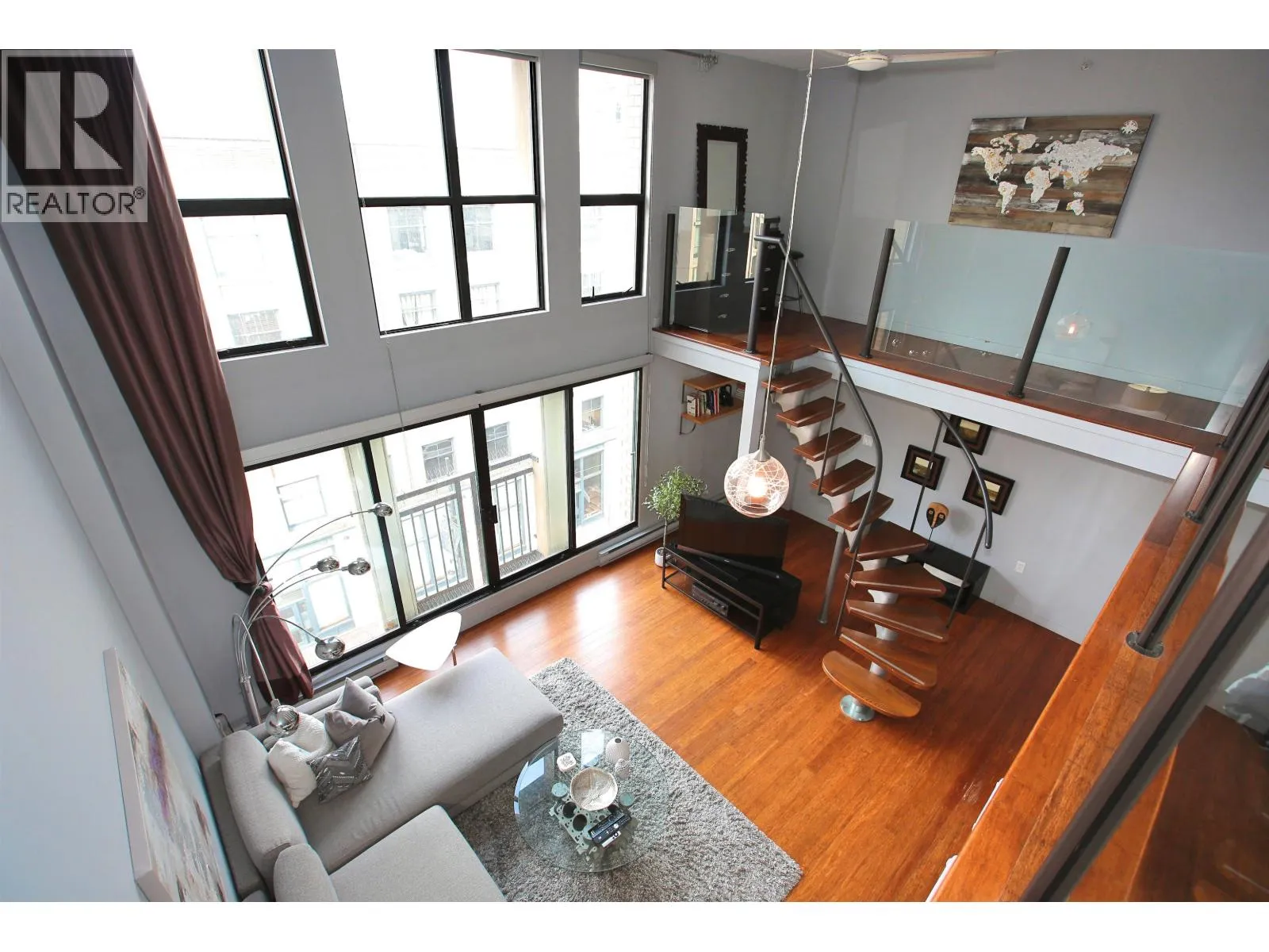 A charming loft in the heart of Gastown. This gorgeous loft offers soaring 16' ceilings, tons of natural light from its floor to ceiling windows, 2 flex spaces great for storage, bamboo flooring, in suite laundry, full bathroom, updated kitchen and Juliet balcony. Comes with 1 secured parking and plenty of additional visitor stalls. Two pets and rentals are welcome. Open House Sat 19th July 2.30pm to 4pm (id:27476)