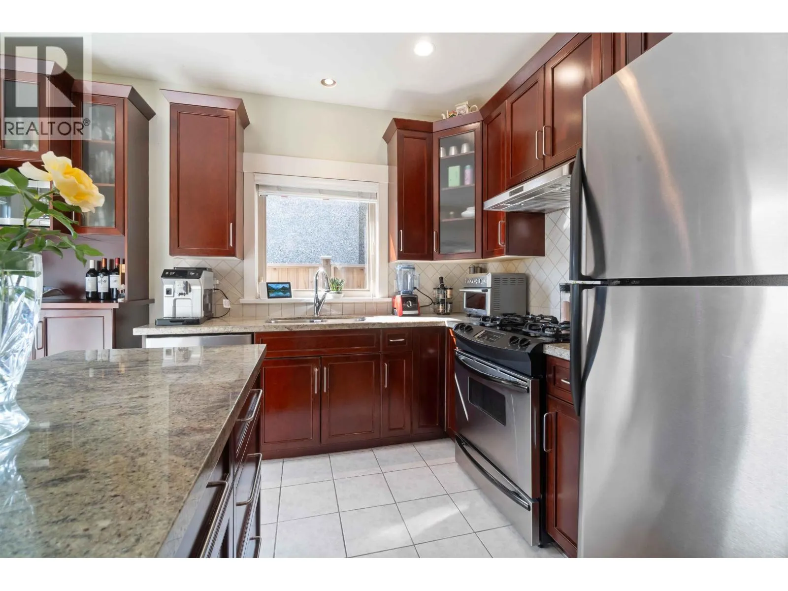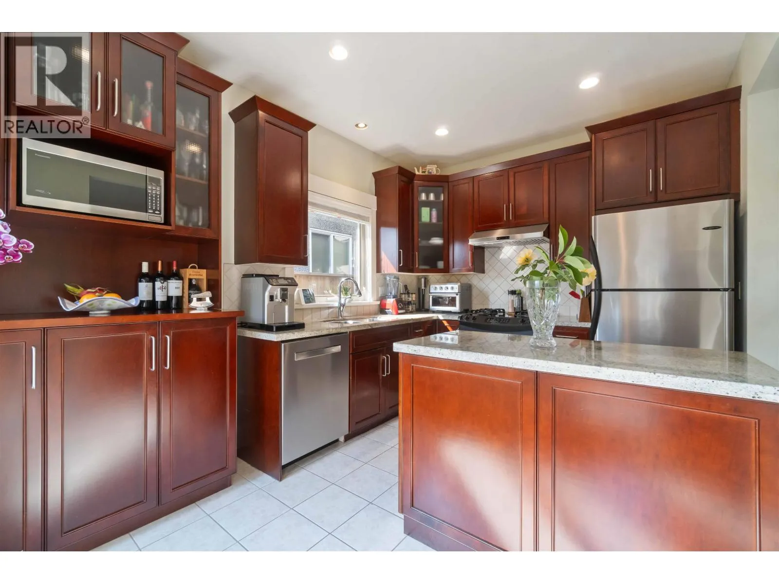 Modern and Well-kept back duplex located in the heart of the Prime Marpole community. Luxury custom-built by experienced developer Copa. This 2-level home offers 3 beds 2.5 baths with newer high-end hardwood flooring, maple gourmet kitchen with granite countertops/kitchen island, gas stove, gas fireplace, radiant heating, new on demand water boiler, and remote controlled thermostat. Upstairs 3 spacious beds and 2 full baths Spacious Master beds en-suite with walk-in closet. South facing back yard with abundant natural light. Detached single-car garage included. Beautiful cherry blossoms in spring. Across from park, close Marina gateway, SkyTrain, and access DT/Richmond.Steps Marpole Community,restaurants etc. OpenHouse Nov 16 sun 2:00-4:00pm. (id:27476)