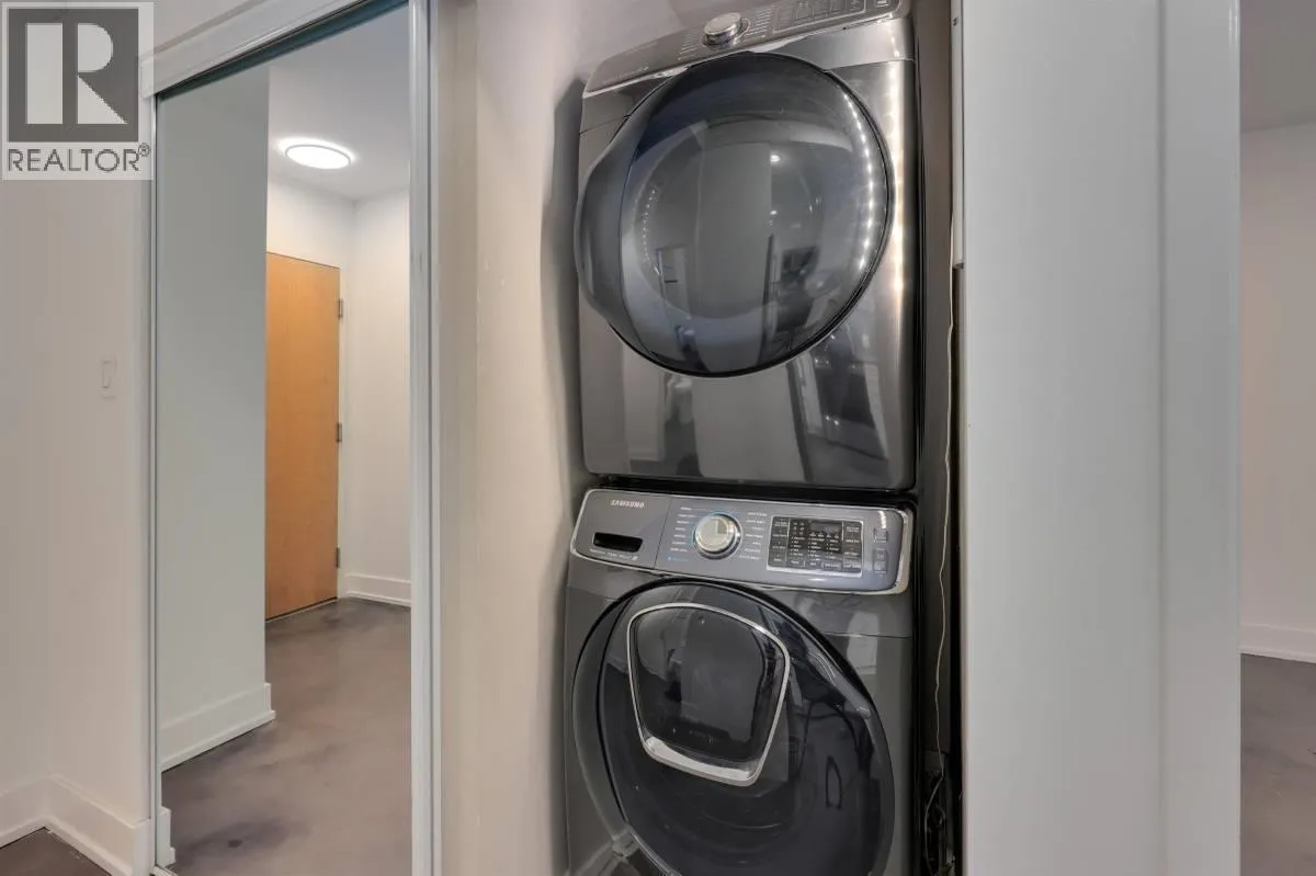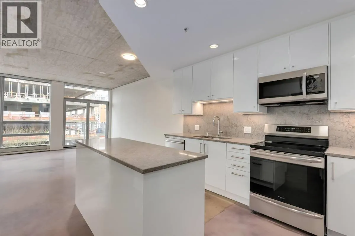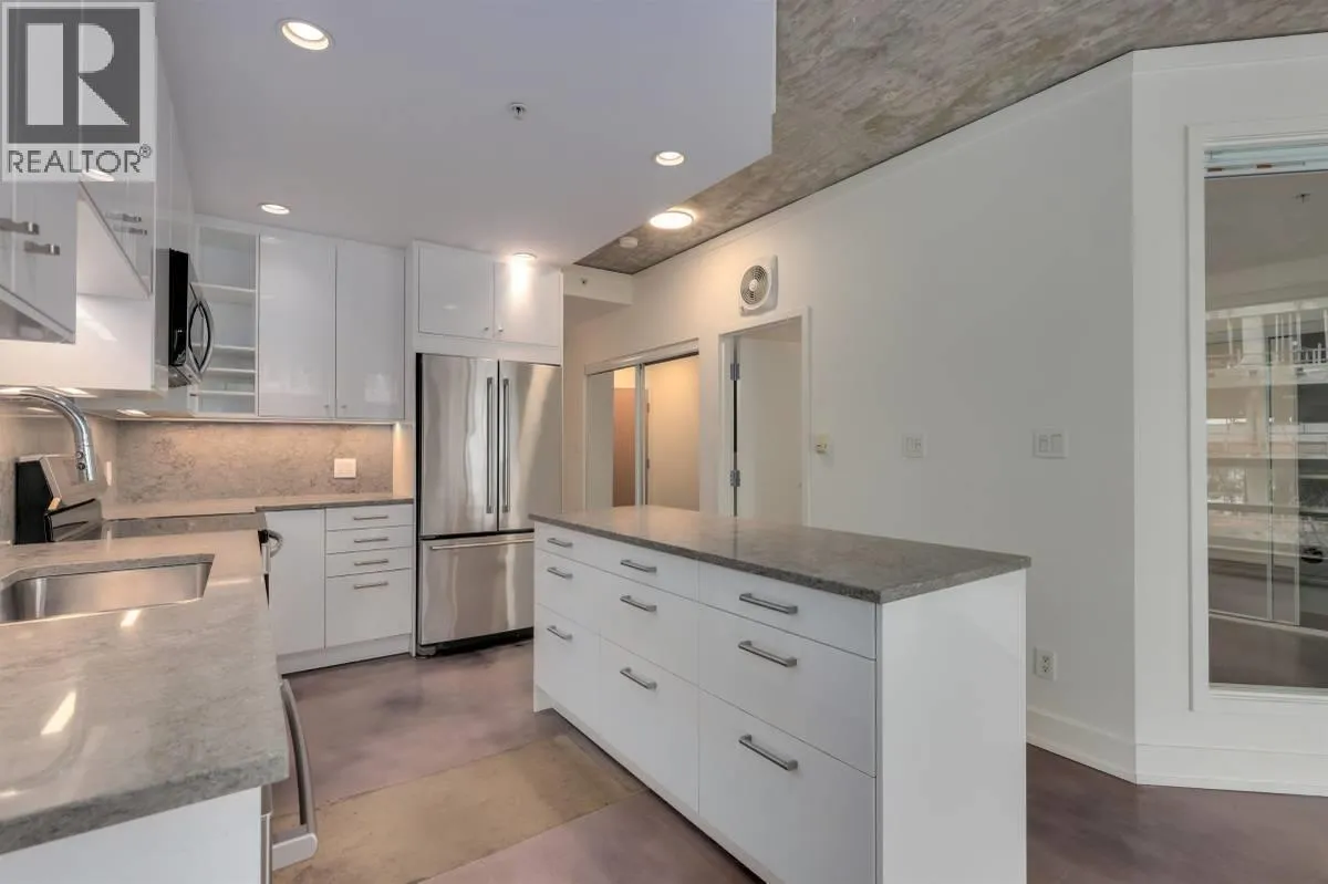 Welcome to this bright and spacious east-facing corner suite in the highly desirable Left Bank building. Boasting floor-to-ceiling windows and 9´ exposed concrete ceilings, this home offers an airy, modern loft aesthetic with an abundance of natural light flooding every room. The open-concept layout features polished concrete floors and a fully updated kitchen complete with quartz countertops, sleek stainless steel appliances, and custom tile accents-ideal for those who appreciate minimalist, contemporary design. The generously sized primary bedroom comfortably fits a king-size bed and offers a private ensuite bathroom, as well as direct access to a private patio-perfect for enjoying your morning coffee or winding down in the evening. (id:27476)