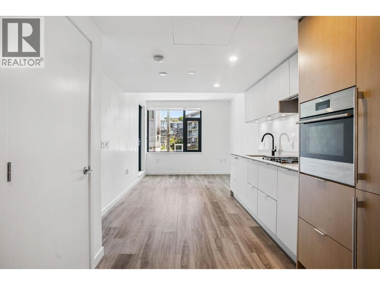 ELANORE BY CHARD - the latest addition to Mount Pleasant's storied history! This quiet east facing, efficient one bedroom home boasts sleek, top of the line finishes and central air-conditioning. The gourmet kitchen features Wolf cooktop and wall oven, integrated fridge, Fisher&Paykel double dishwasher, custom cabinetry and quartz counters, flowing on designer laminate flooring into the open concept living space. The bathroom features an oversized vanity with ample storage, oversized medicine cabinet, deep soaker tub and radiant in-floor heating. Appreciate a generously sized bedroom, roller blinds throughout and a quiet inner courtyard view. This premier boutique building is perfectly situated in an exciting neighbourhood, walking distance to the city's bests! (id:27476)