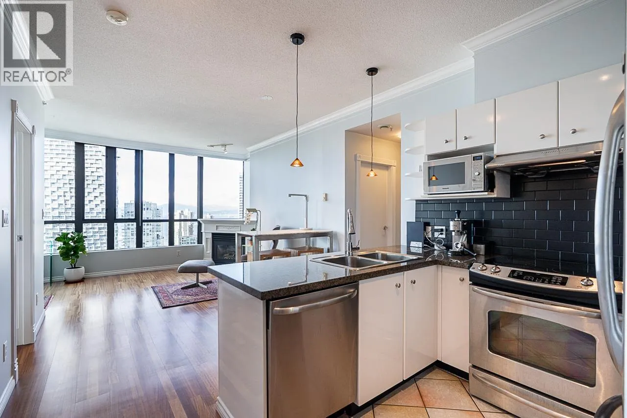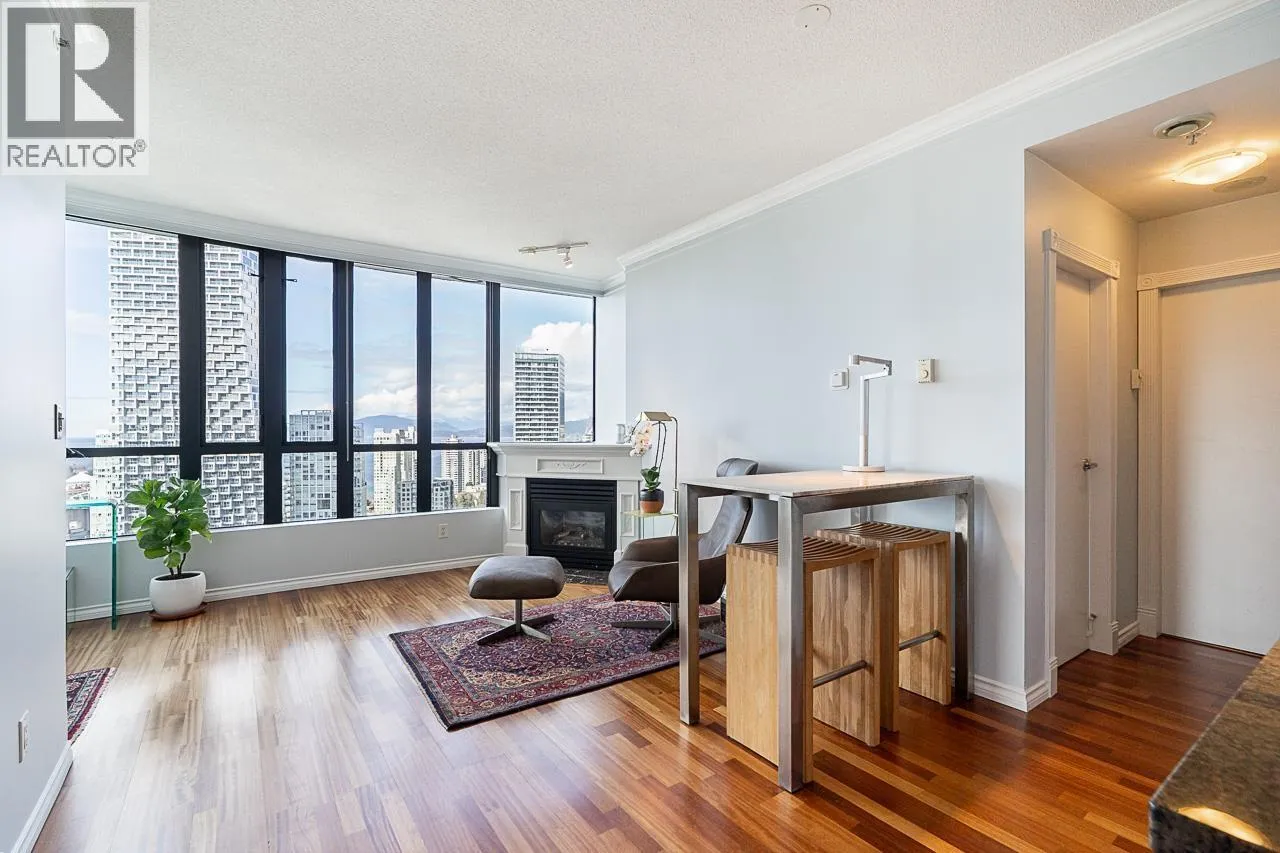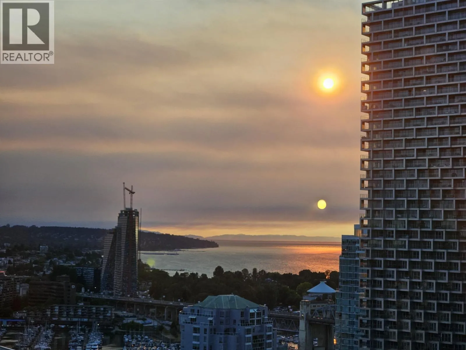 This one-of-a-kind Unit 3202 offers stunning sunset views from its SW corner perch overlooking False Creek & English Bay. This 2 bed, 2 bath + den + office sub-penthouse boasts large windows in every room, breathtaking views throughout. Kitchen features granite counters and S/S appliances. 9´ ceilings, hardwood floors and gas fireplace. Only 2 units on level 32 added privacy! Amenities include concierge, party room, indoor/outdoor pool, Jacuzzi, sauna, gym, guest suite, an elegant lobby with passenger drop-off & and an outdoor courtyard with beach volleyball court. Pets & rentals allowed. Prime location-steps to SkyTrain, dining in Yaletown, grocery shopping & the seawall. George Wainborn Park is one block away Bonus:* 2 parking 1 storage locker. (id:27476)