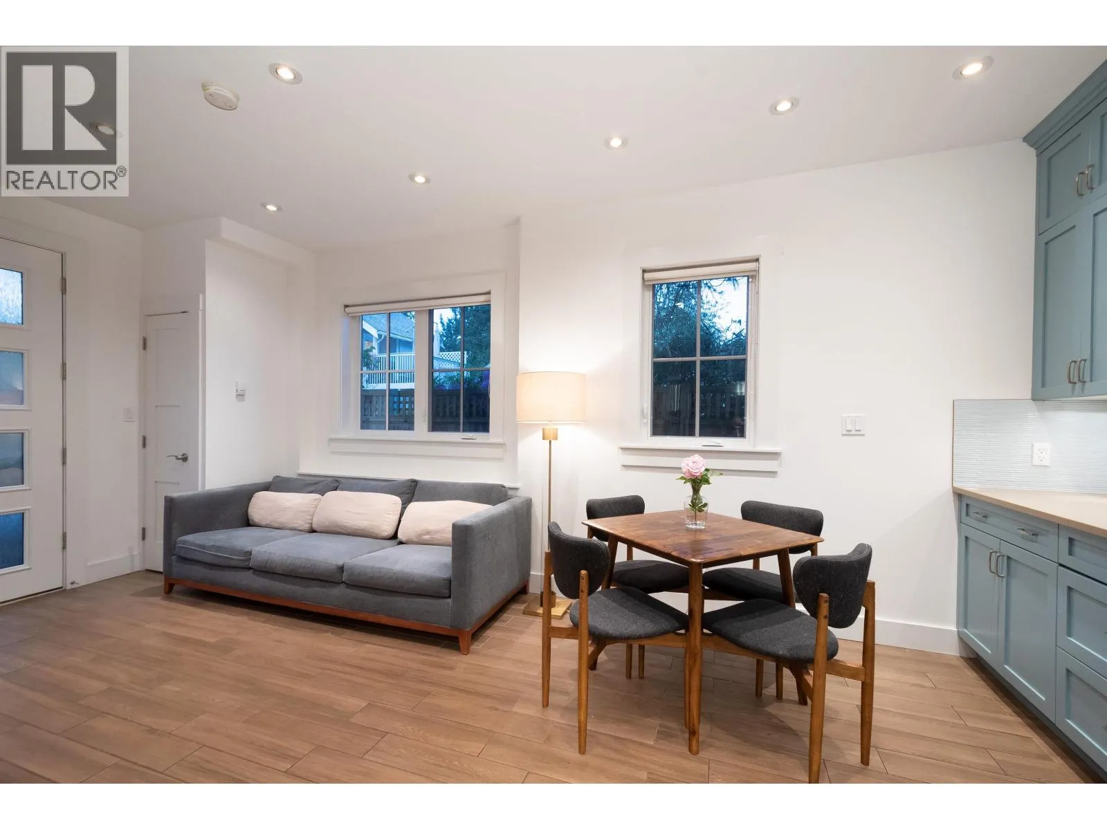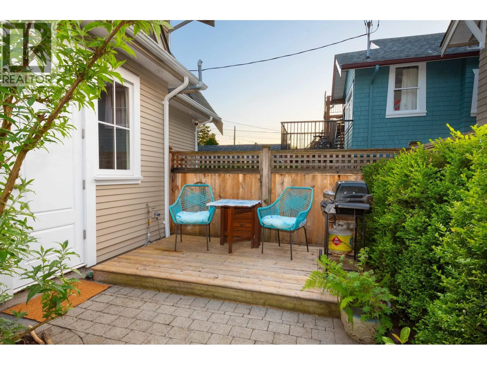 Rarely Available COACH HOUSE in Prime Kitsilano! This private and quiet coach house offers the charm of a detached home without the price tag. The main floor features an open-concept kitchen, living, and dining area, while upstairs boasts two bedrooms, two bathrooms, and a flexible family room/office. Enjoy the convenience of an attached single-car garage, perfect as a gym, office, or storage. Step outside to your private yard with two garden beds-a peaceful retreat. Built in 2014 with durable Hardie board siding, this home offers modern construction and peace of mind. Prime location just a short stroll to the vibrant shops, cafés, and restaurants of West Broadway, and minutes from the beach. PRICED $191k BELOW TAX ASSESSMENT. Showing by Appointment Sunday 3-4:30pm. (id:27476)