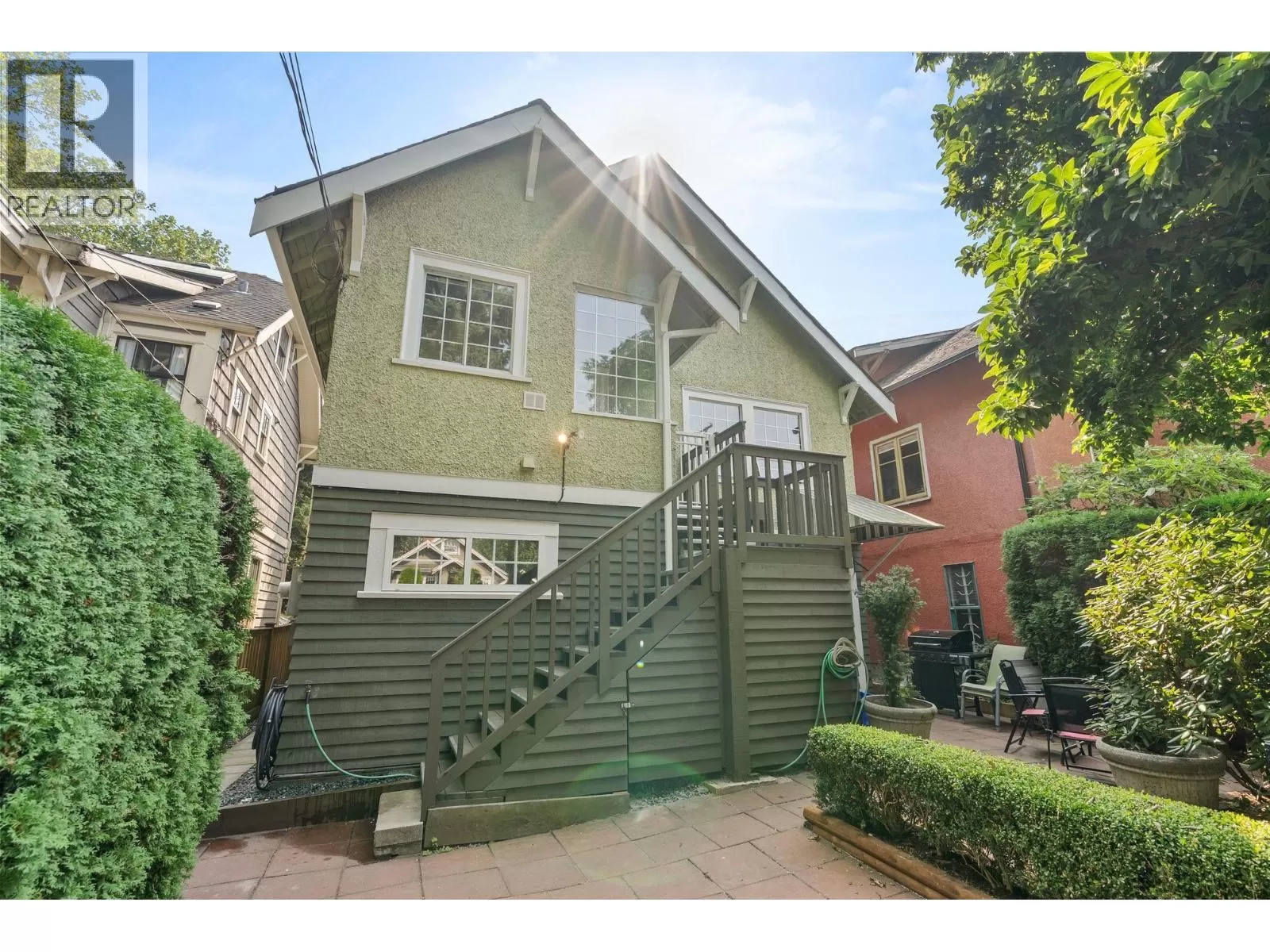 Excellent Douglas Park family home on quiet treed street with legal, 2 bedroom mortgage helper. This 2700 sqft house is extremely solid as it has been lifted, reinforced and placed on driven piles providing a very stable foundation. The main and top floors are a wonderful 3 bedroom, 2 bathroom home with large living and dining rooms, original fir floors, gas fireplace & laundry. Lifting created a full height, legal 2 bedroom, 1 bathroom suite on the ground level. The original staircase is still intact to easily join the two levels back into one home if desired. Lovely manicured gardens and patios, and one year old roof. Steps to Douglas Park, Heather Park, Oak and Cambie shopping and restaurants. (id:27476)