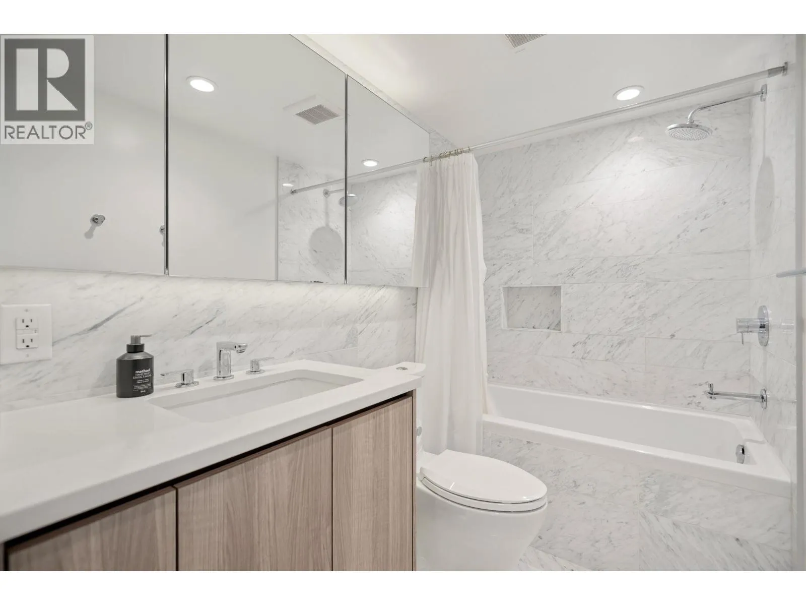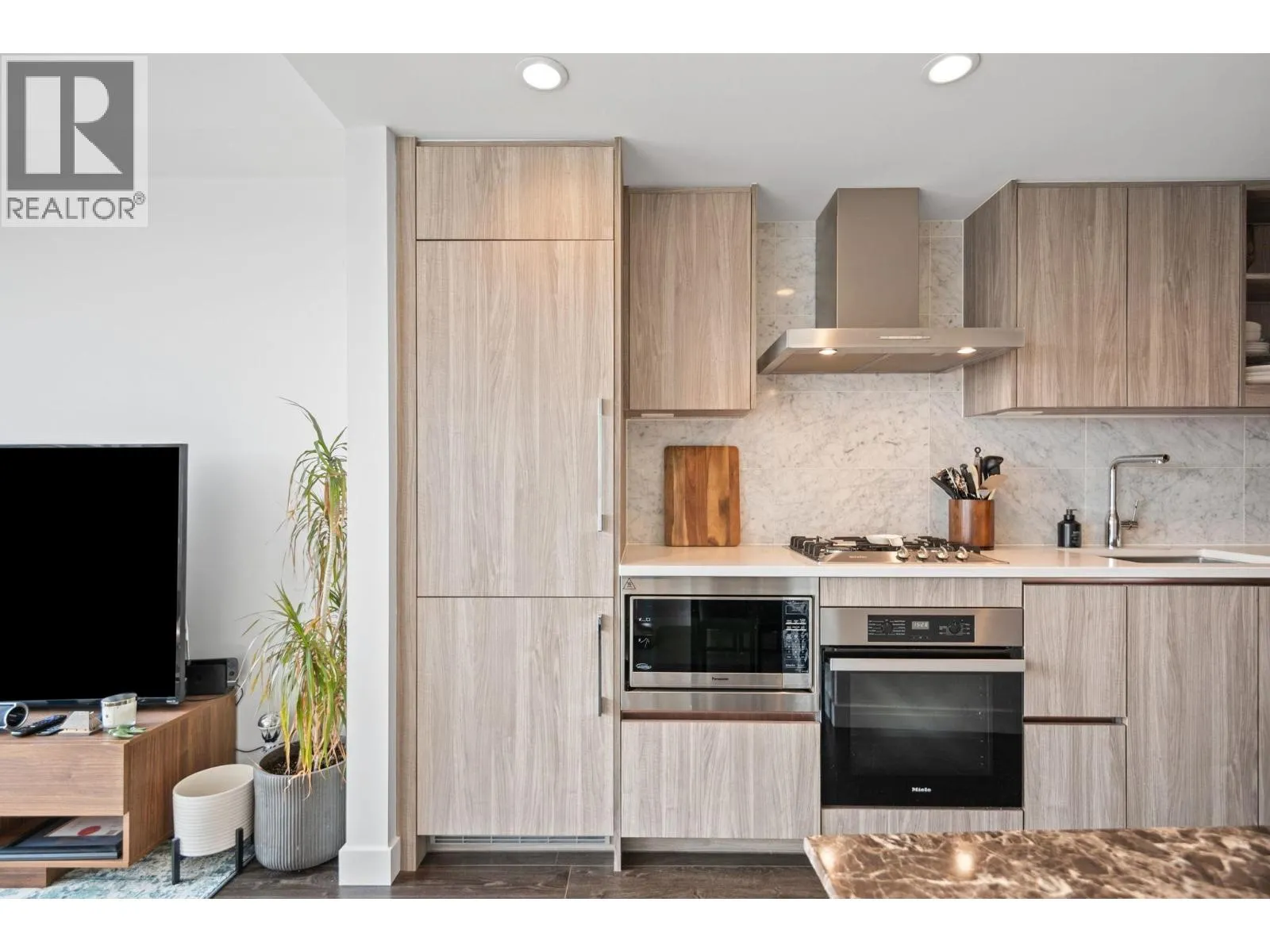 Experience luxury & convenience in this stunning 1 BED 1 BATH condo located in Vancouver's vibrant Olympic Village. Meticulously designed with a full Miele appliance package, European cabinetry, elegant marble flooring in the bathroom, & sleek laminate floors throughout. Custom millworked doors & archways add a touch of sophistication. The building offers resort-style amenities, including a social lounge with a pool table & a plush TV viewing area. Enjoy an exclusive club-style gym & a serene outdoor sun lounge. With a dedicated concierge, every need is met.Step outside to immediate access to the seawall, & a wealth of award-winning restaurants, cafes, & essential services like a pharmacy, doctor, & dentist. This is urban living at its finest, offering a perfect blend of style, comfort, & unparalleled location. (id:27476)