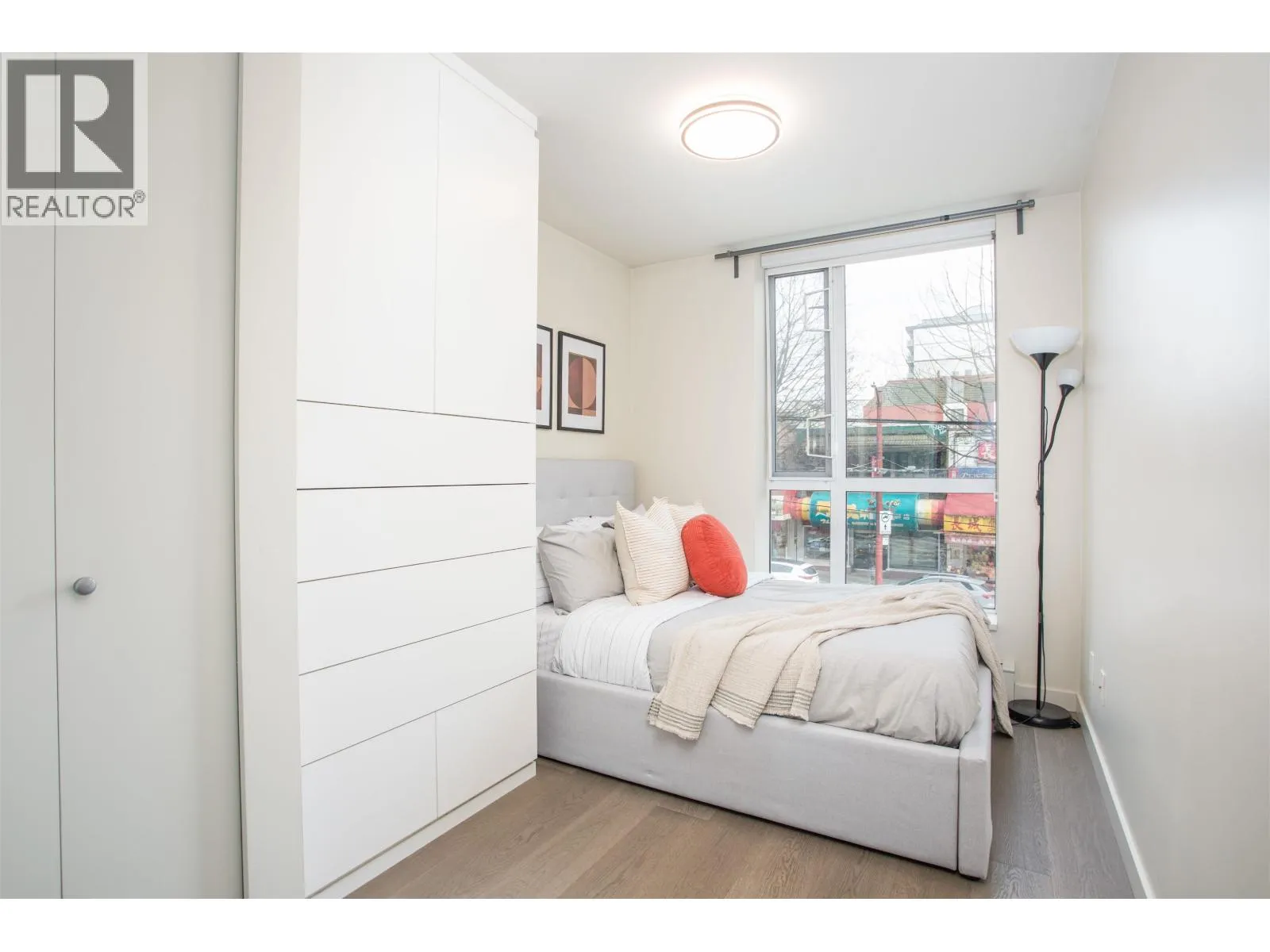 This home in vibrant crosstown offers a rare blend of space, style and value. This thoughtfully designed corner home features 3 bdrs and 2 full baths, including a primary ensuite with walk-in shower and a second with a deep soaker tub. The versatile third bedroom is complete with custom Murphy bed that transforms to a desk, providing flexibility. Steps from DT, you´re close to the SkyTrain, dining, and nightlife. Enjoy your own private walk-out patio (largest in the building) plus access to one of the city´s best rooftops: host BBQs, movie nights, relax by the firepit lounge and take in sweeping views of the city, ocean, and mountains. Keefer Block is a well-managed community allowing up to 3 pets. 1 parking, 1 storage and strata fees that cover heat and caretaker. O/H Sat Nov 15 2-3:30pm (id:27476)