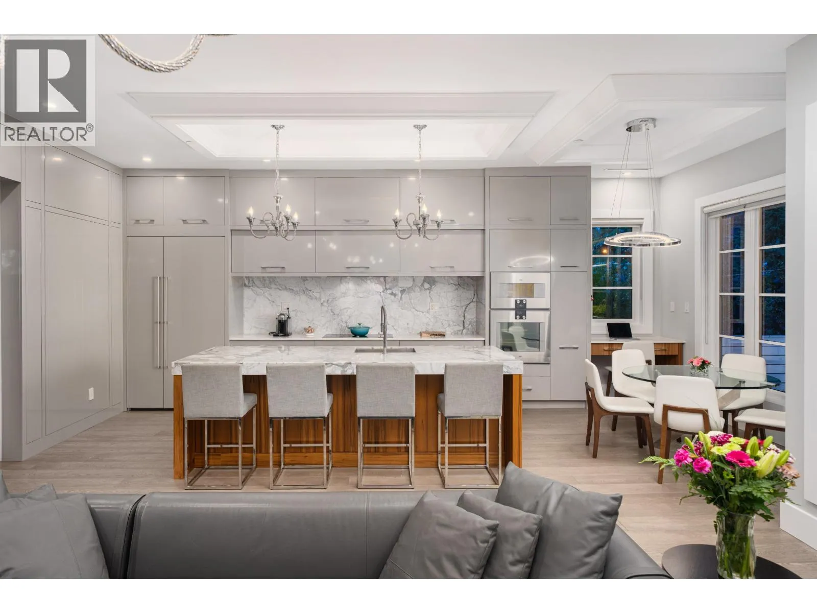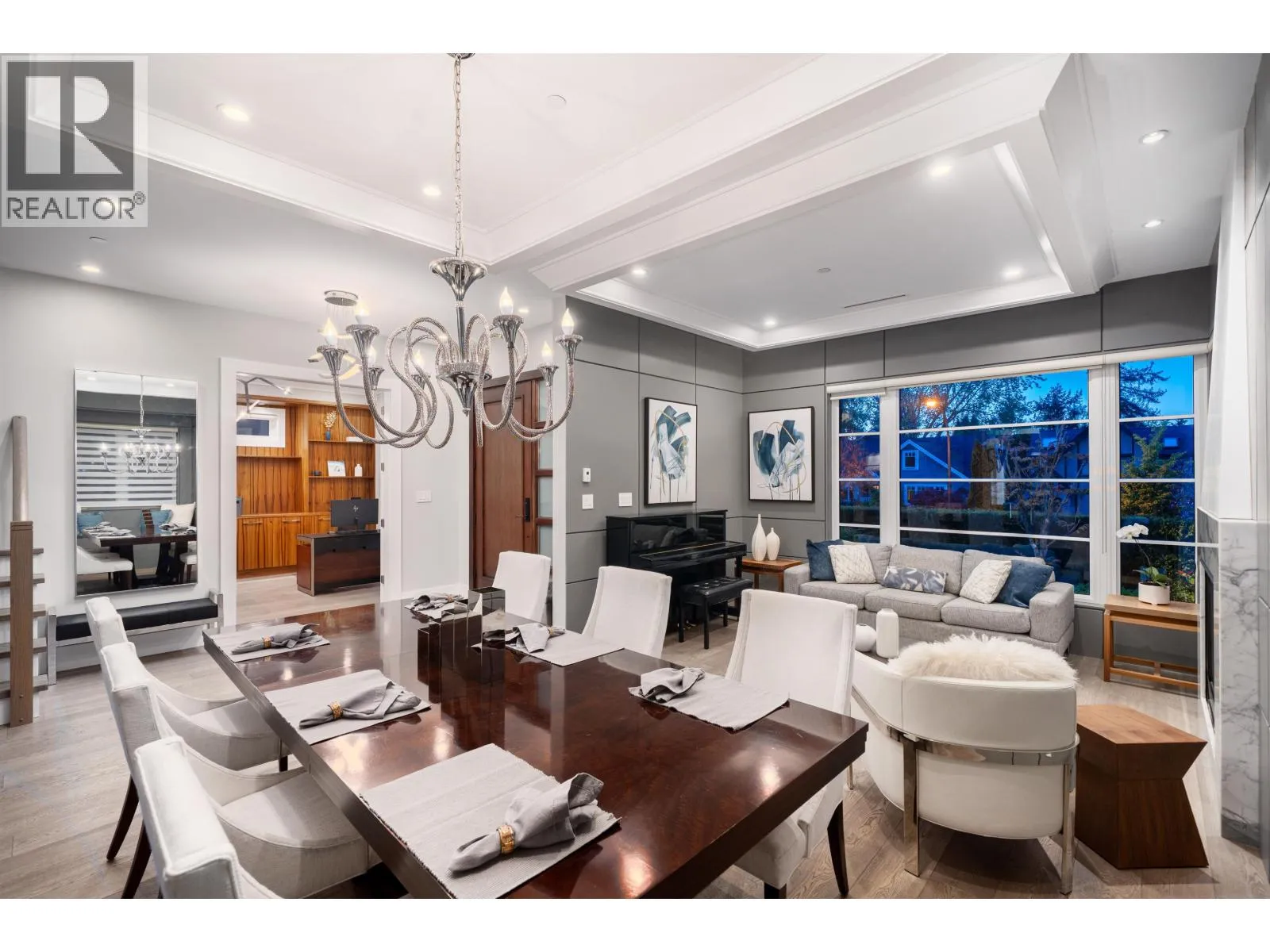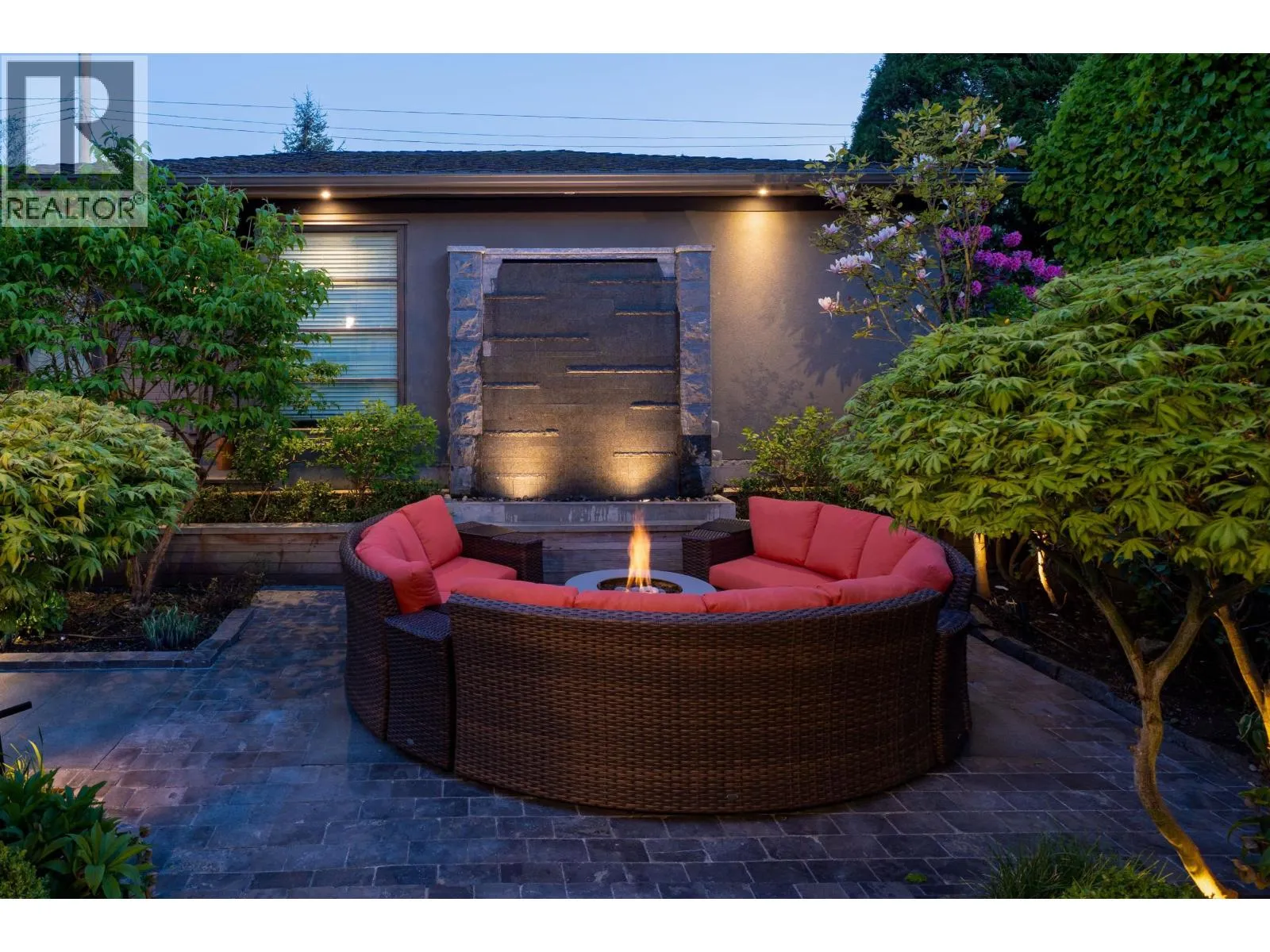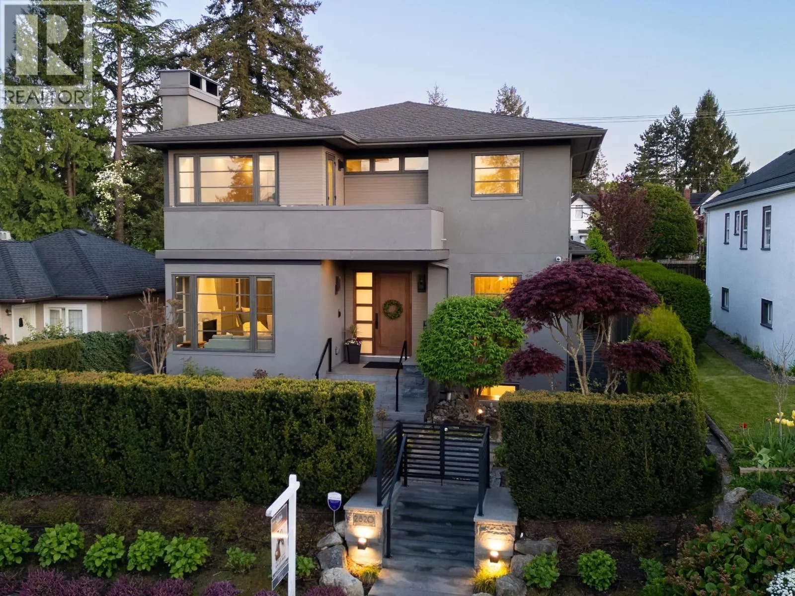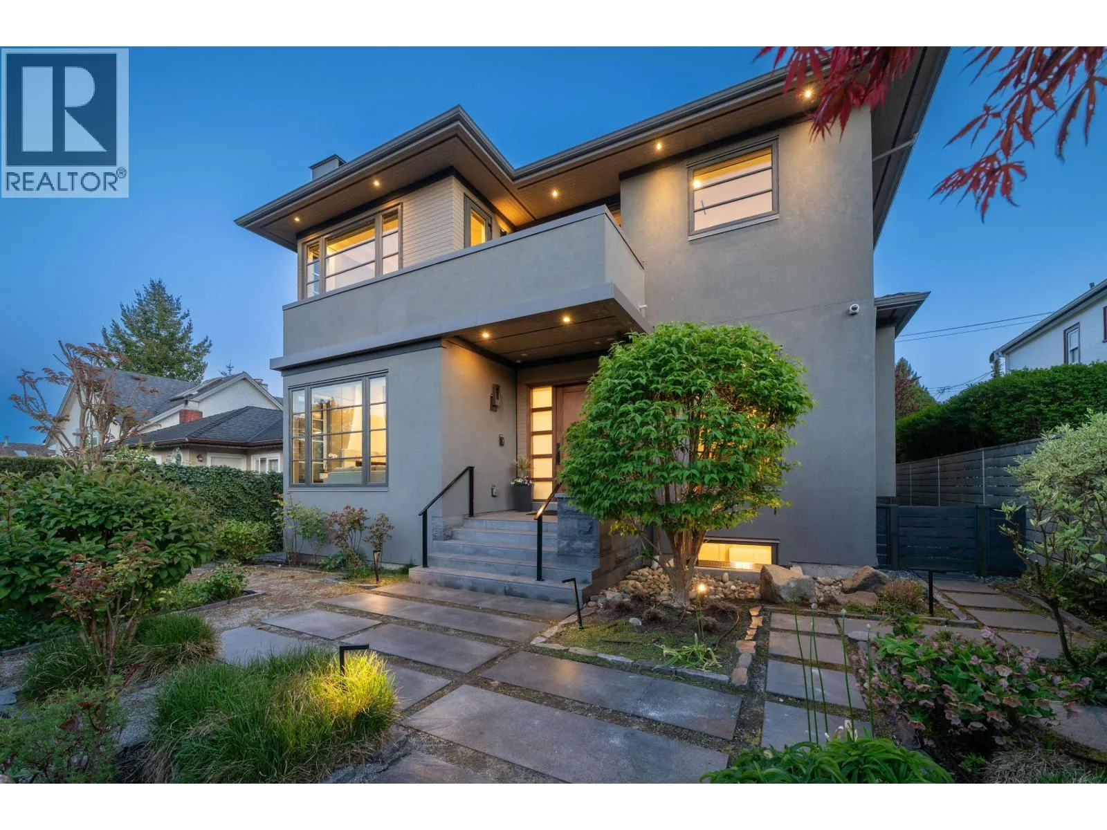 Elegant VIEW executive home with a modern flair, perched on the high side of a tranquil street in prestigious Mackenzie Heights. Over 4,600 sqft home with breathtaking views of the North Shore mountains on a 6,447 sqft lot. 6 bedrooms, 6.5 baths, built with supreme quality materials and superior craftsmanship. Featuring high ceilings, quality hardwood floors throughout, custom marble fireplaces, designer chandeliers, large gourmet kitchen and wok kitchen with custom cabinetry, Gaggenau appliances, expansive open family room, large rec room, home theatre, wine cellar, sauna, radiant heat, A/C, and HRV. A beautifully landscaped, sun-soaked south-facing Zen garden with waterfall and gas fire pit. Close to Crofton, St. George´s, York House and UBC. (id:27476)
