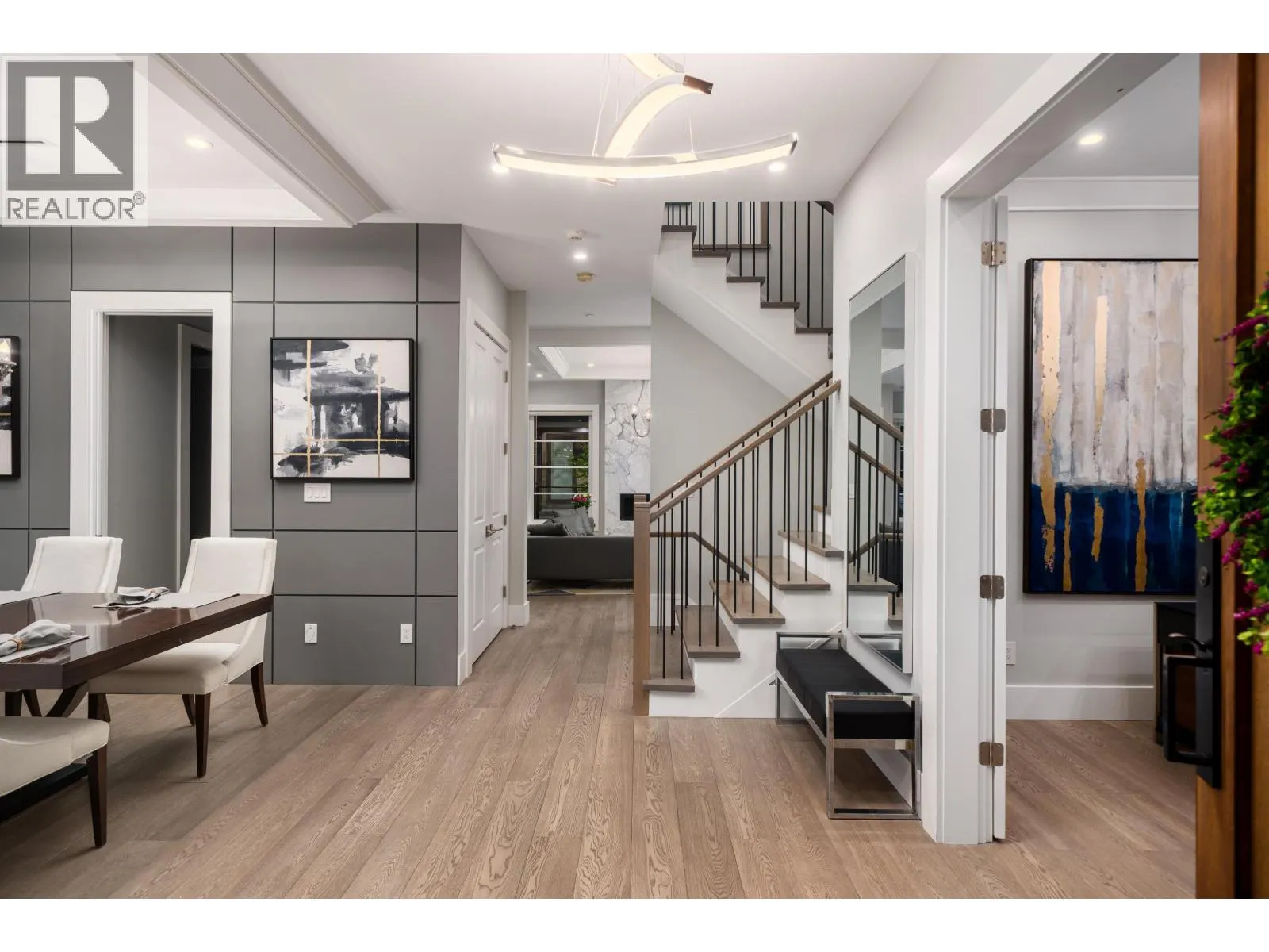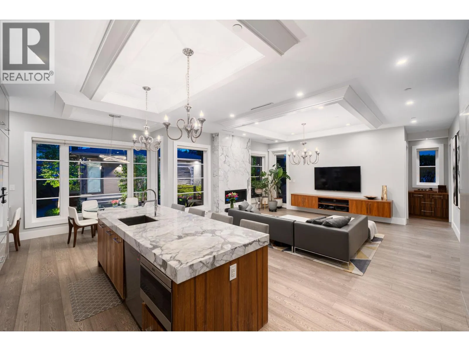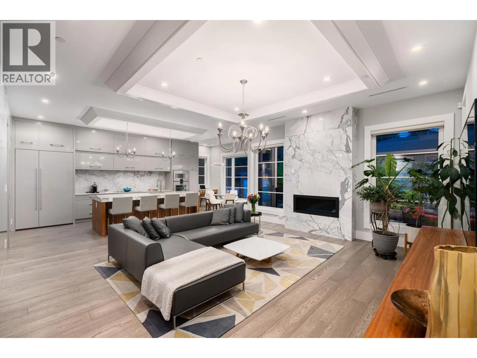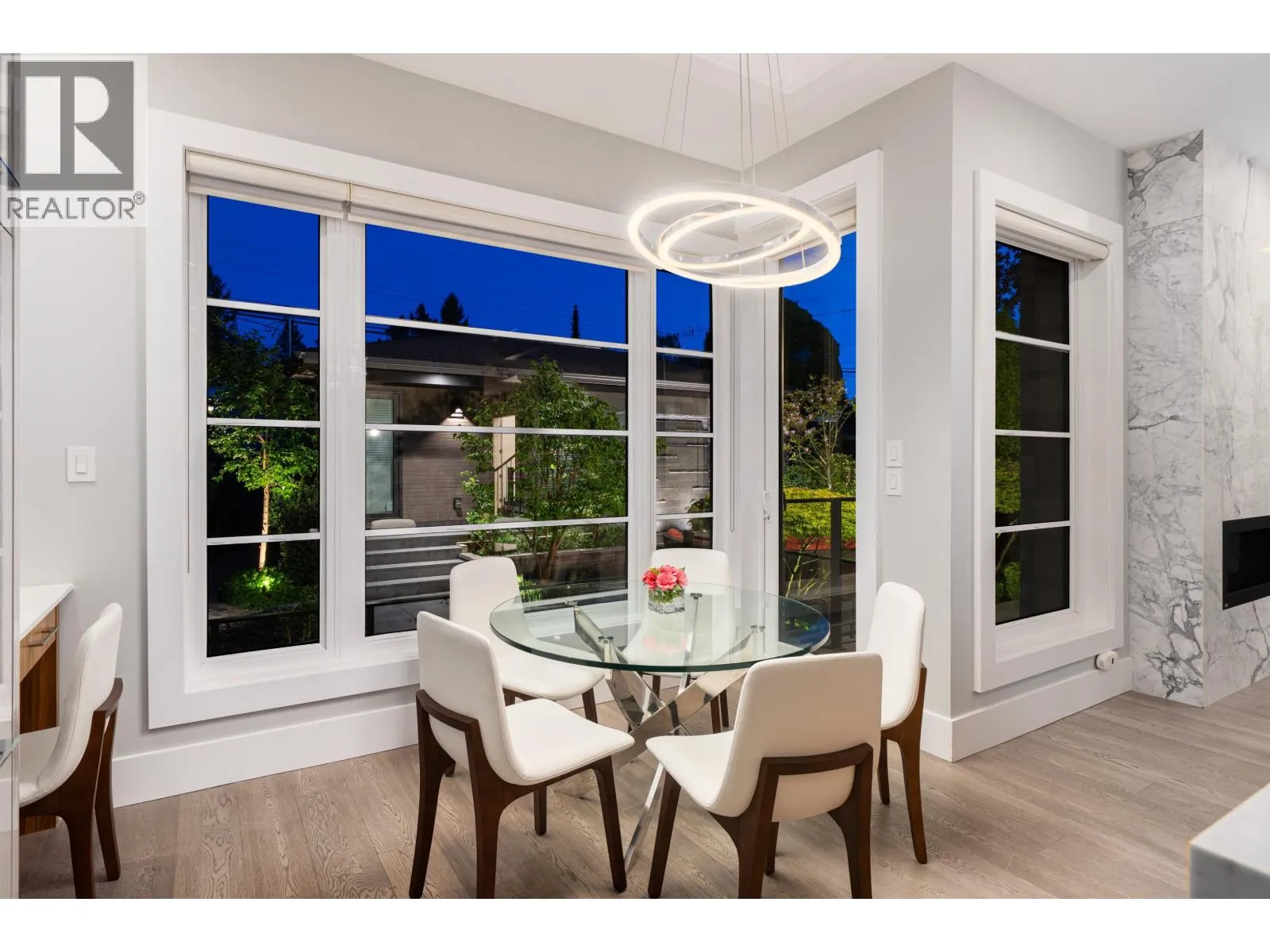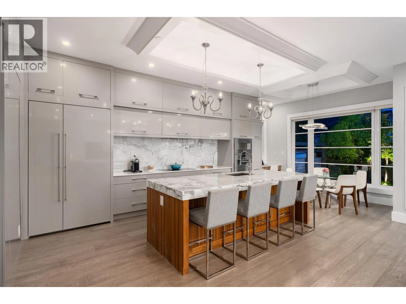 Elegant VIEW executive home with a modern flair, perched on the high side of a tranquil street in prestigious Mackenzie Heights. Over 4,600 sqft home with breathtaking views of the North Shore mountains on a 6,447 sqft lot. 6 bedrooms, 6.5 baths, built with supreme quality materials and superior craftsmanship. Featuring high ceilings, quality hardwood floors throughout, custom marble fireplaces, designer chandeliers, large gourmet kitchen and wok kitchen with custom cabinetry, Gaggenau appliances, expansive open family room, large rec room, home theatre, wine cellar, sauna, radiant heat, A/C, and HRV. A beautifully landscaped, sun-soaked south-facing Zen garden with waterfall and gas fire pit. Close to Crofton, St. George´s, York House and UBC. (id:27476)