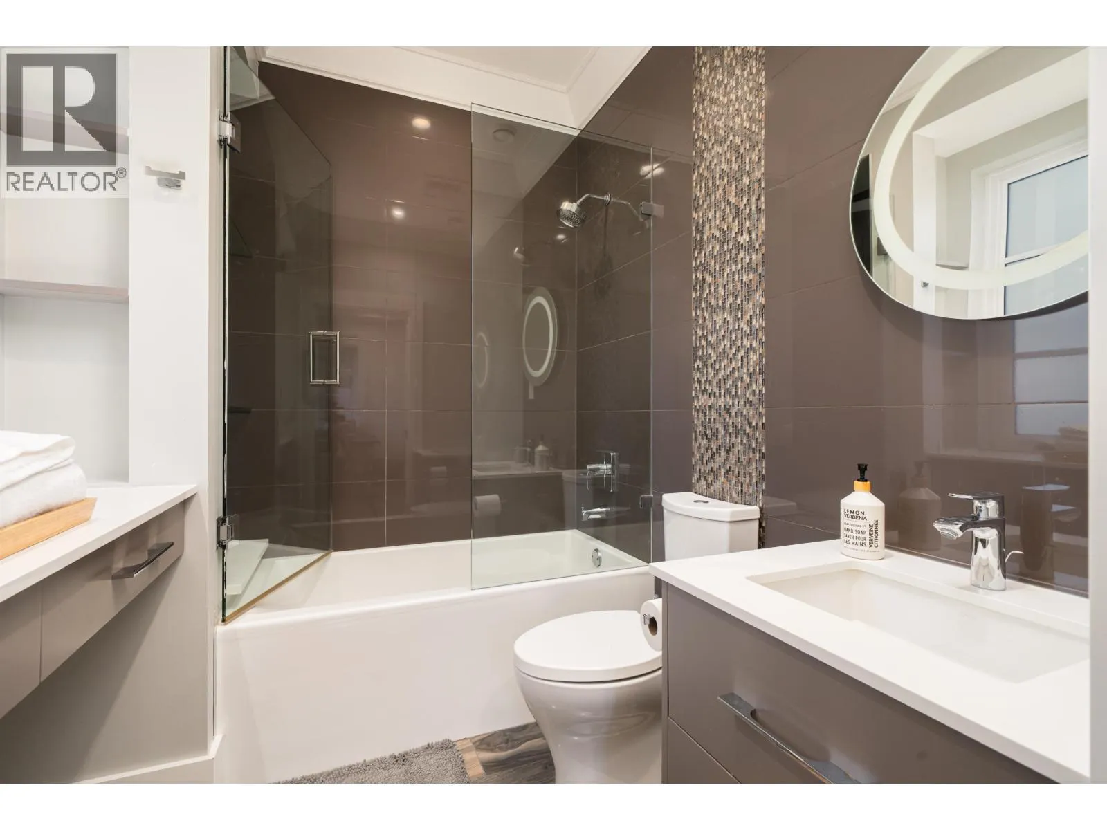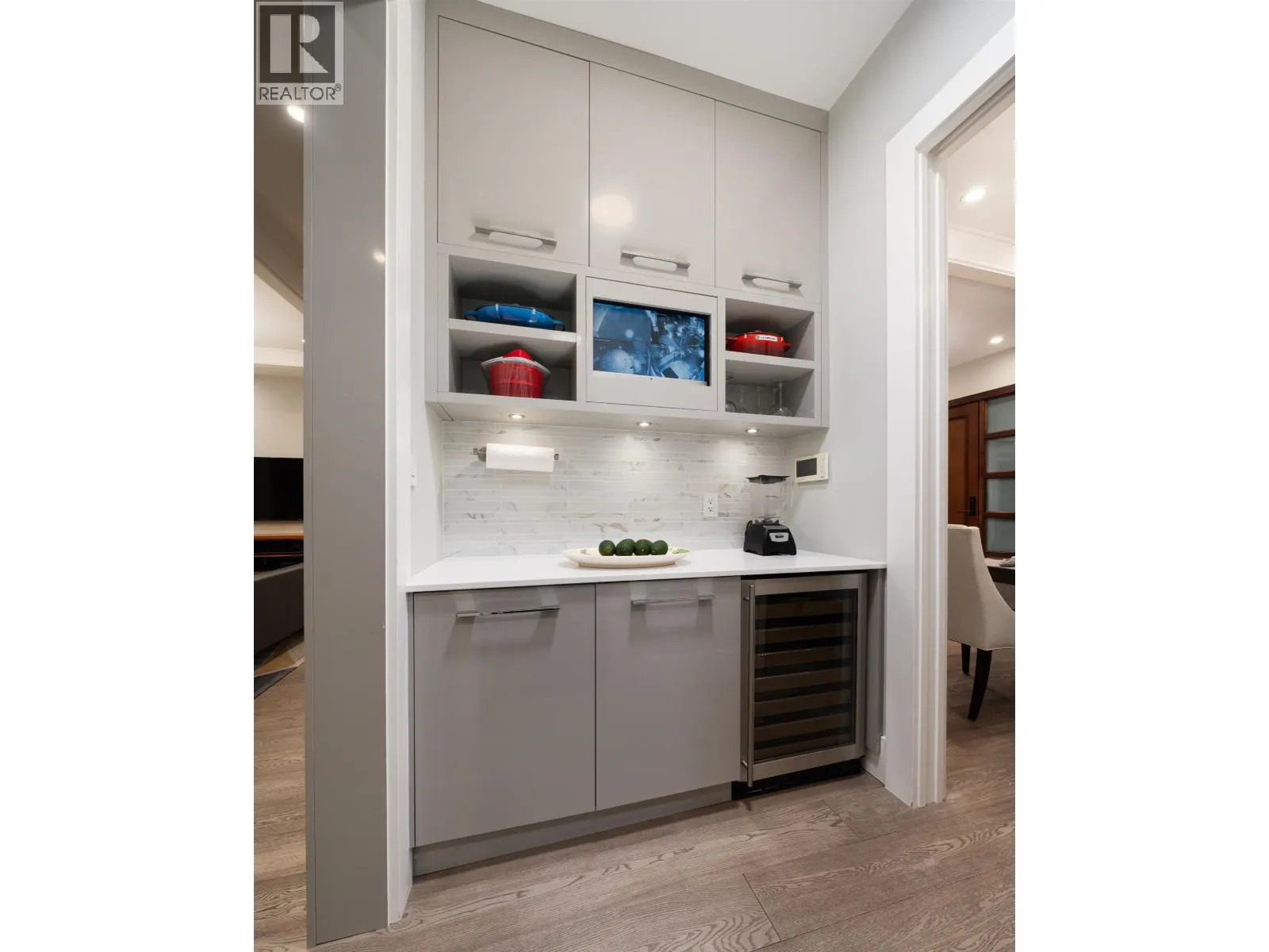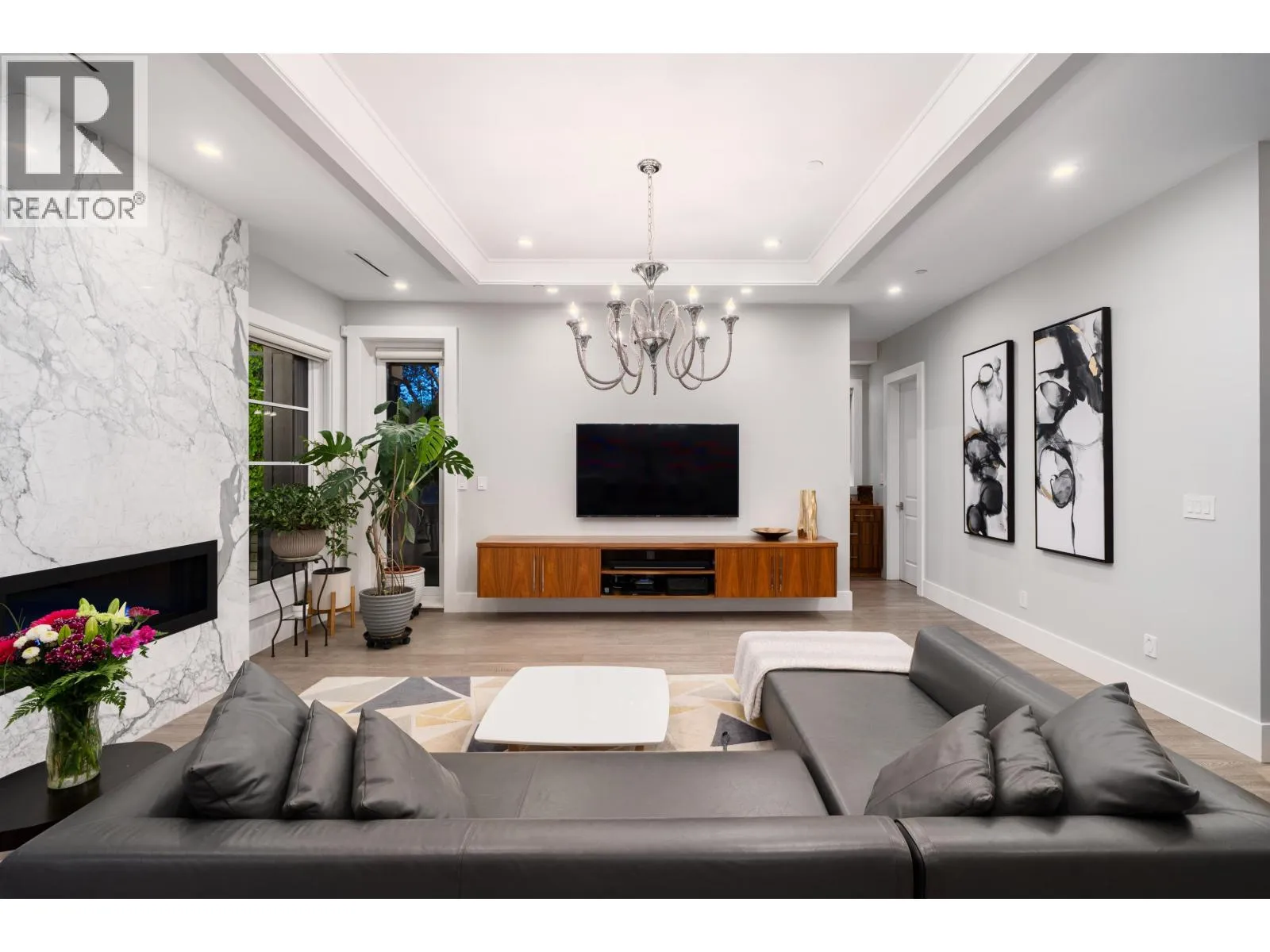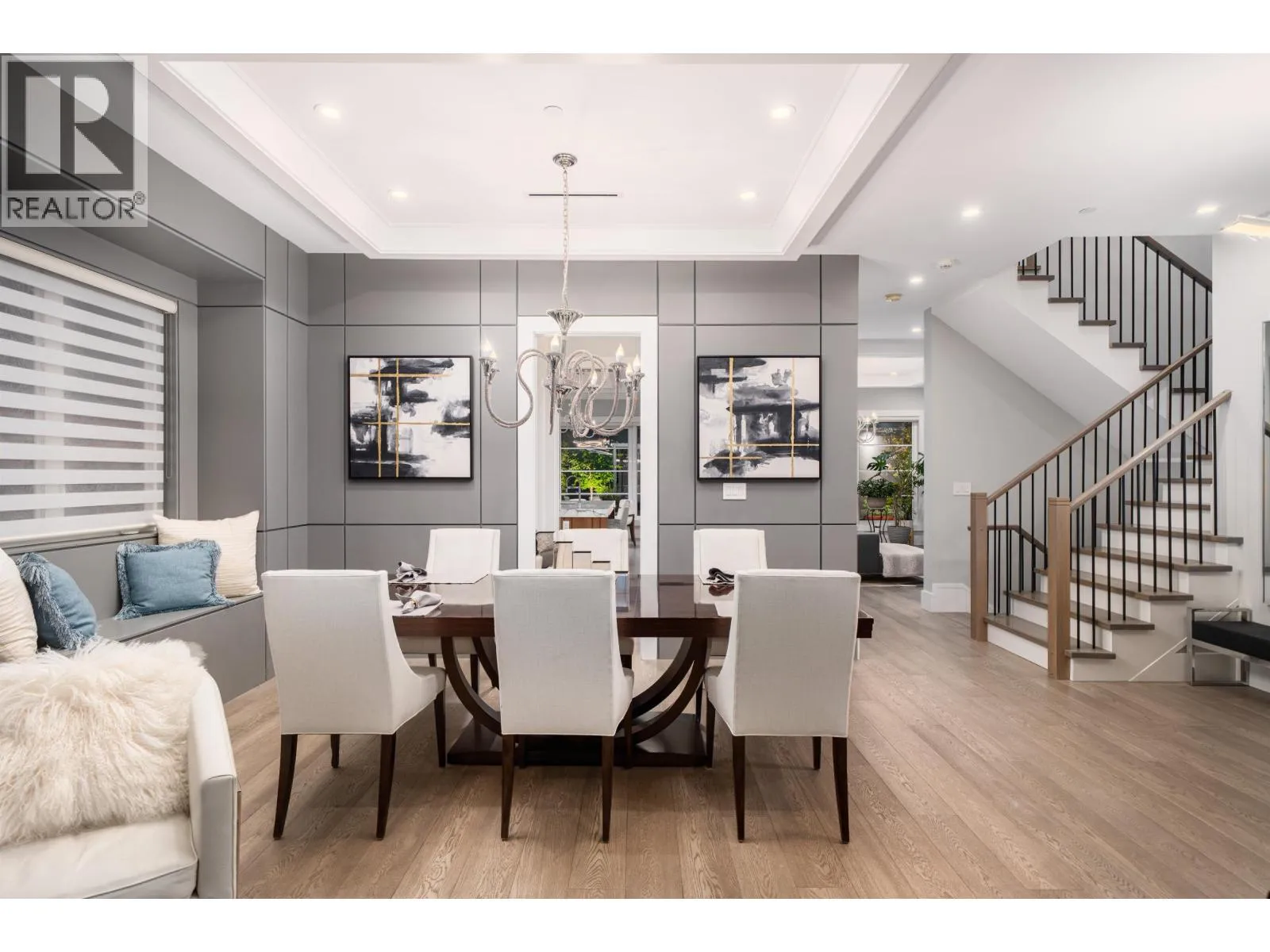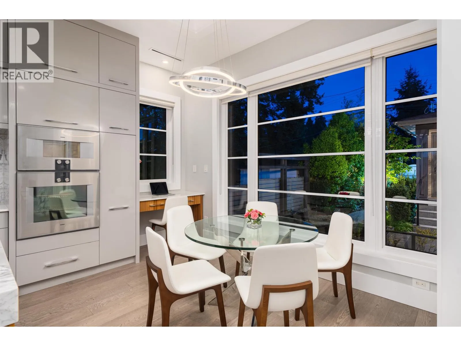 Elegant VIEW executive home with a modern flair, perched on the high side of a tranquil street in prestigious Mackenzie Heights. Over 4,600 sqft home with breathtaking views of the North Shore mountains on a 6,447 sqft lot. 6 bedrooms, 6.5 baths, built with supreme quality materials and superior craftsmanship. Featuring high ceilings, quality hardwood floors throughout, custom marble fireplaces, designer chandeliers, large gourmet kitchen and wok kitchen with custom cabinetry, Gaggenau appliances, expansive open family room, large rec room, home theatre, wine cellar, sauna, radiant heat, A/C, and HRV. A beautifully landscaped, sun-soaked south-facing Zen garden with waterfall and gas fire pit. Close to Crofton, St. George´s, York House and UBC. (id:27476)